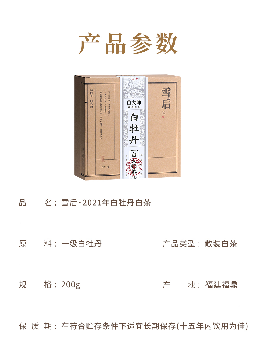 白大师白茶茶叶正宗福鼎老白茶2021年一级白牡丹白茶散茶200g