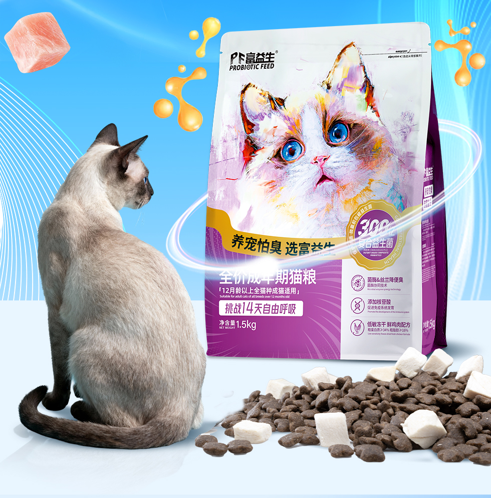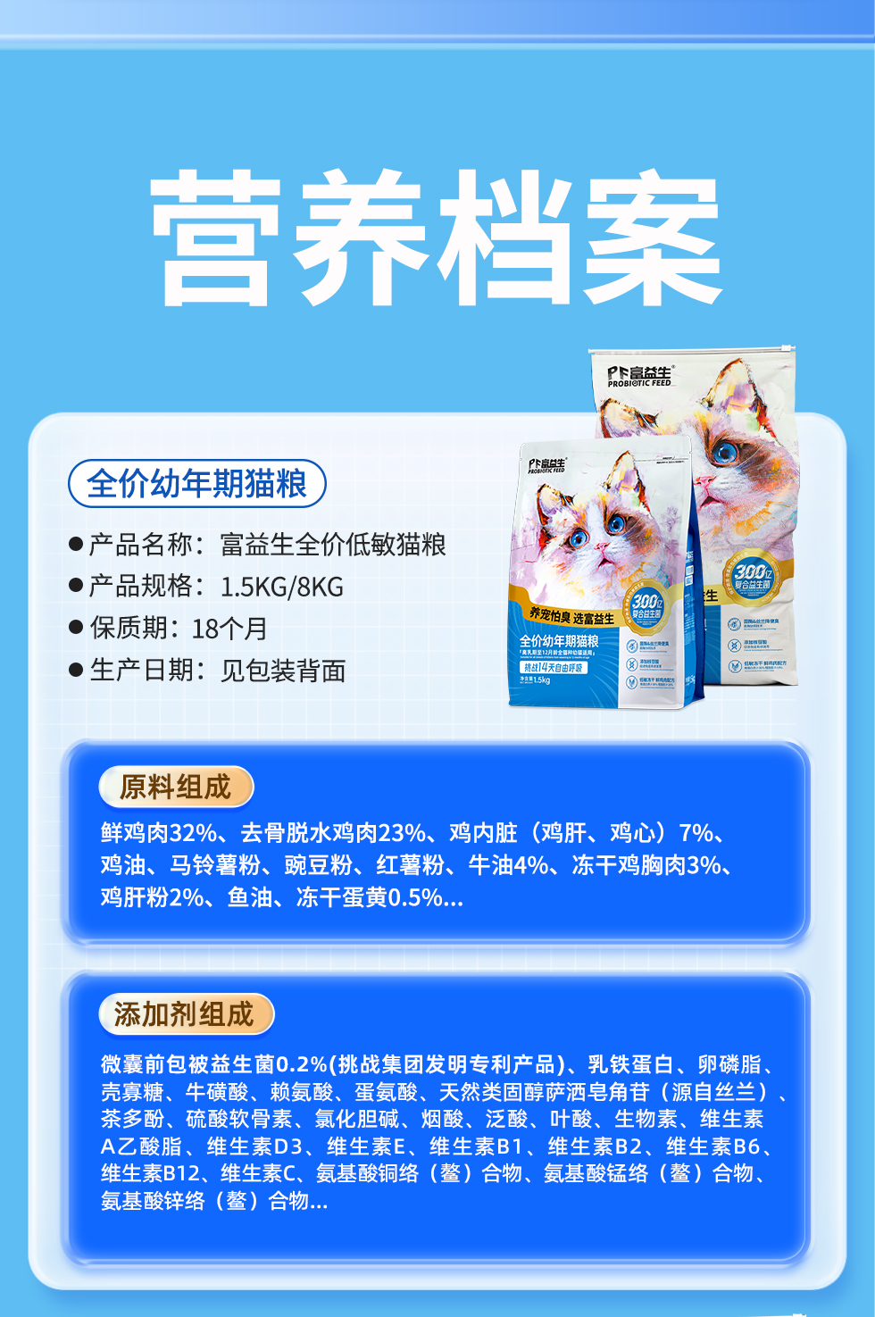 严选 | 富益生益生菌猫粮低敏全价幼猫成猫鲜肉鸡肉冻干粮营养无谷猫主粮