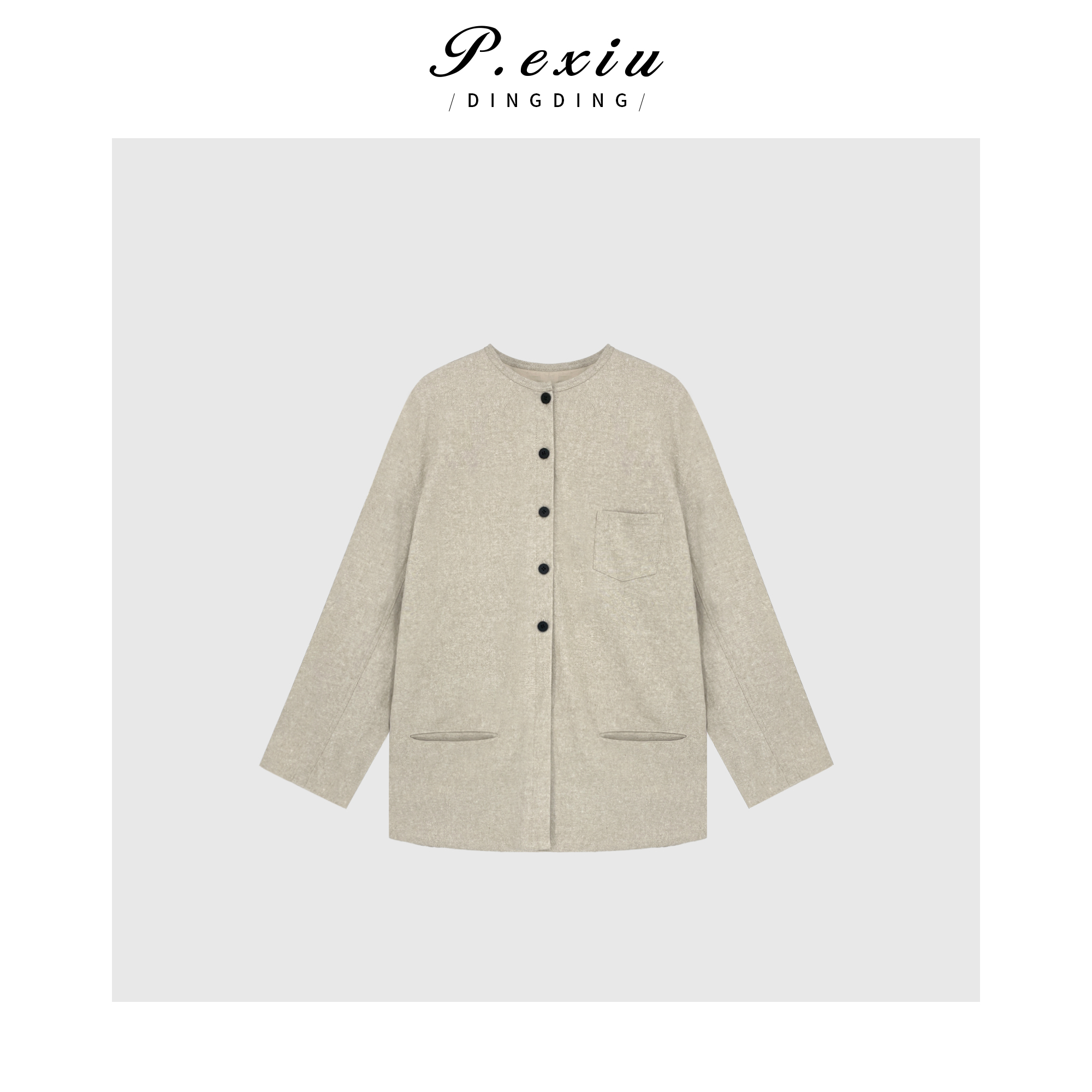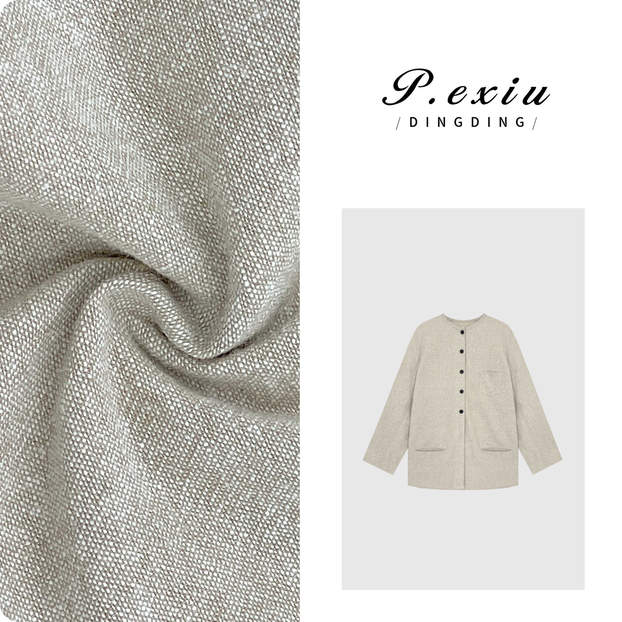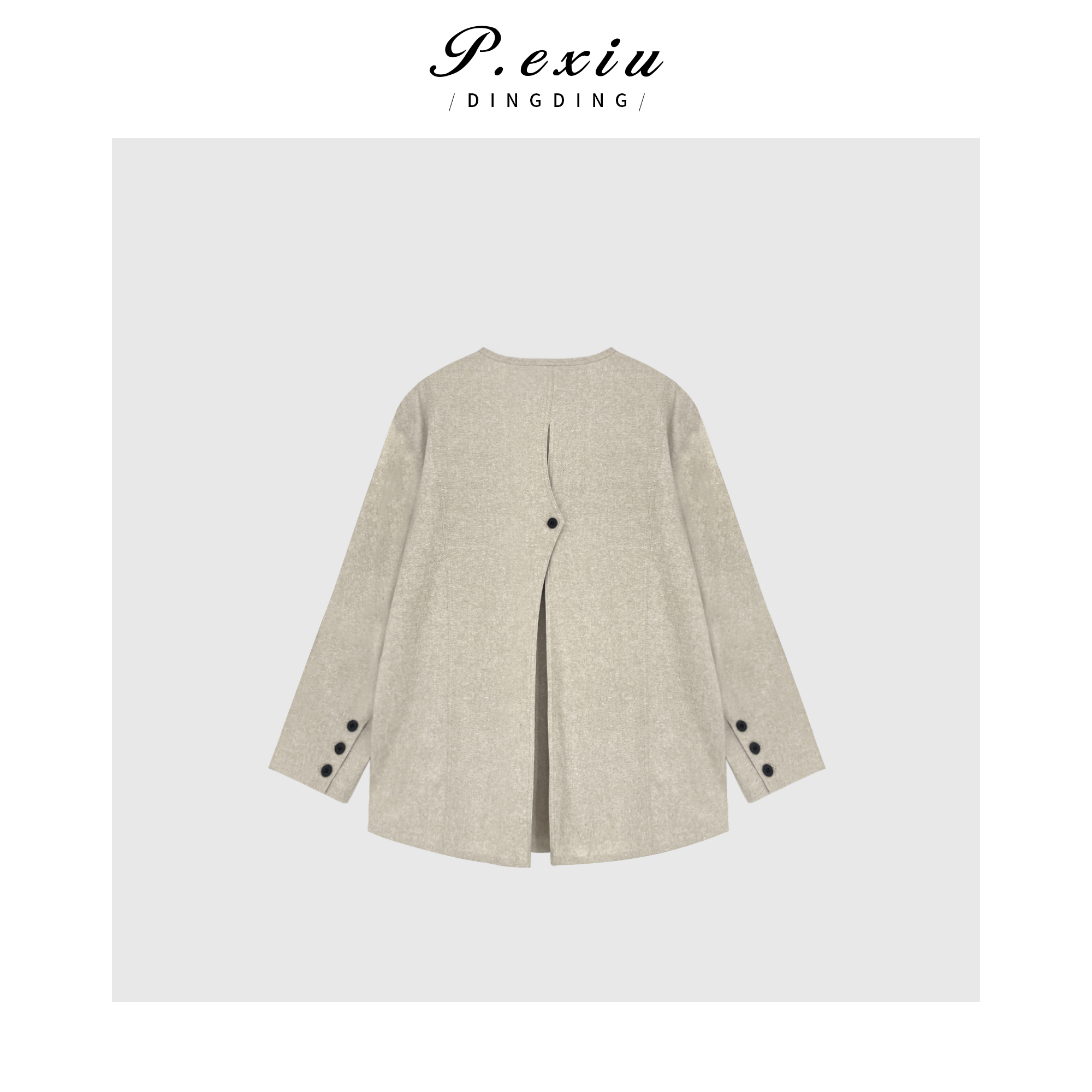 04-4潘依绣丁丁宠粉亚麻极简设计感后开叉圆领外套 W-61781