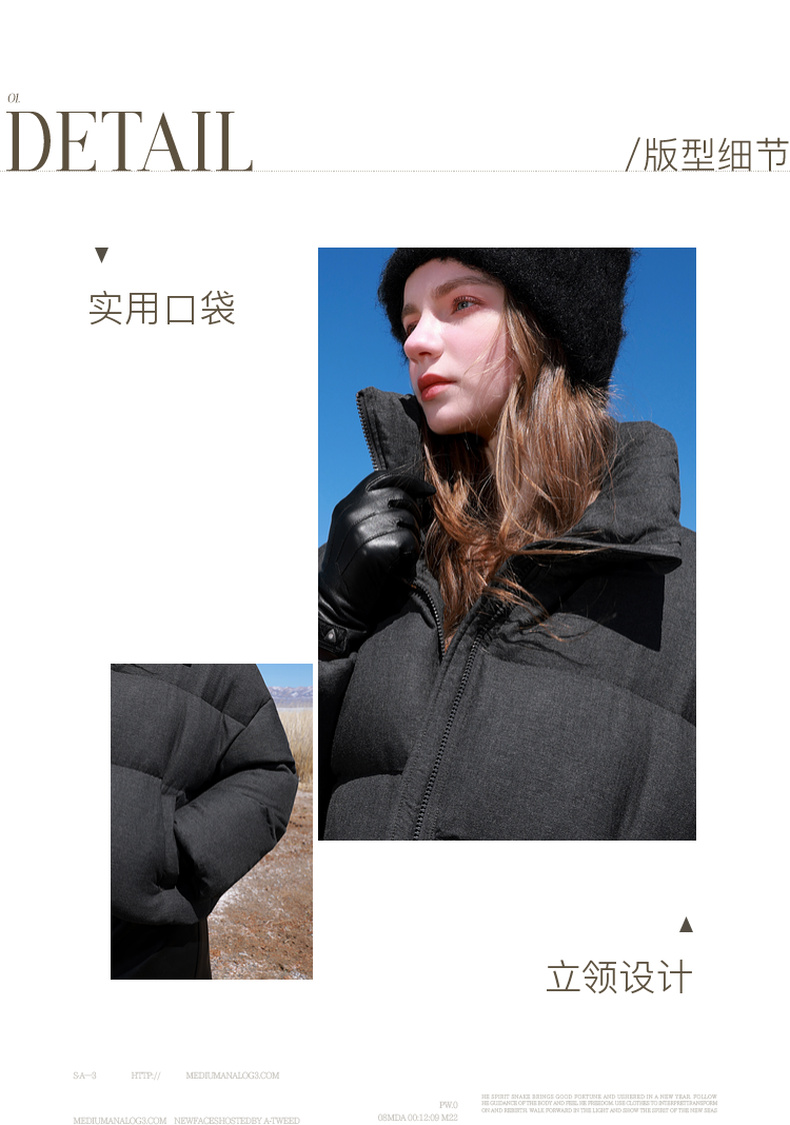 【90白鹅绒】三彩2025冬季新款短款羽绒服鹅绒服面包服M
