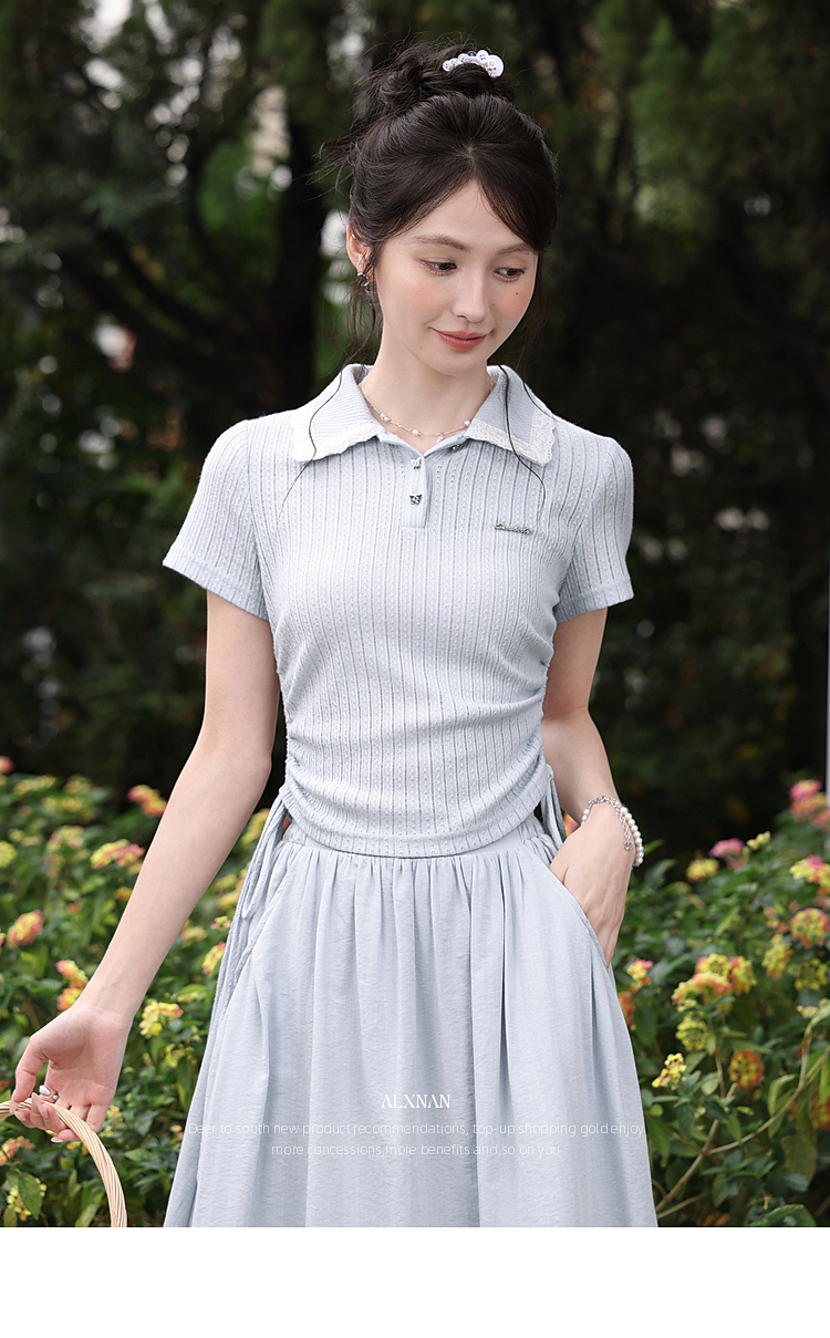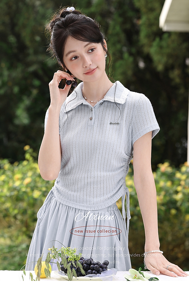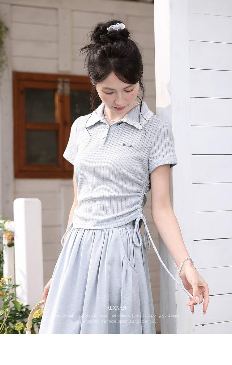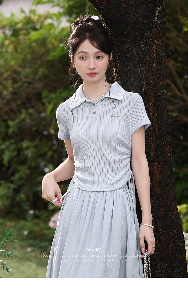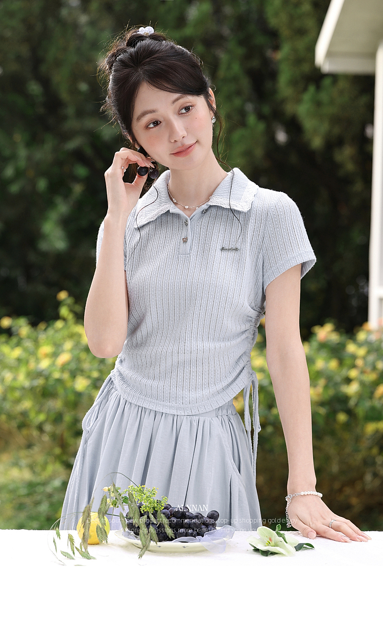 鹿向南「清甜如葡」雾霾蓝修身T恤女夏新款韩系chic短袖polo上衣