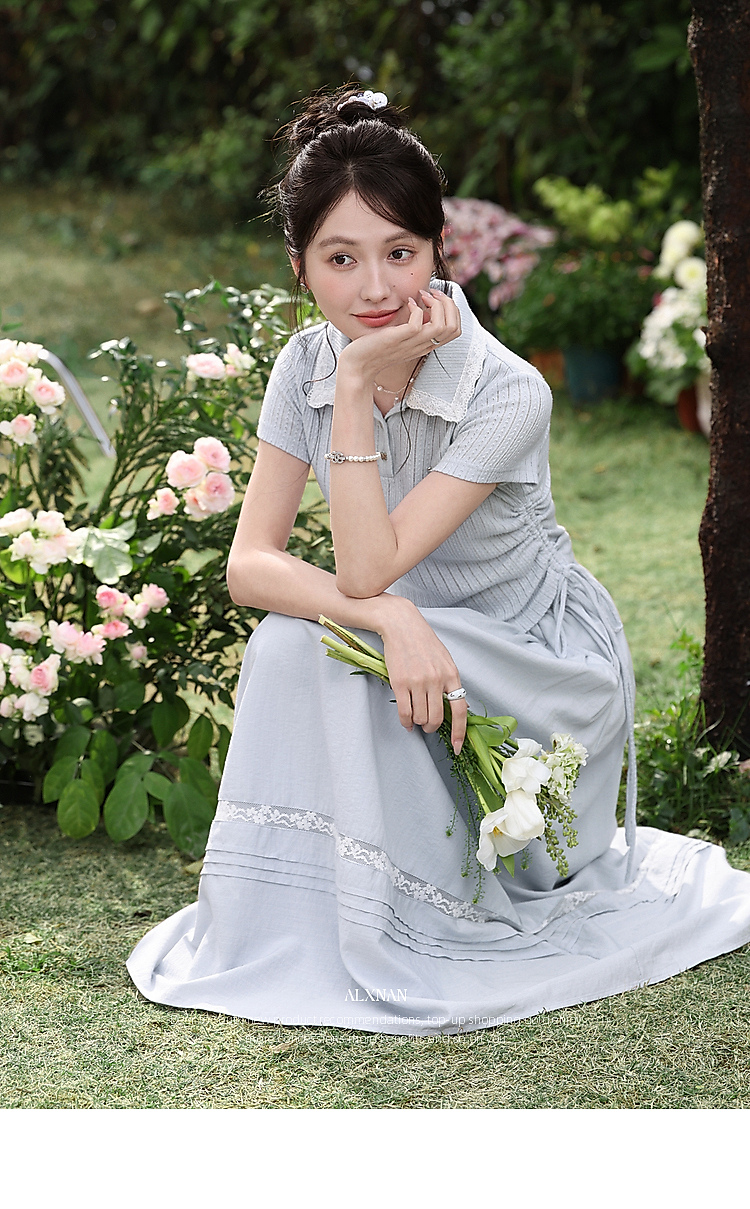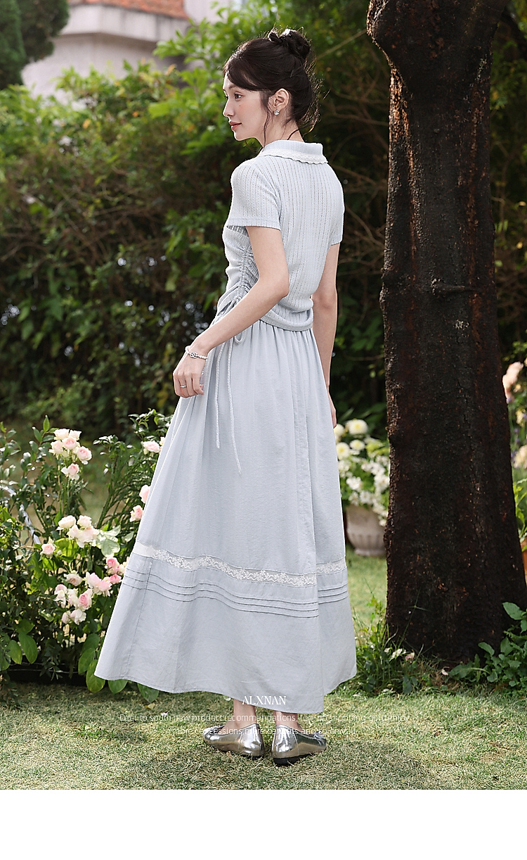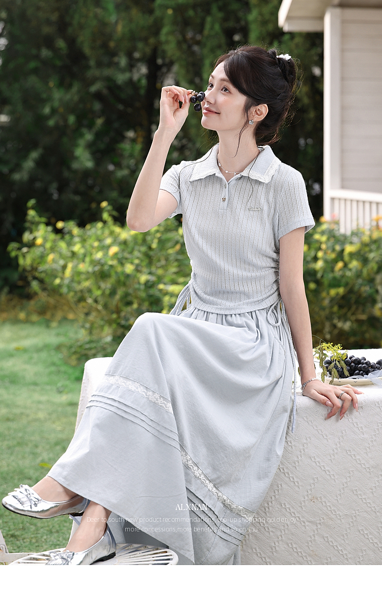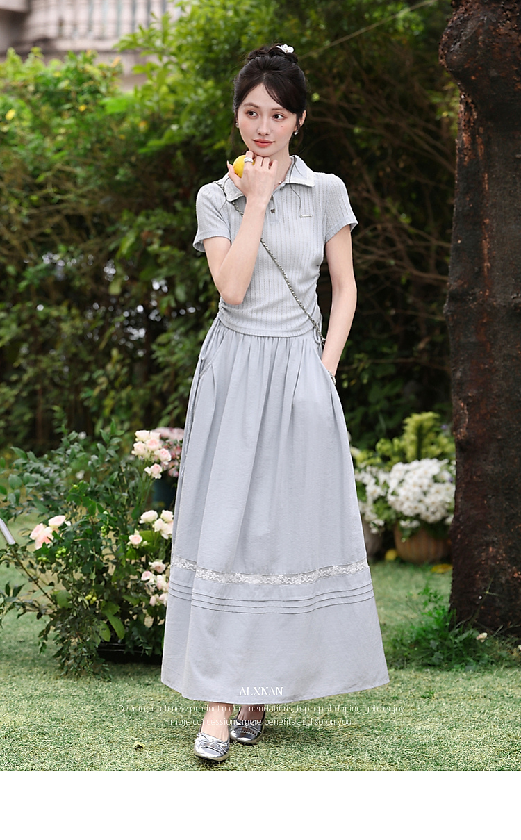 鹿向南「清甜如葡」雾霾蓝修身T恤女夏新款韩系chic短袖polo上衣