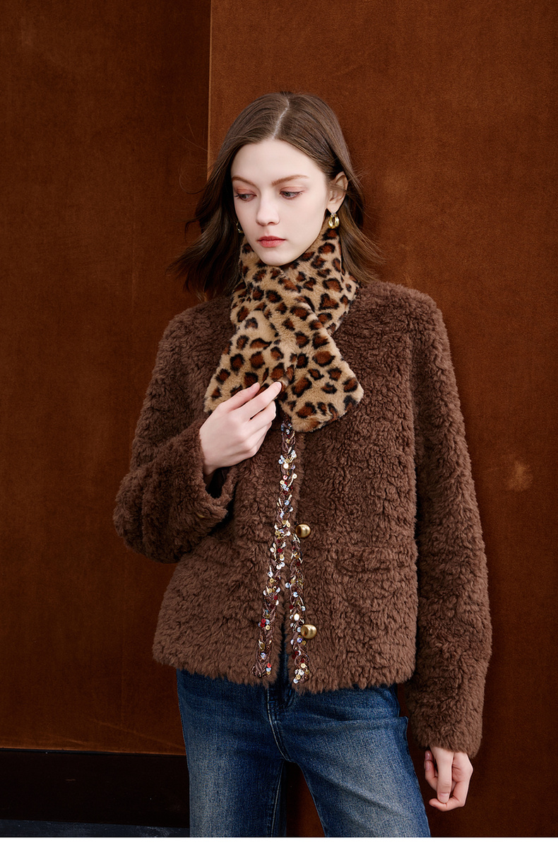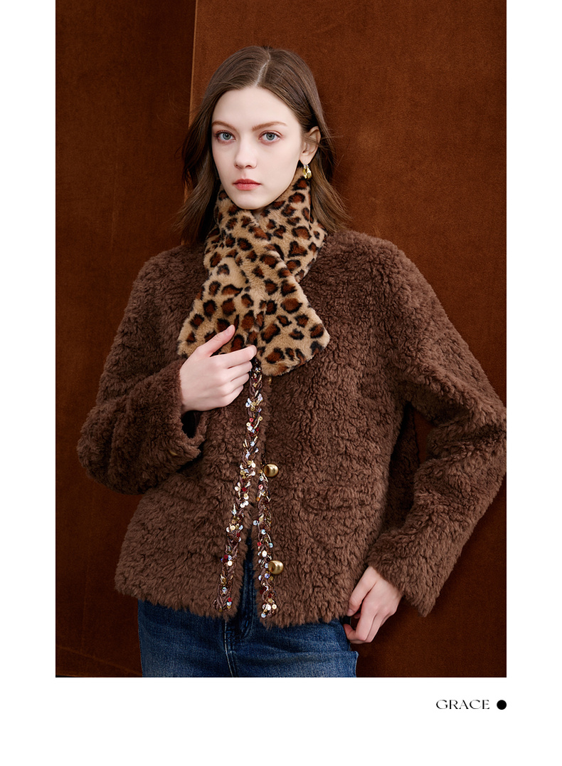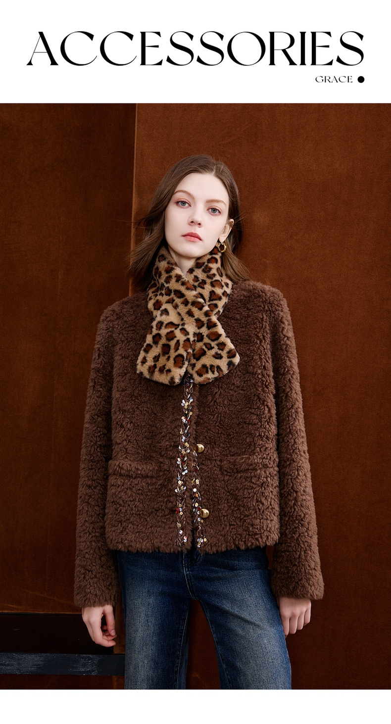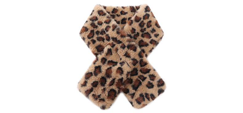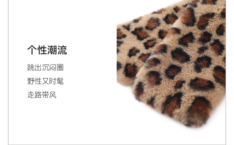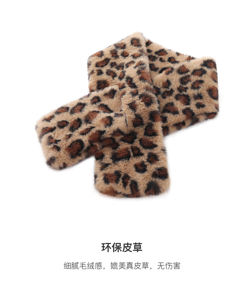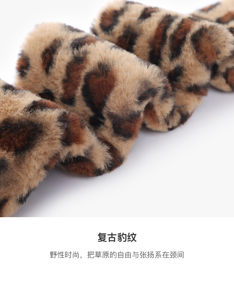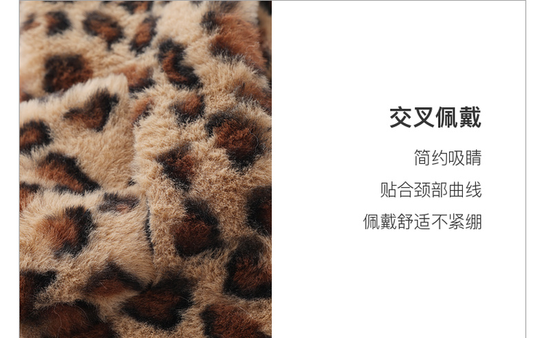 三彩2026新款复古豹纹毛绒围巾小围脖毛领保暖女交叉野性个性小众