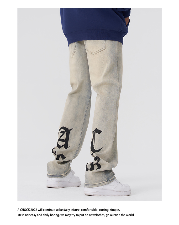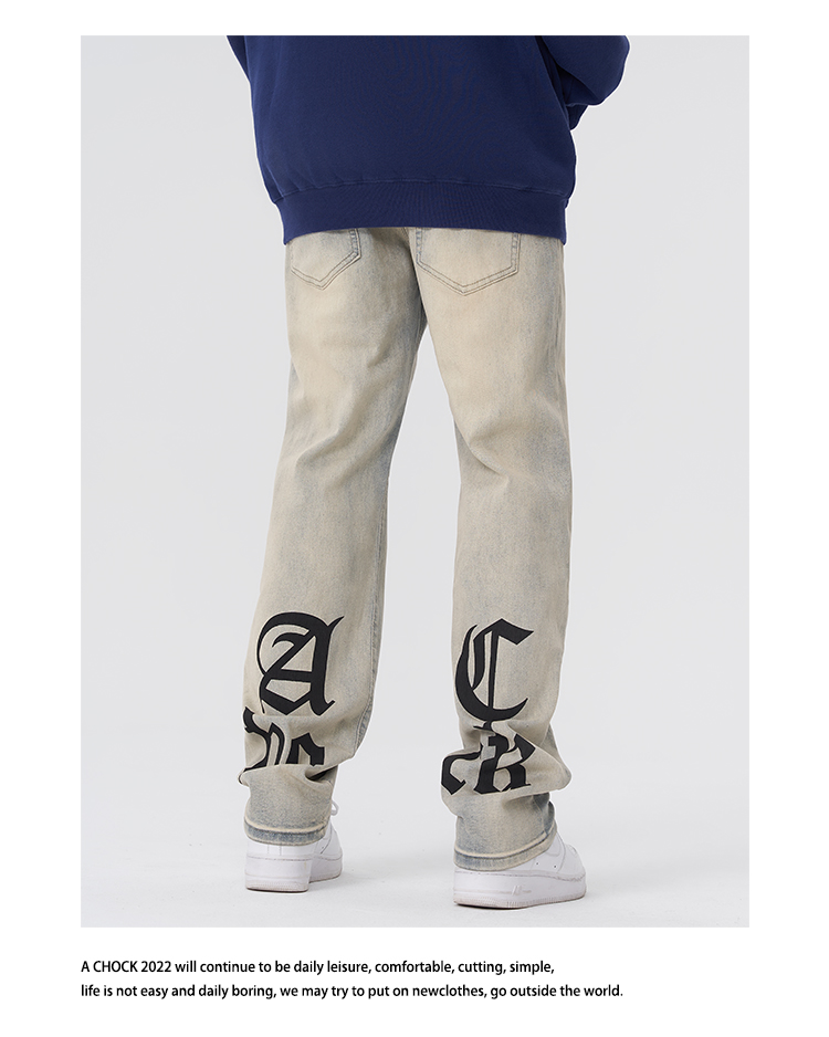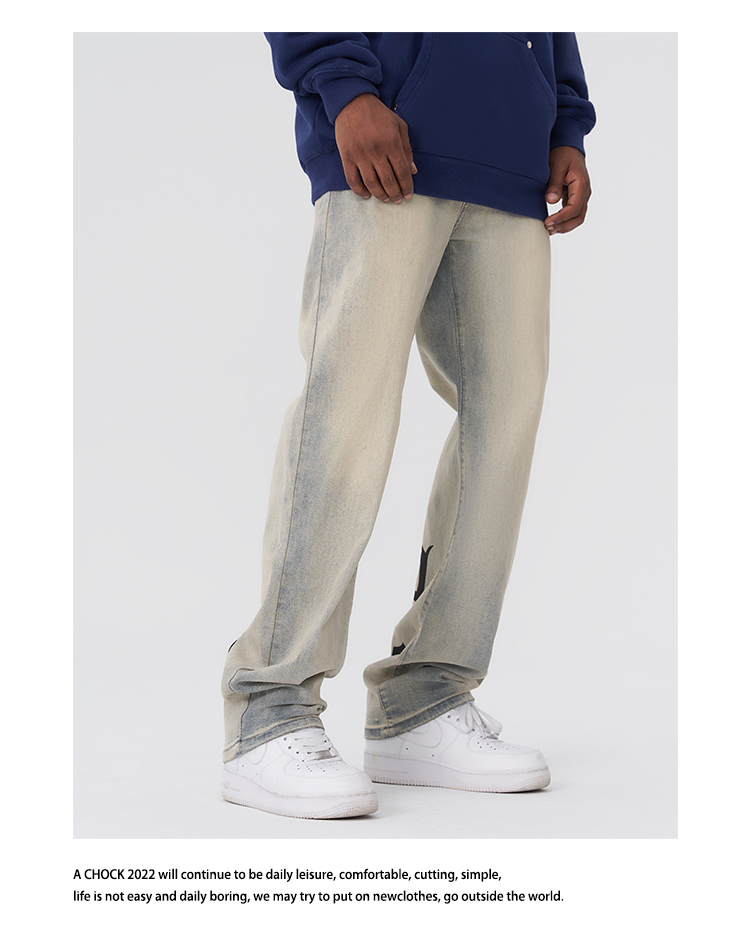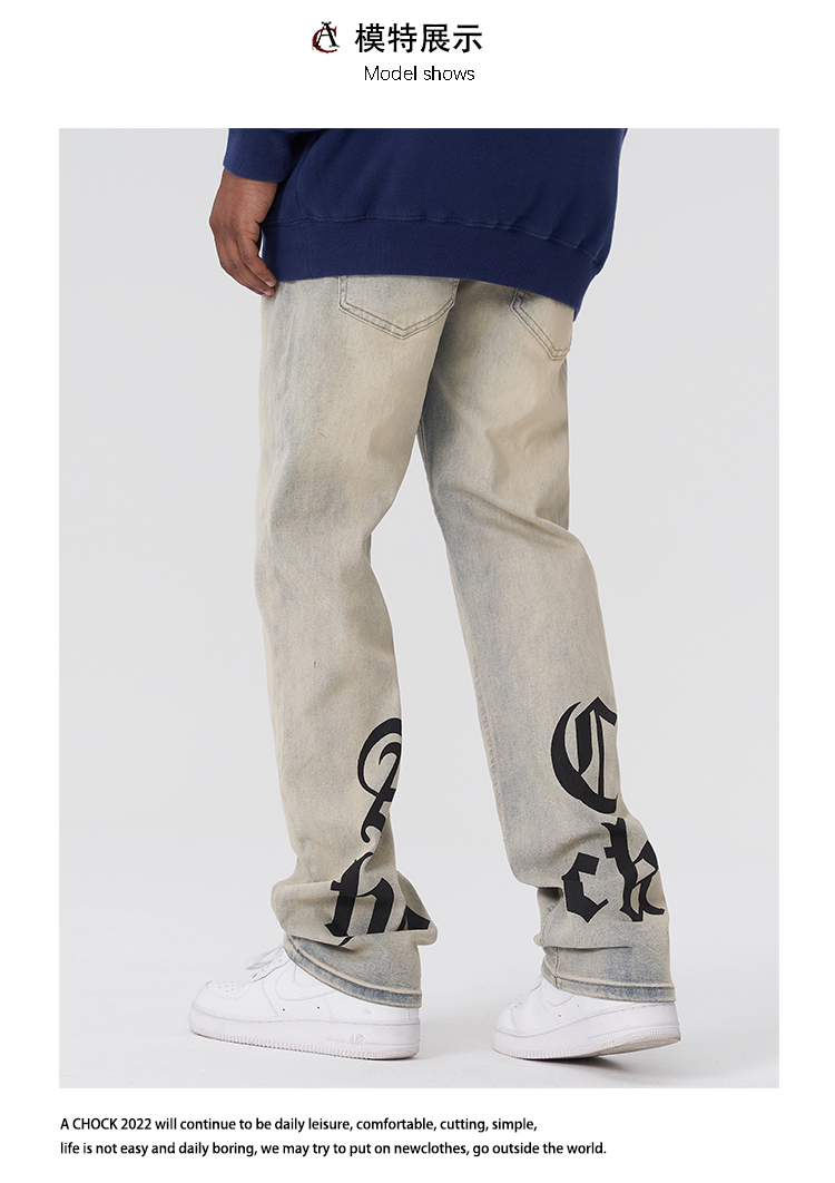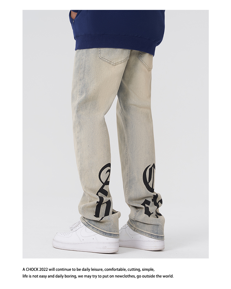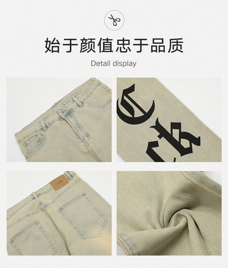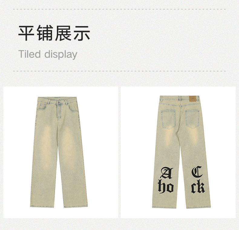 【2024SS新款】美式街头哥特logo印花黄泥牛仔裤直筒泛黄牛仔裤