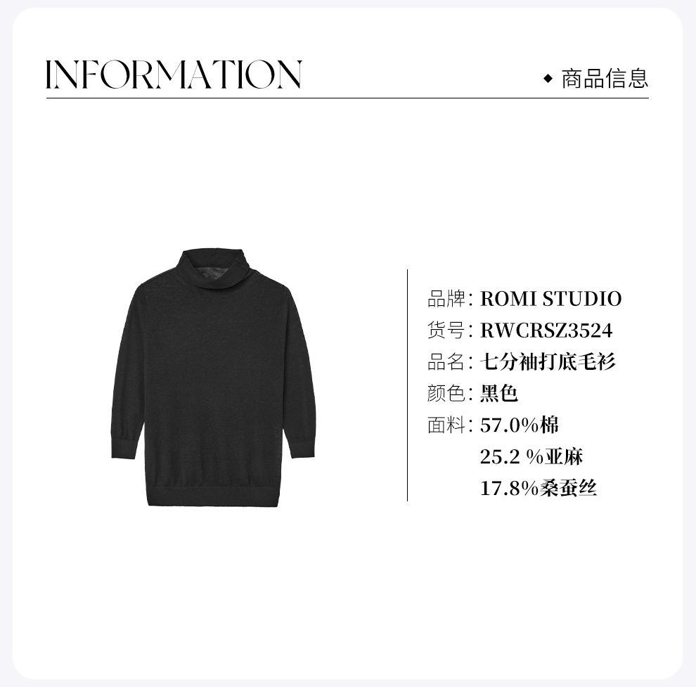 ROMI STUDIO"法式优雅"桑蚕丝亚麻混纺高领中袖毛衫RWCRSZ3524