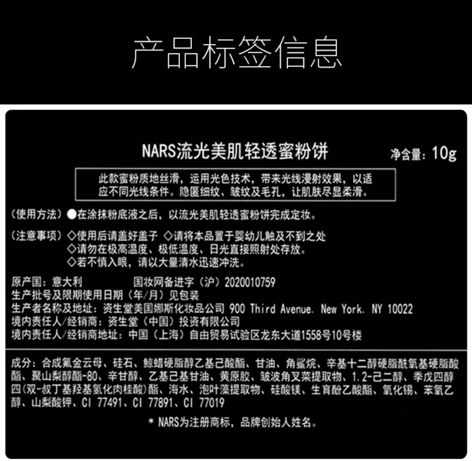 纳斯NARS 流光美肌轻透蜜粉饼 10g(大白饼)