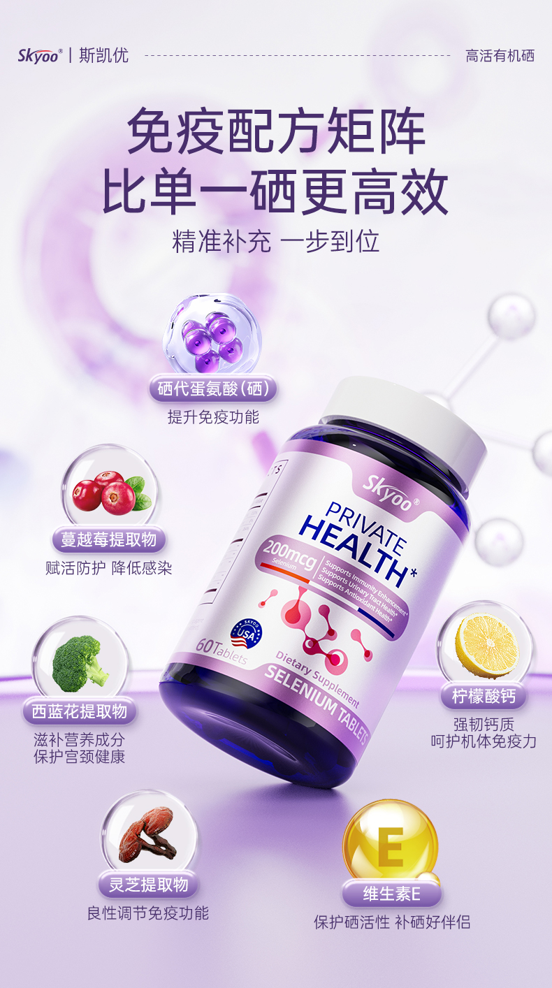 skyoo美国原装进口麦芽硒片天然补硒提高免疫力【1357】