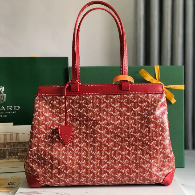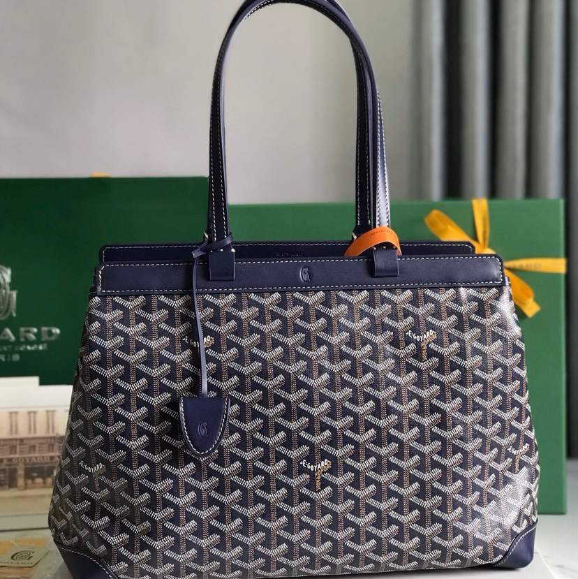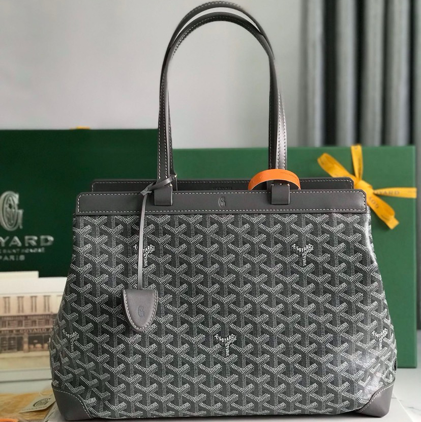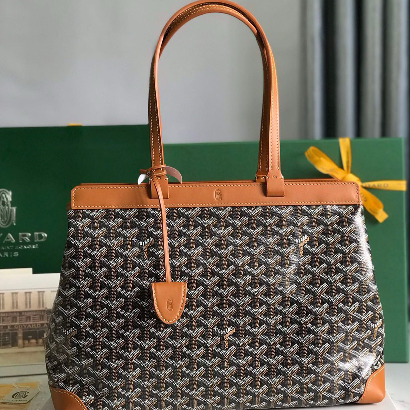 GOYARD Bellechasse Biaude Y字老花满印遮蔽设计 帆布拼皮 托特包Tote包购物袋单肩手提包 小号 女款(CB)