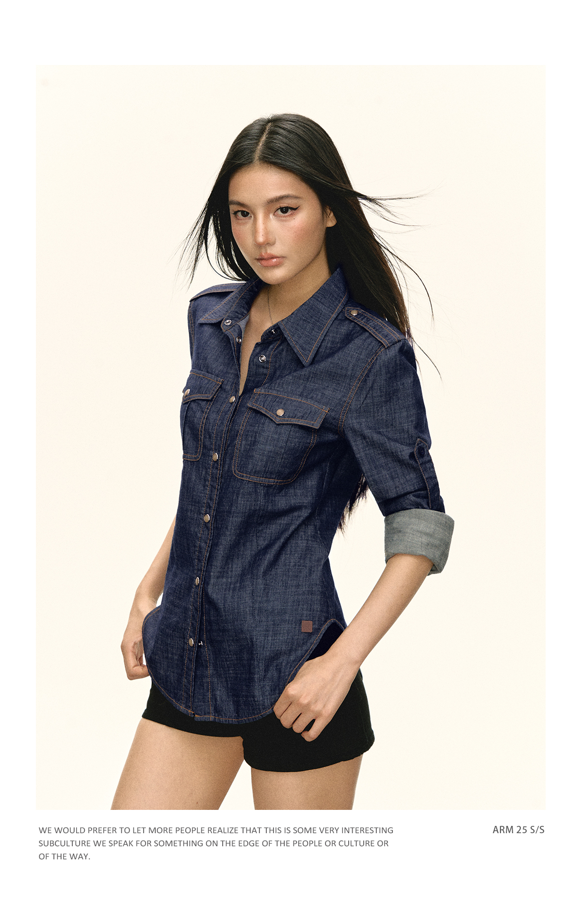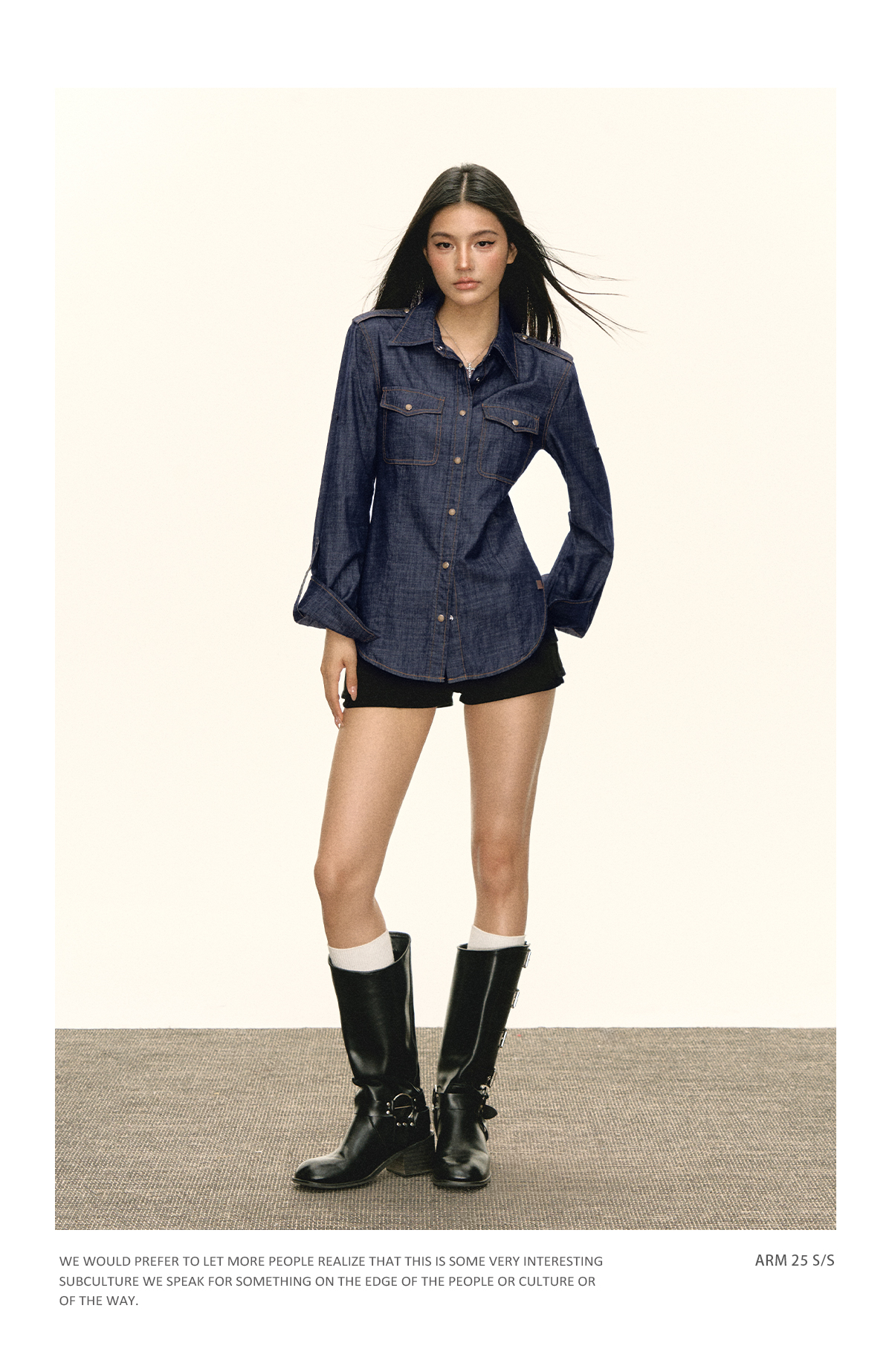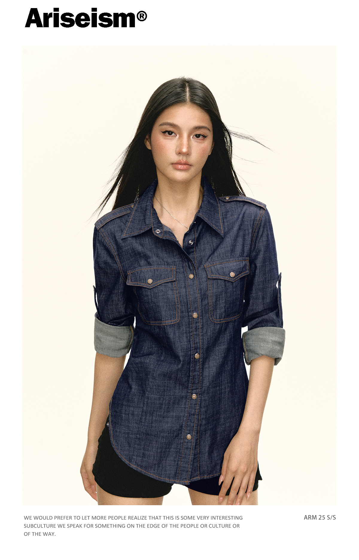 Ariseism 美式复古长袖牛仔衬衫女秋季新款上衣