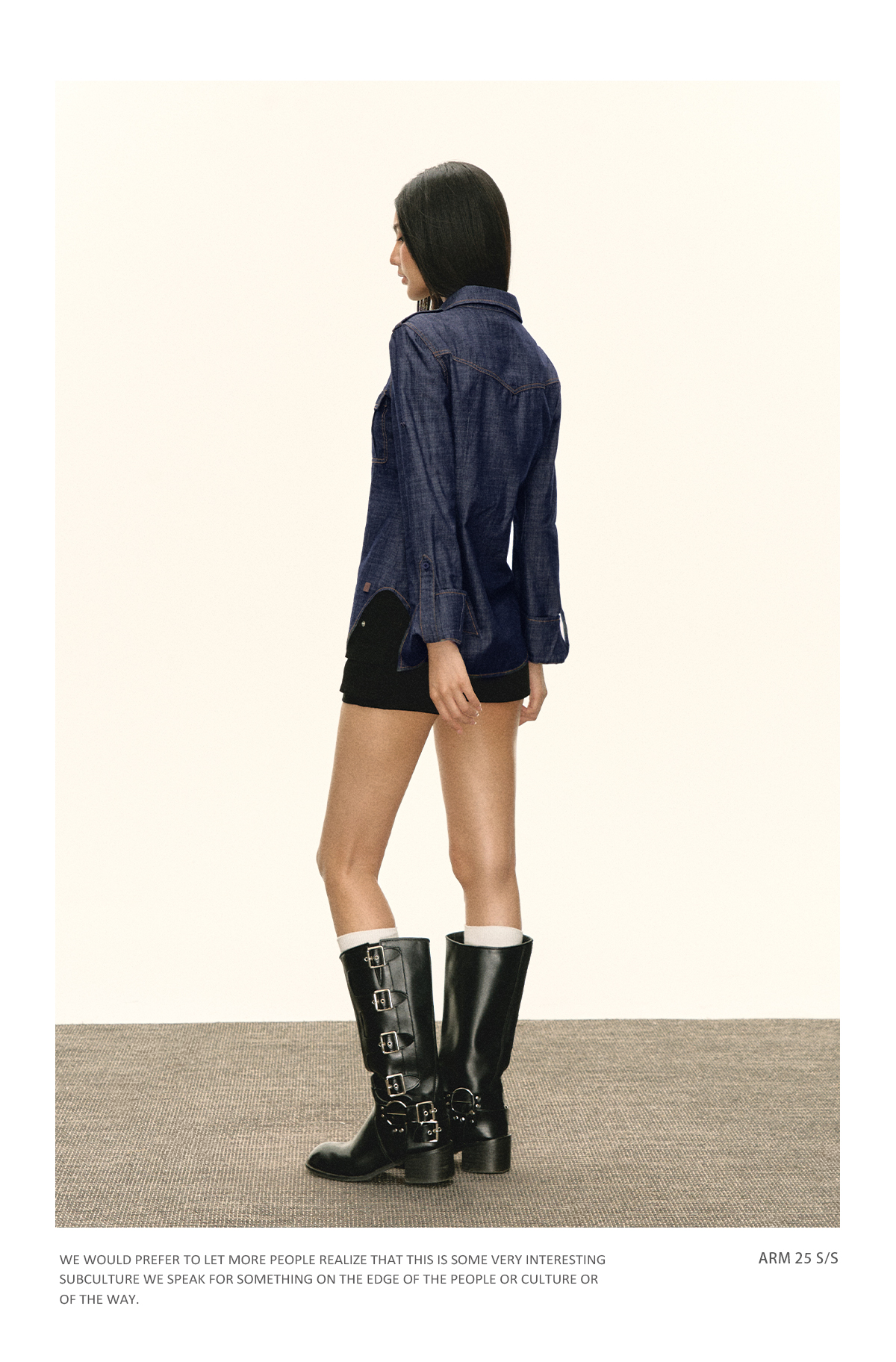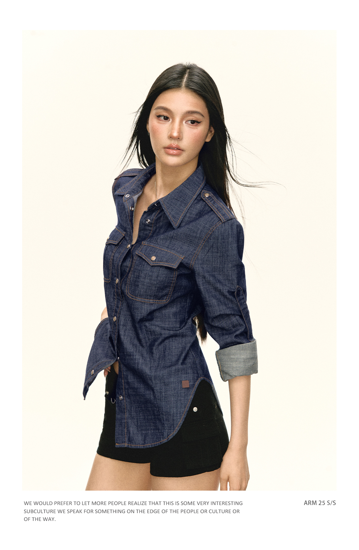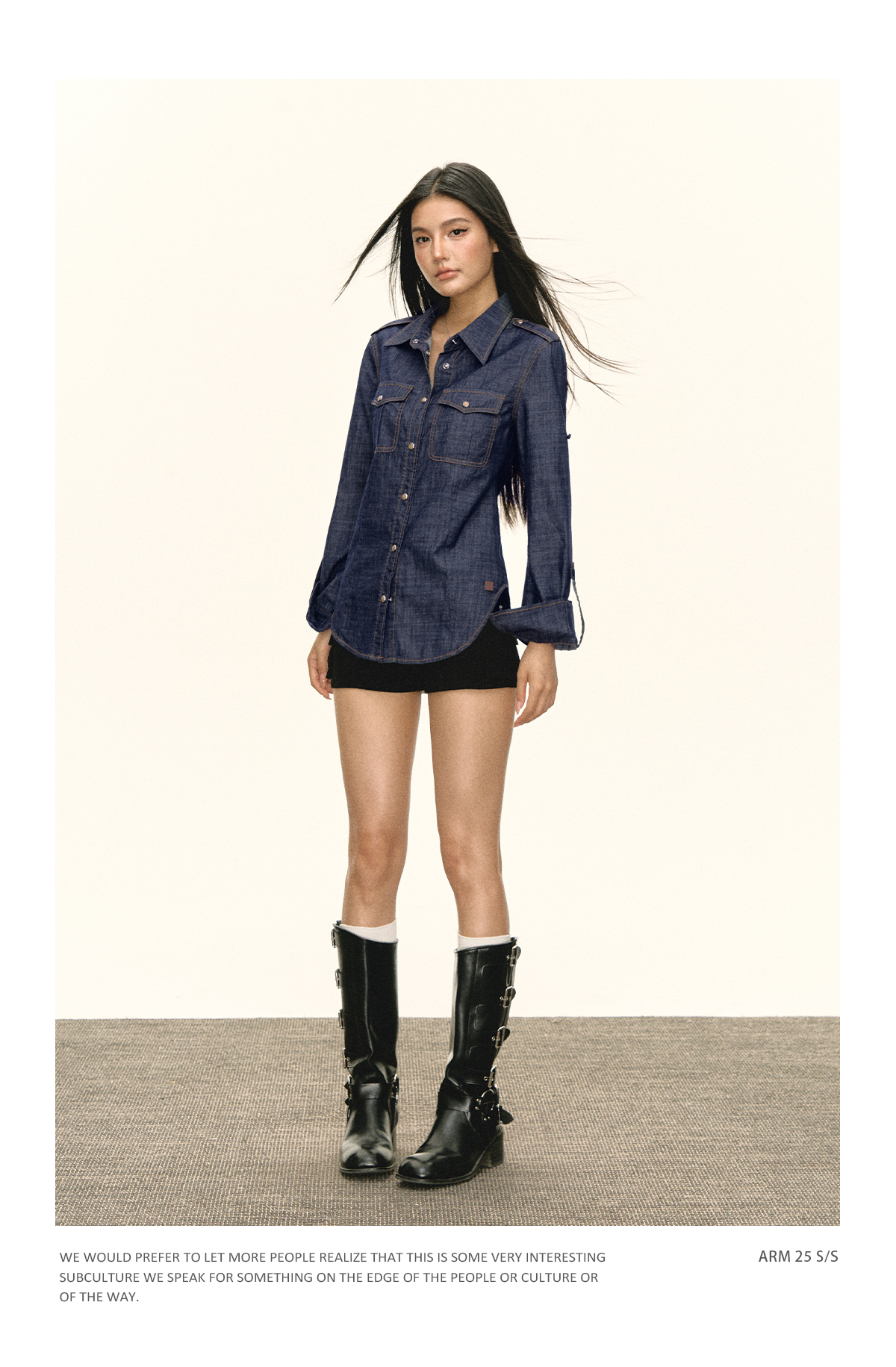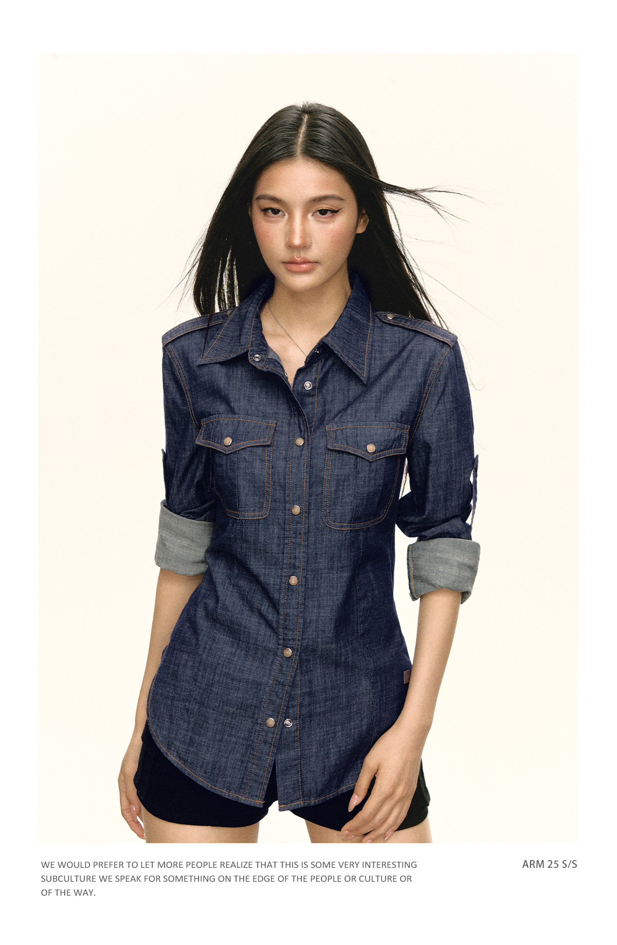 Ariseism 美式复古长袖牛仔衬衫女秋季新款上衣