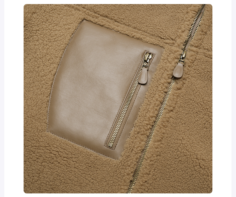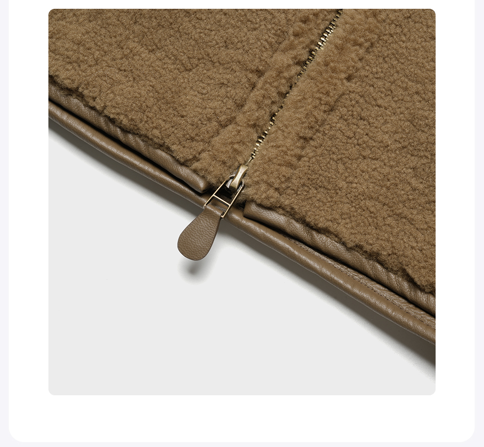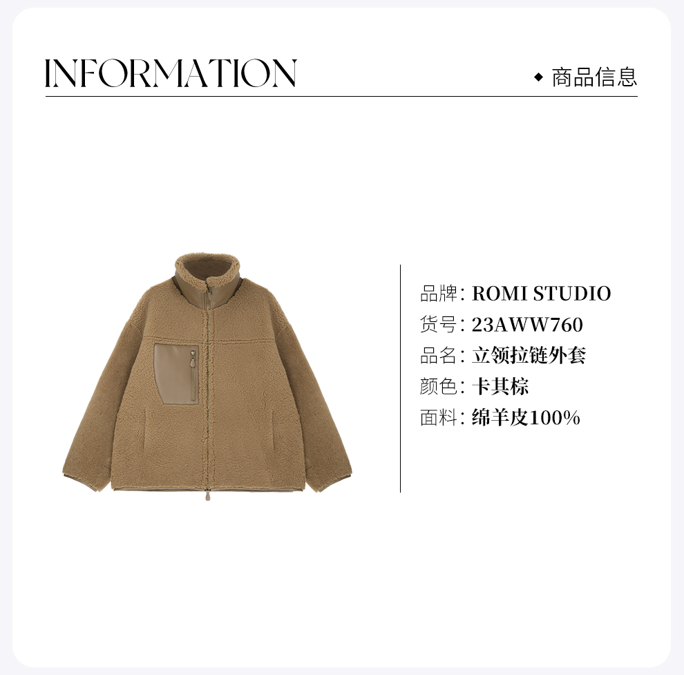 ROMI STUDIO“隆冬刚需”皮毛一体立领拉链其棕夹克外套23AWW760