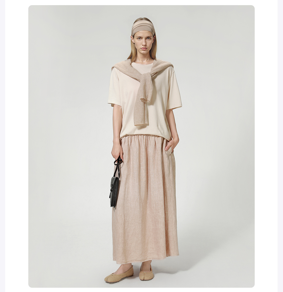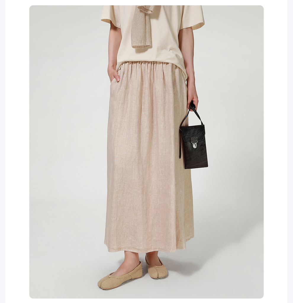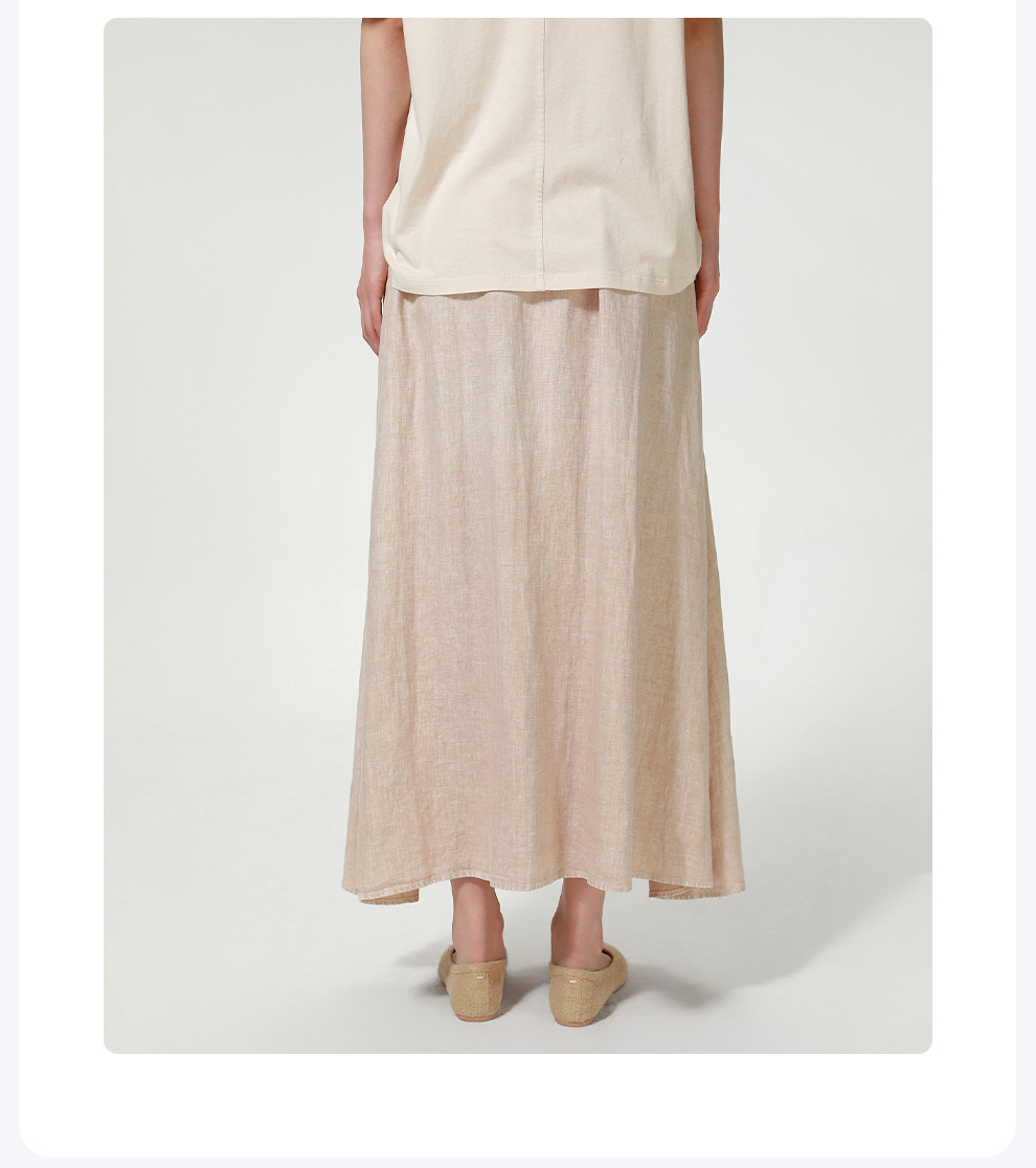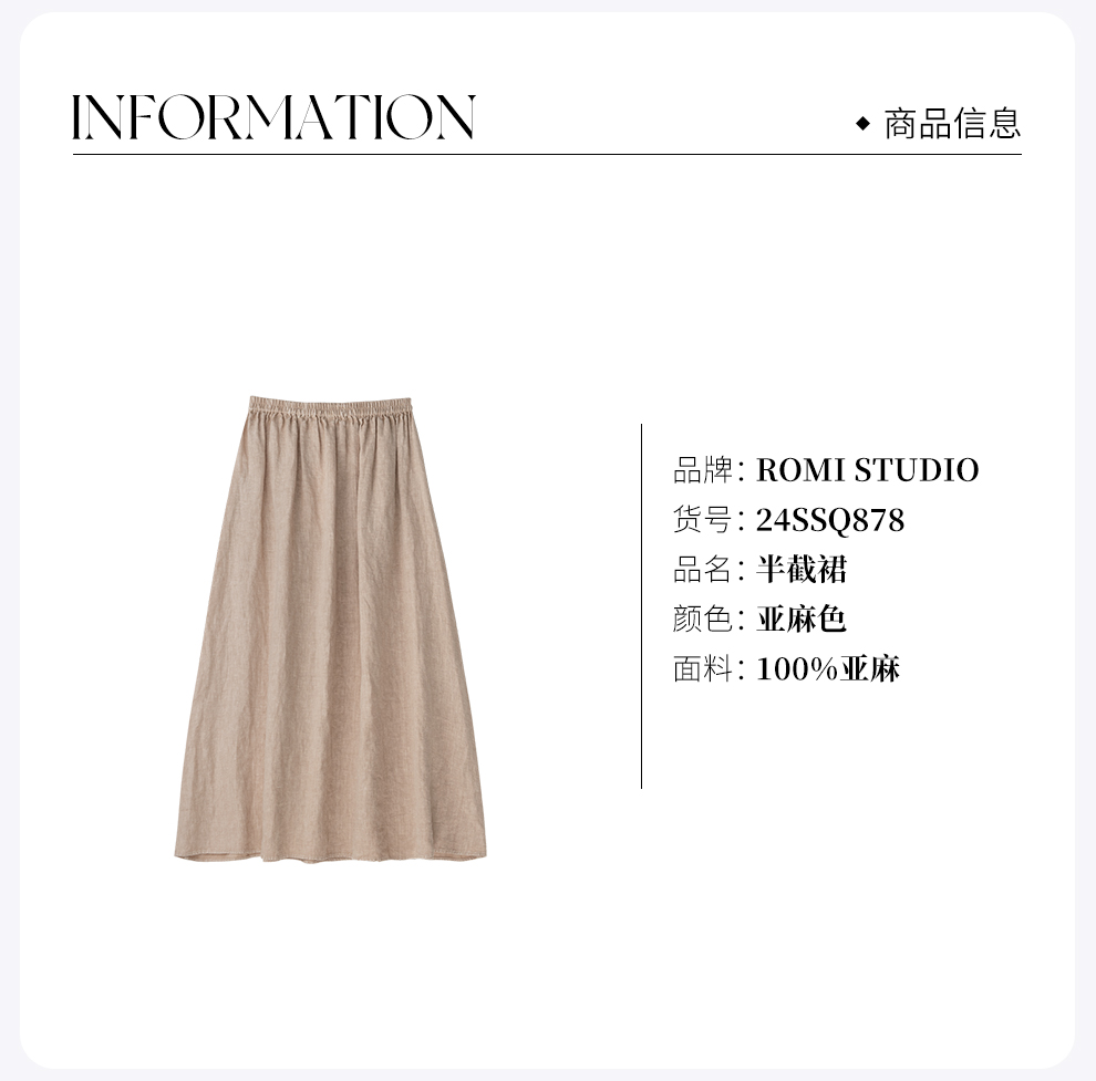 ROMI STUDIO“悠然而归”100%亚麻炒色雪花肌理松紧A摆半裙24SSQ878