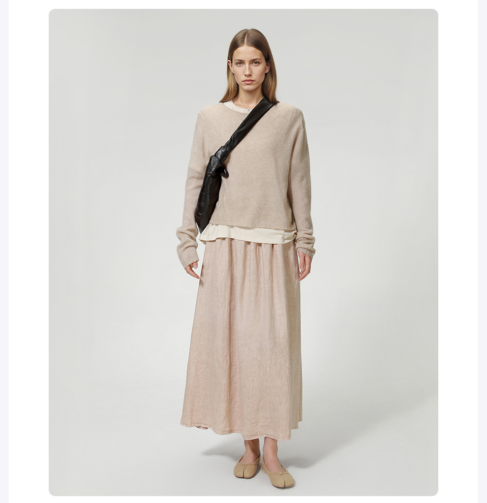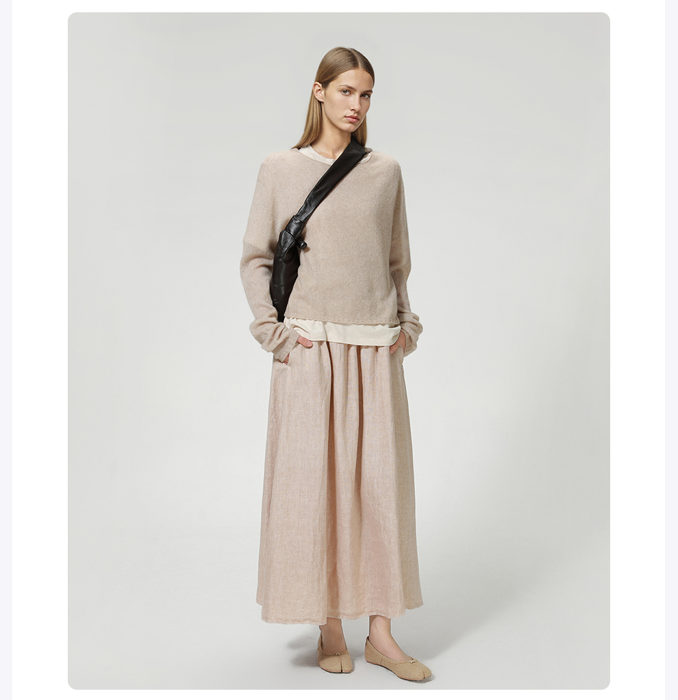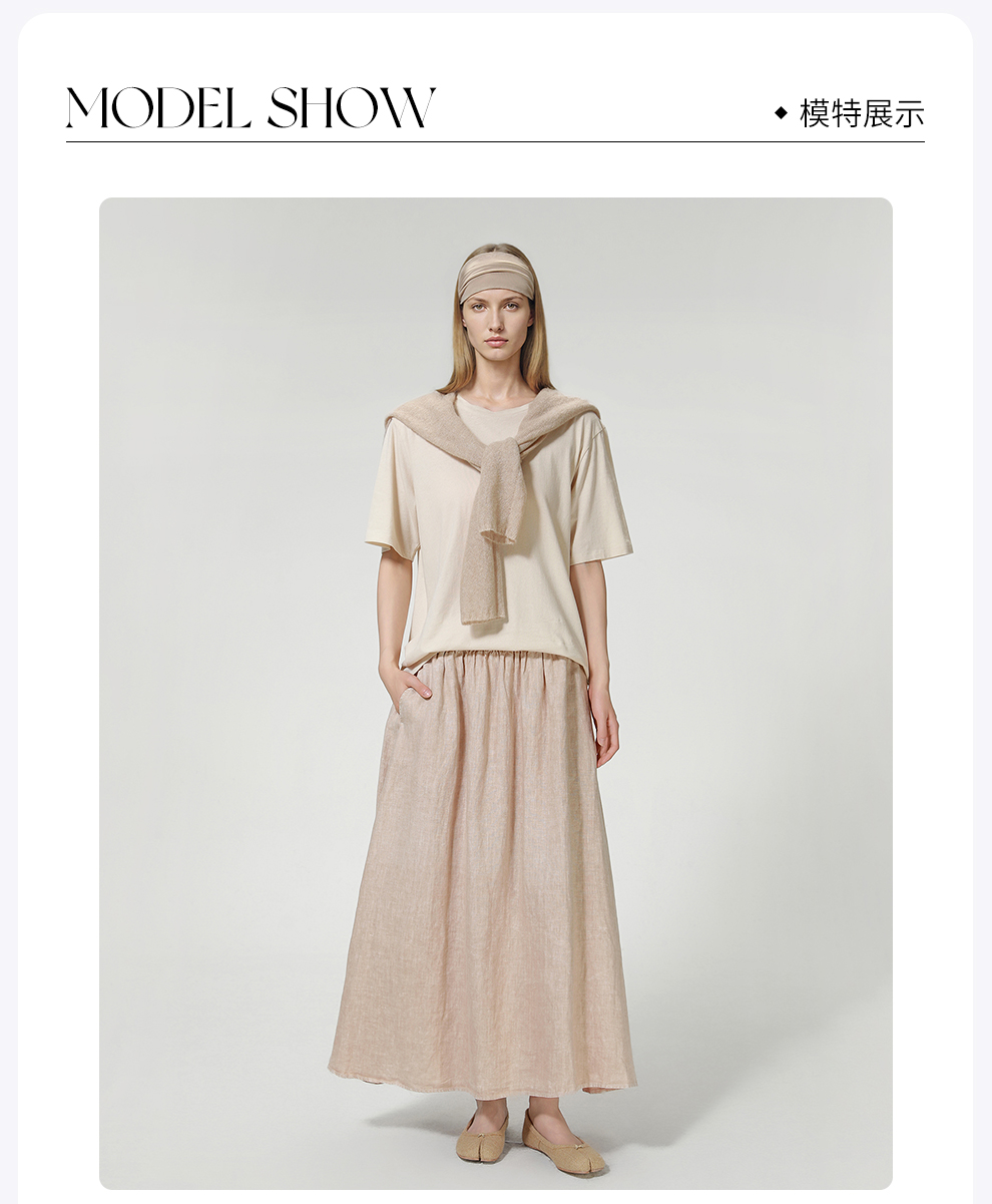 ROMI STUDIO“悠然而归”100%亚麻炒色雪花肌理松紧A摆半裙24SSQ878