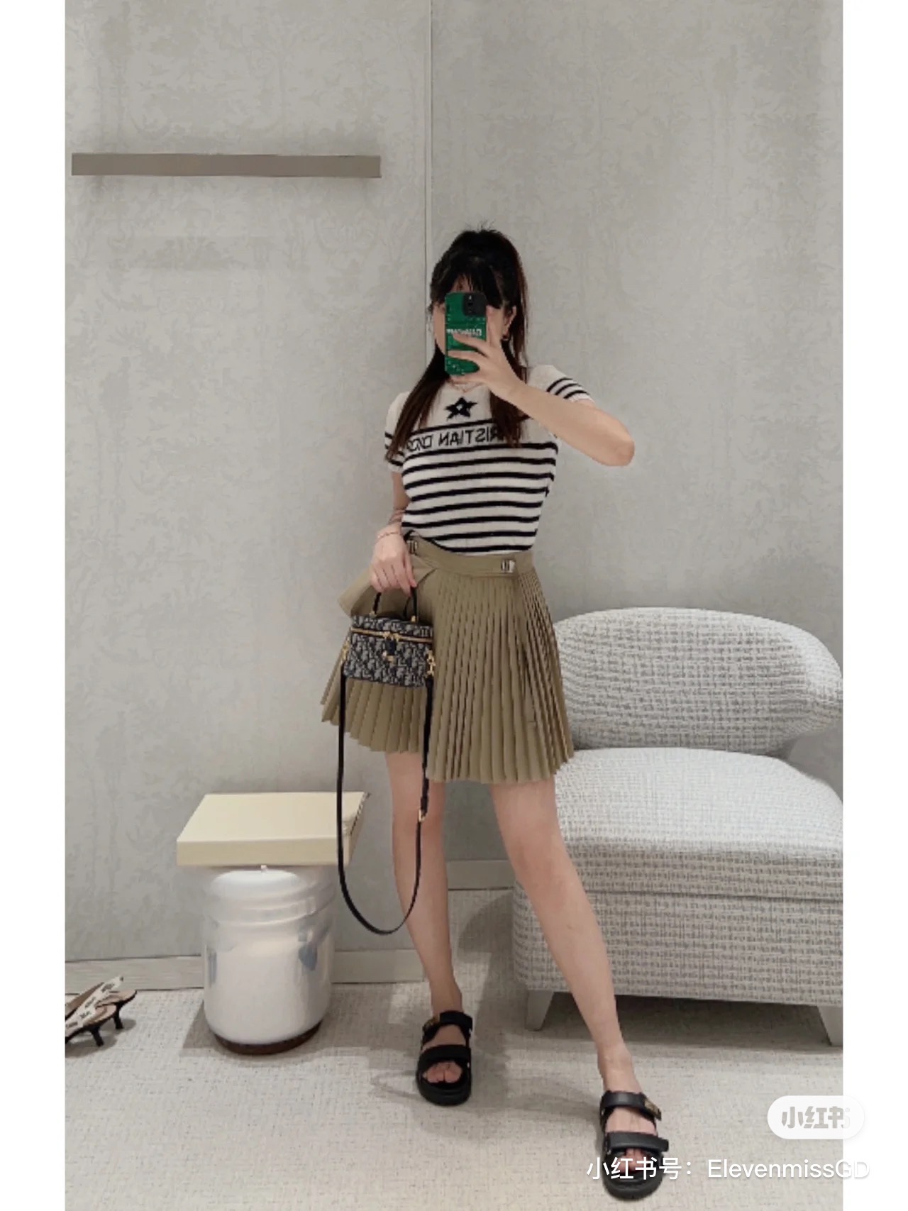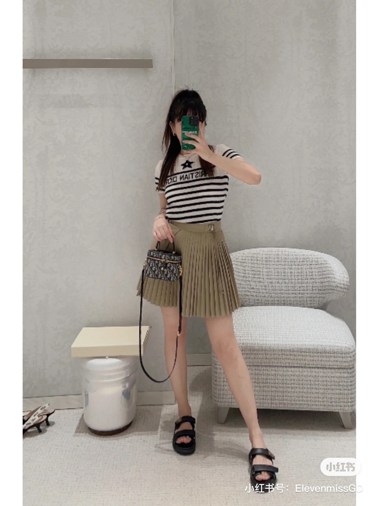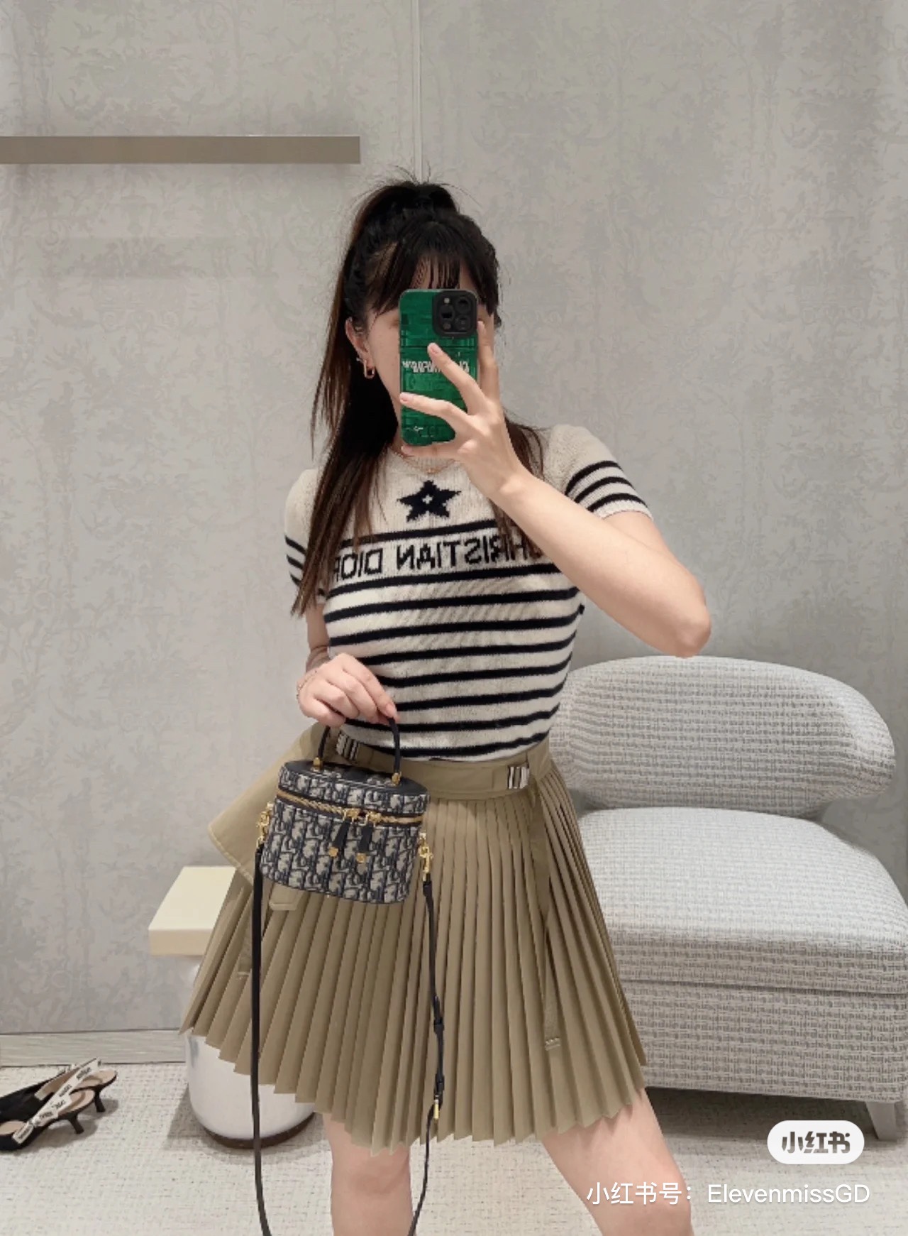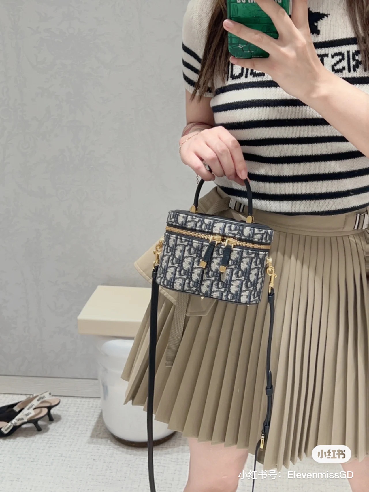 搭配可拆卸、可调节的同色调牛皮肩带,令造型更加精致。精巧的设计充分体现 di0r 的精湛工艺,是夏天理想的旅行良伴。可与其他 diortravel 单品搭配,打造配套造型。