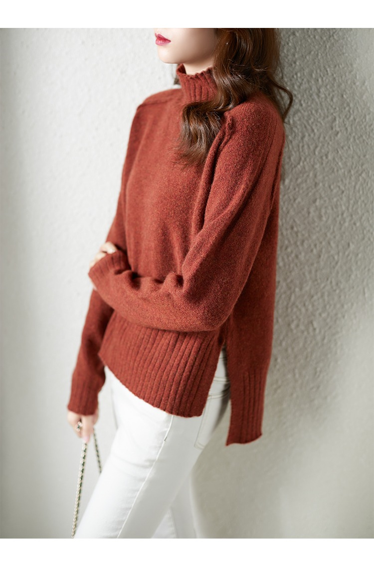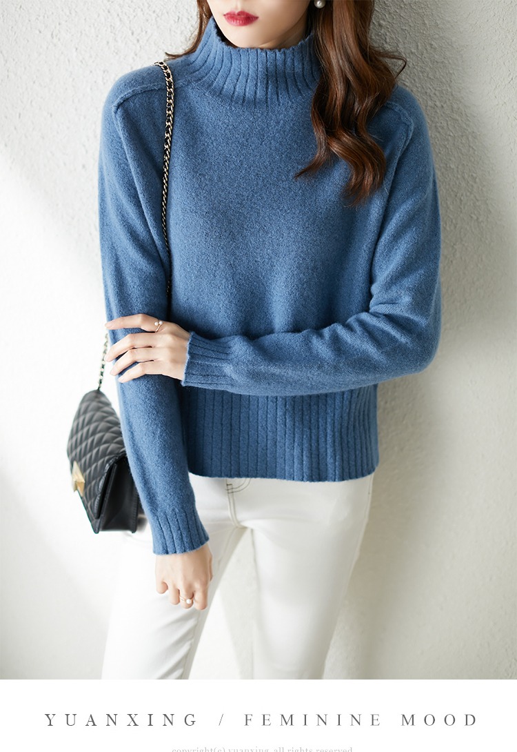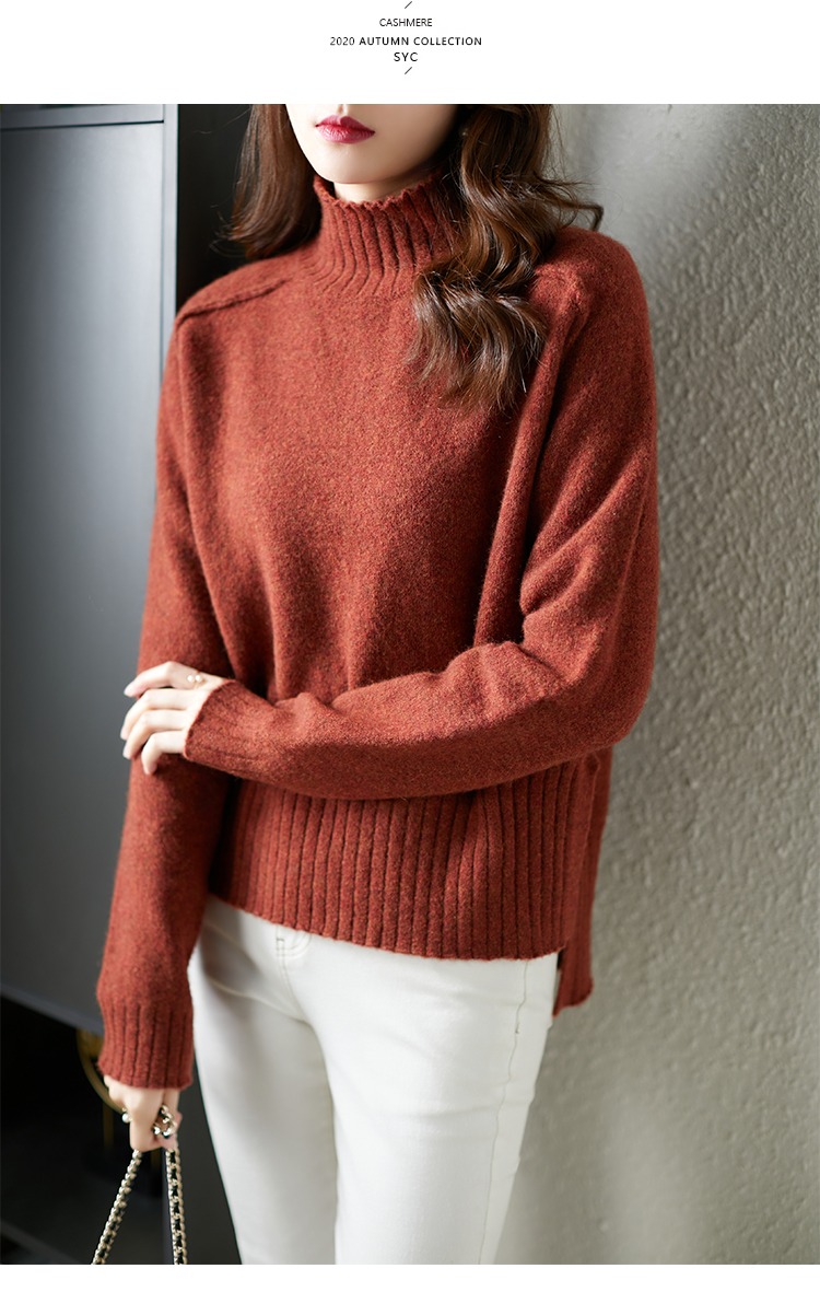 重磅牦牛绒毛衣女宽松外穿2023春季新款高领时尚女士坑条打底