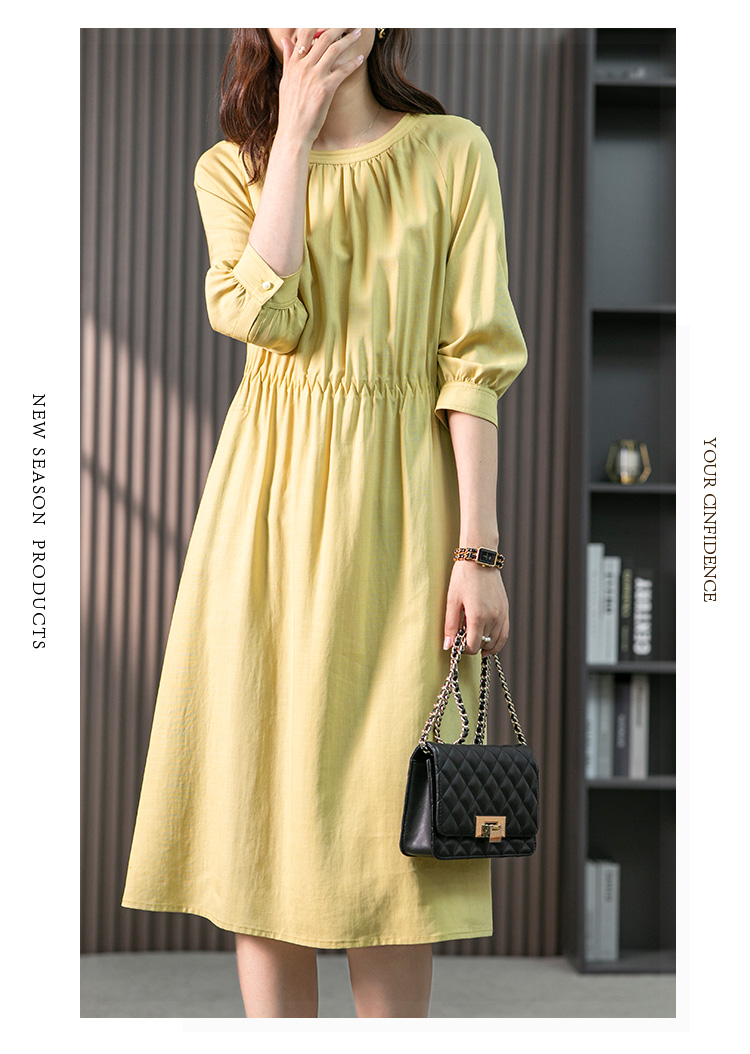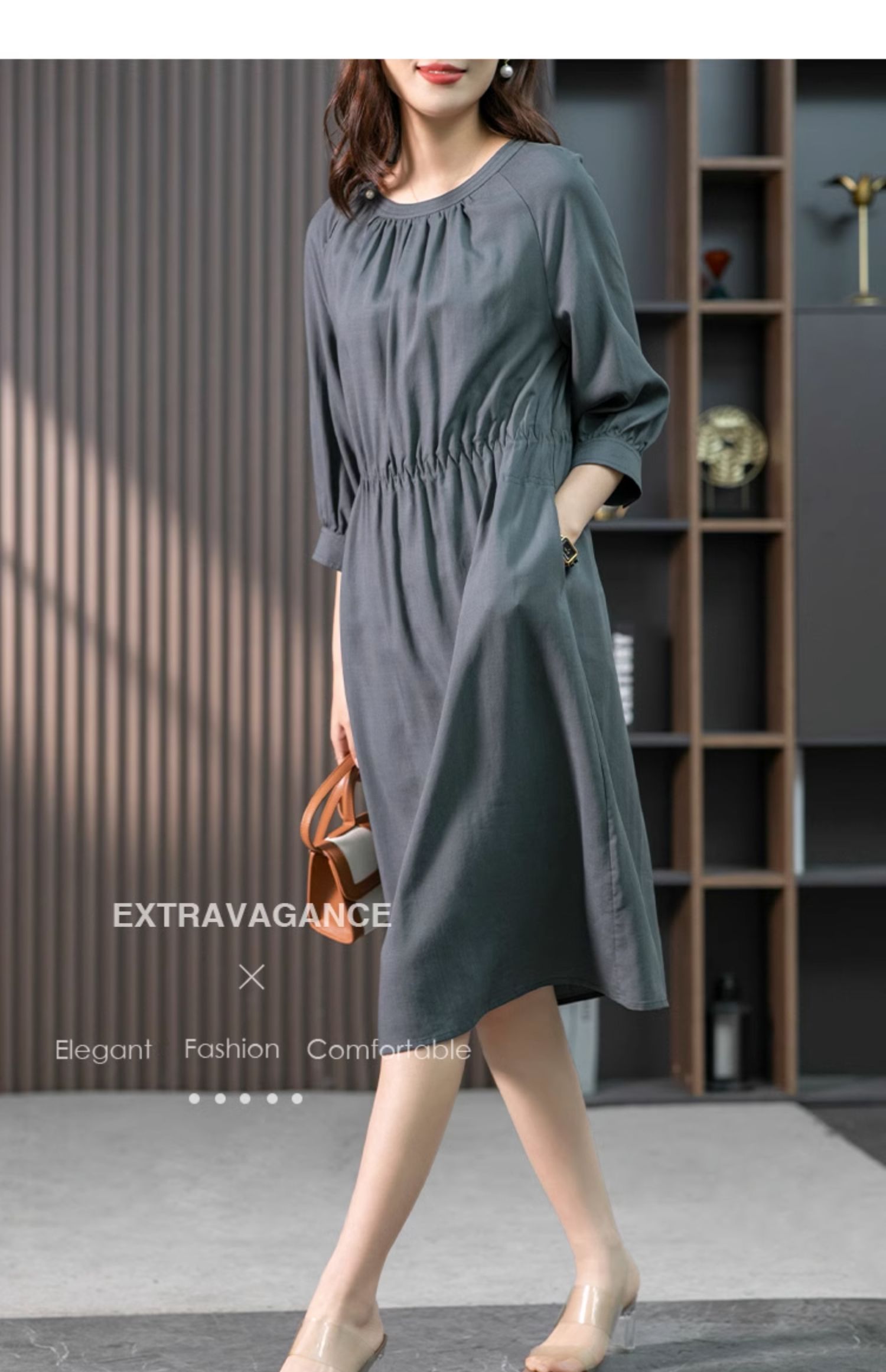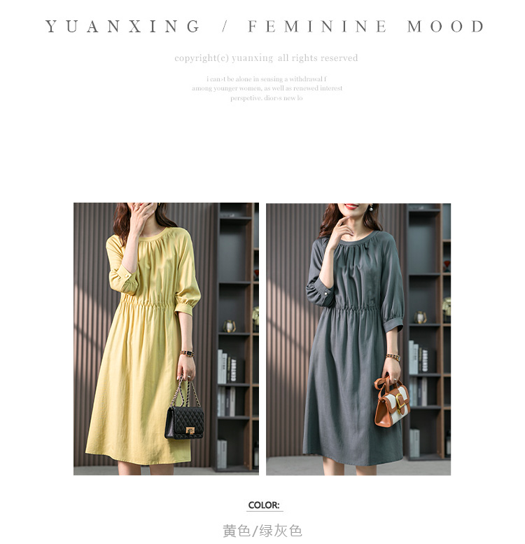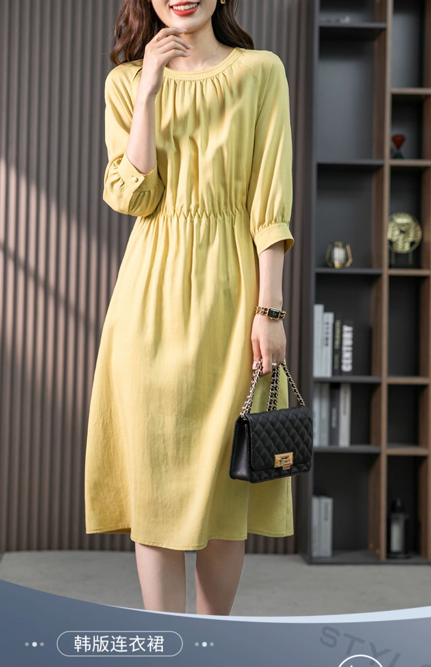 YX【定制15天】天丝连衣裙女夏季2023新款韩版收腰显瘦温柔风舒适中长款裙子