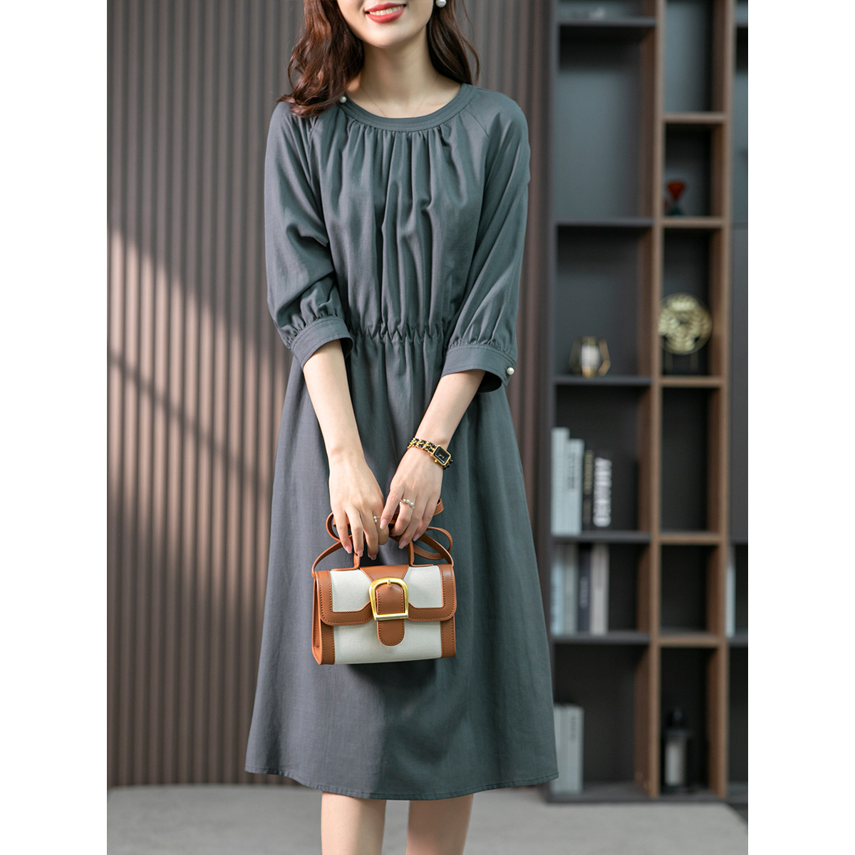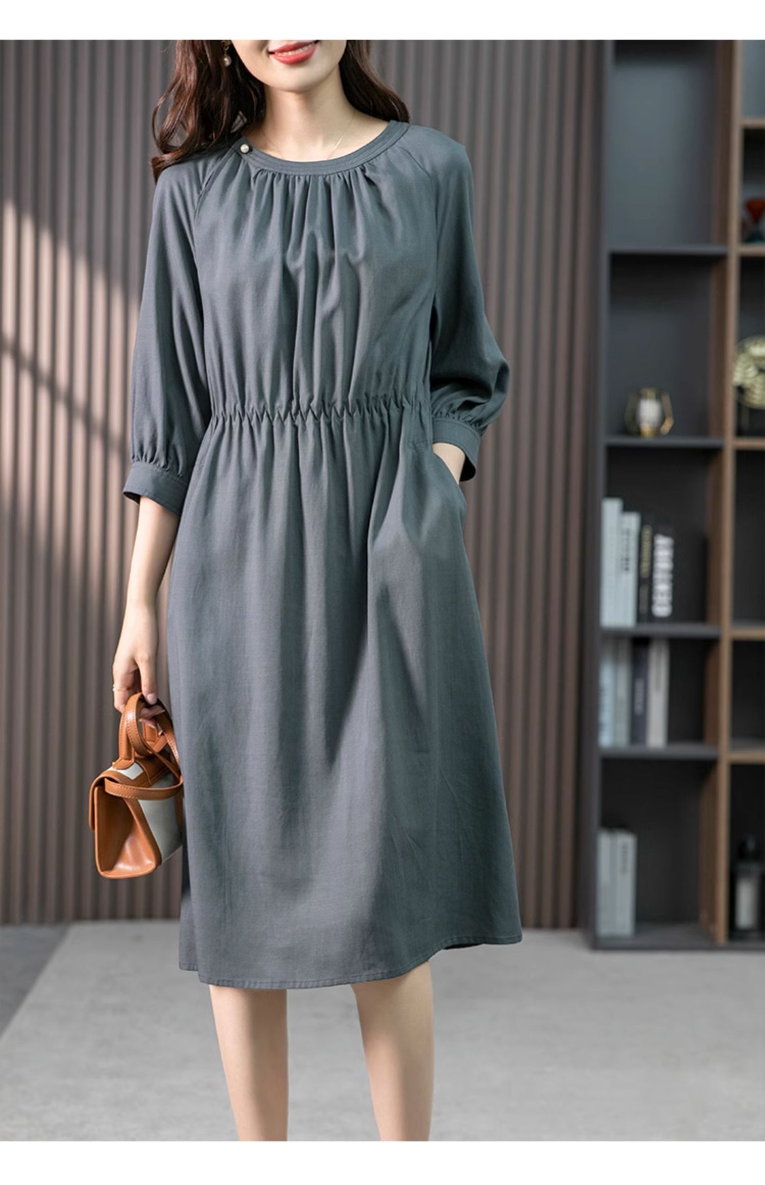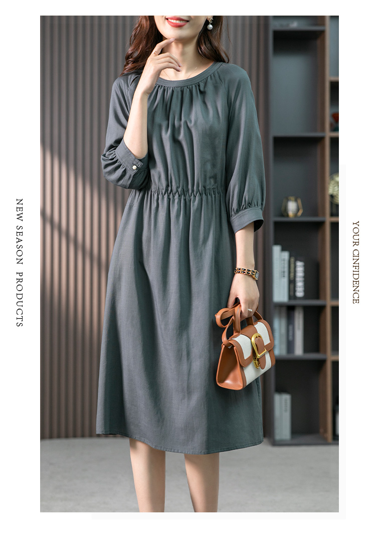 YX【定制15天】天丝连衣裙女夏季2023新款韩版收腰显瘦温柔风舒适中长款裙子