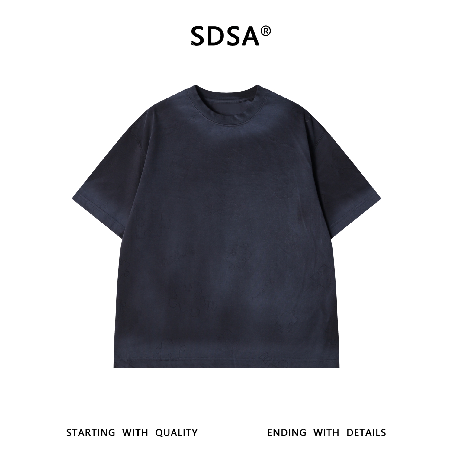 SDSA男装2026新款高贵轻奢拼图暗纹提花短袖T恤宽松圆领休闲上衣