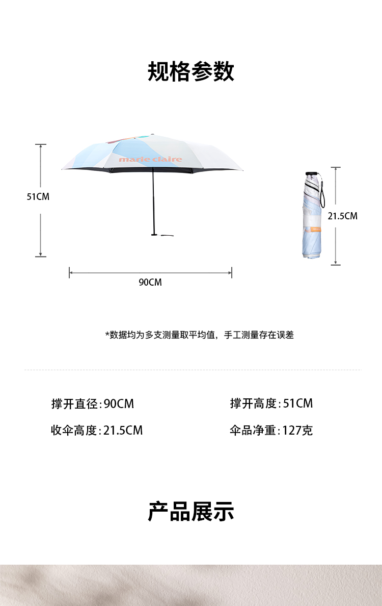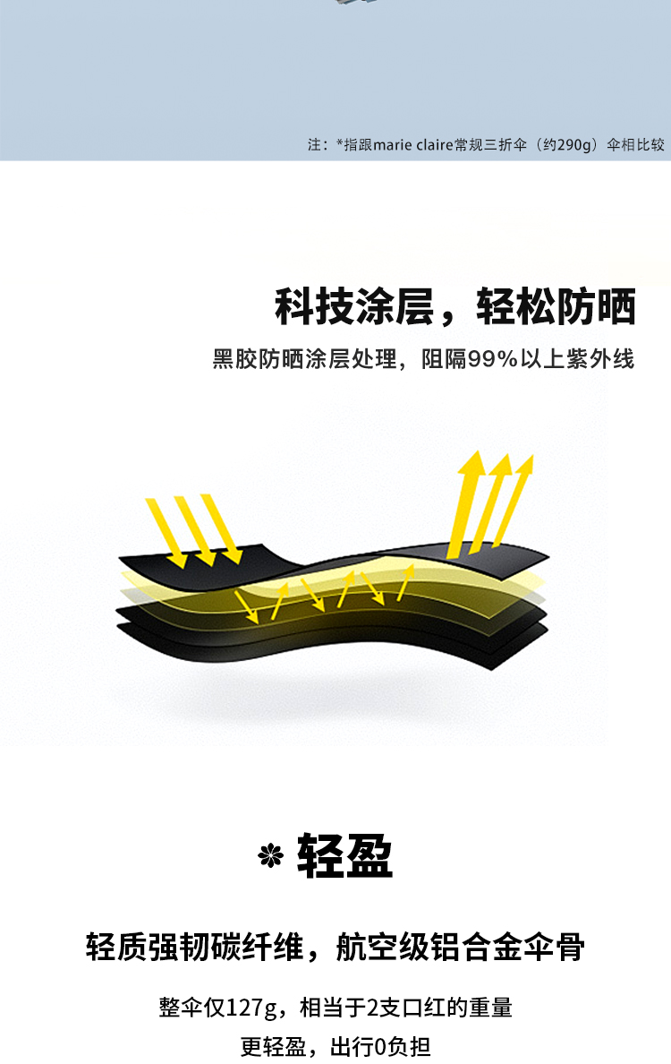 法国MC marie claire超轻遮阳伞女防晒伞防紫外线便携晴雨太阳伞