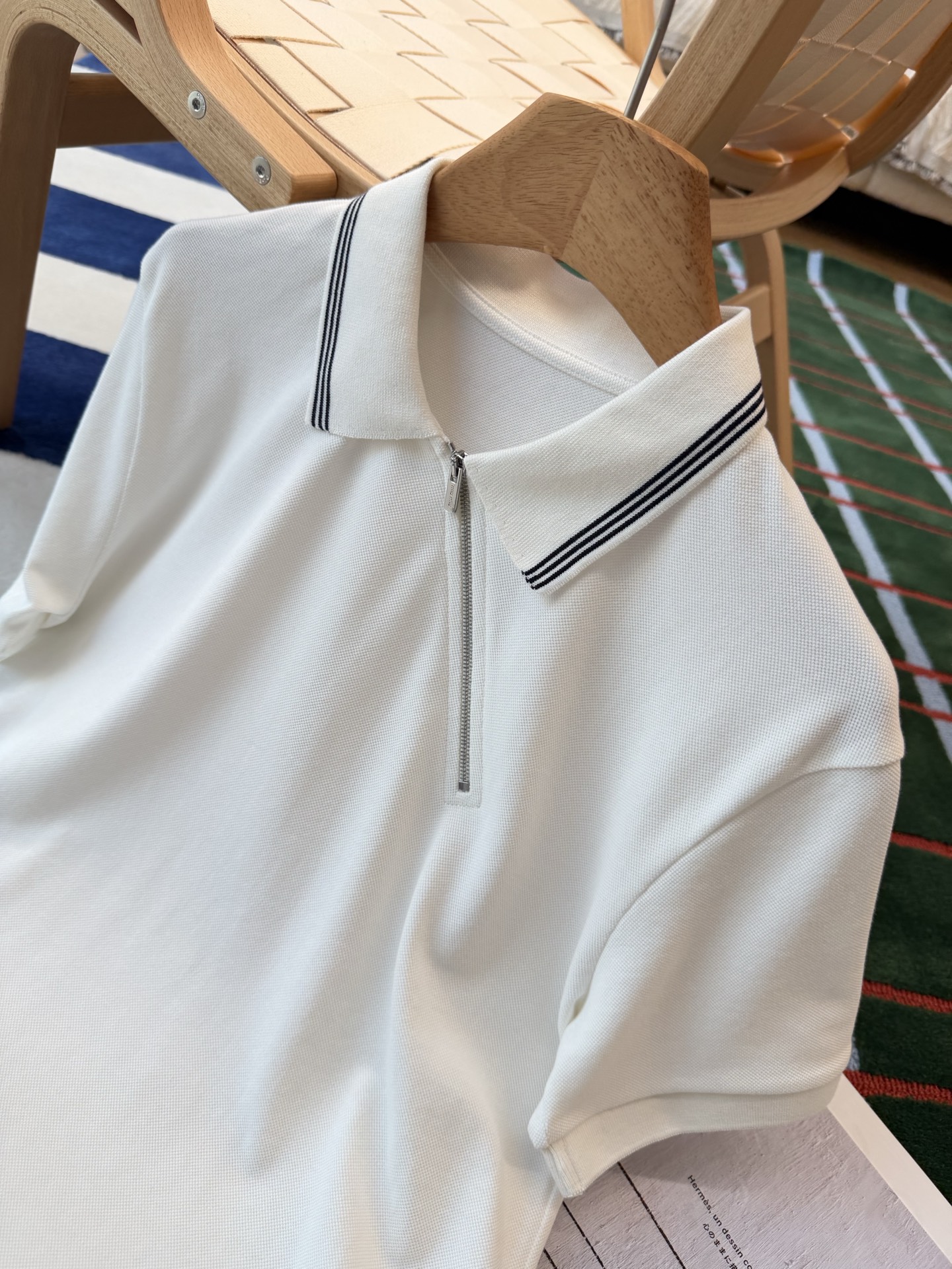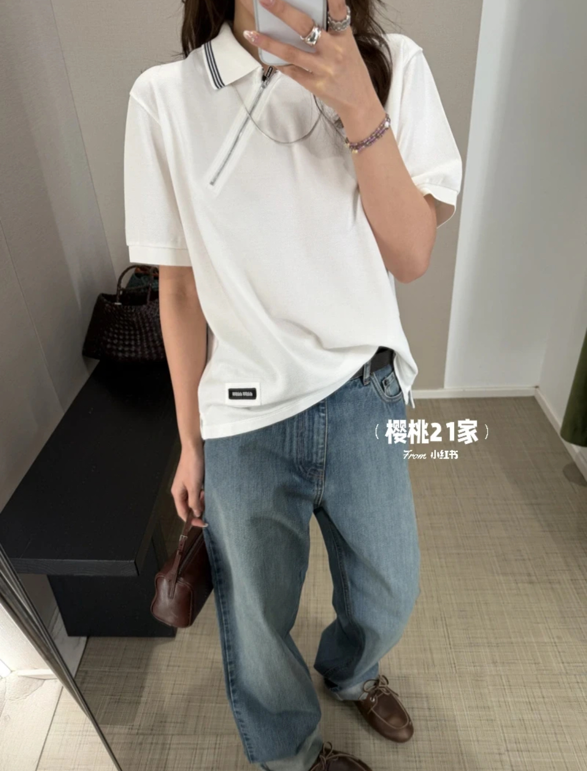 最新 斜拉链短袖POLO衫,倾斜拉链设计,随性又迷人, 时髦感十足, 气质少女风,甜美减龄,不挑身材且显瘦,为日常衣橱增添新意☑️,高级感与舒适度, 经典不易过时,轻松搭配各类裤装裙装,闭眼入的百搭款,姐妹们别错过, 码数 SML