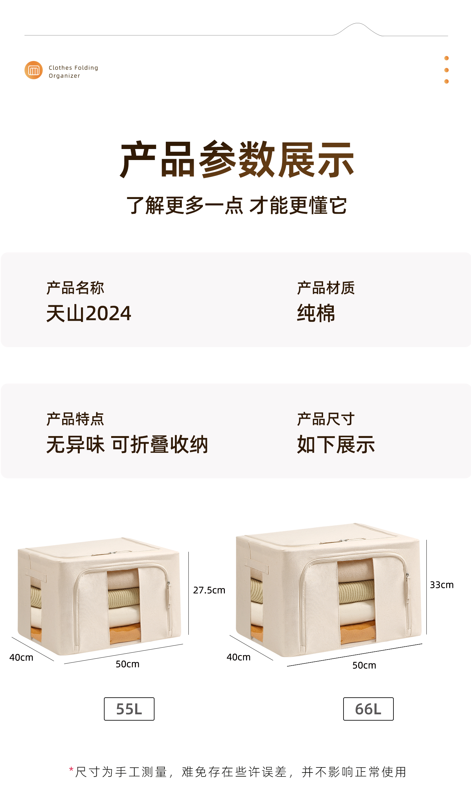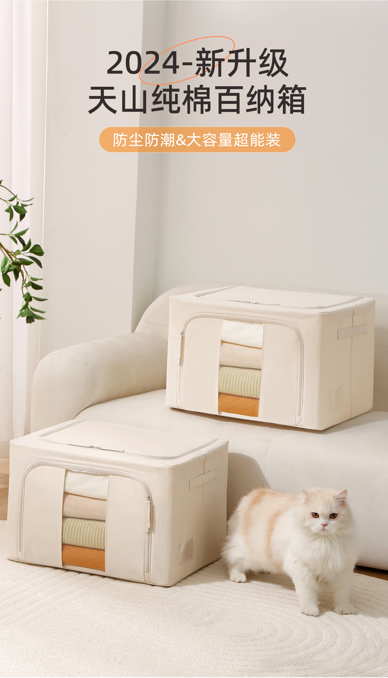 【55L 1个/2个/5个装可选】娜家天山全棉收纳箱