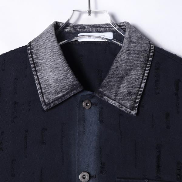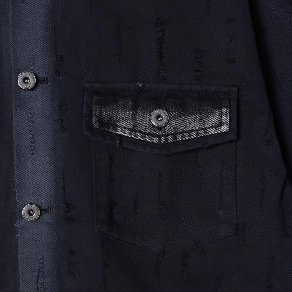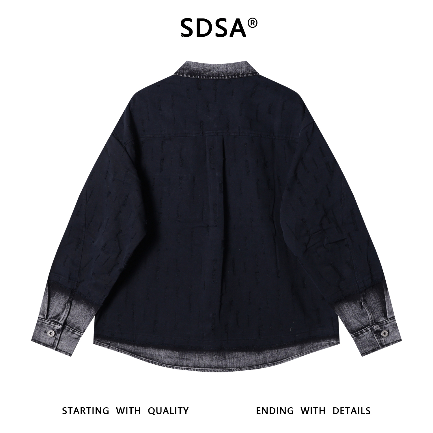 56156SDSA男士秋冬新款痞帅男装潮牌渐变磨破翻领长袖衬衫时尚百搭衬衣