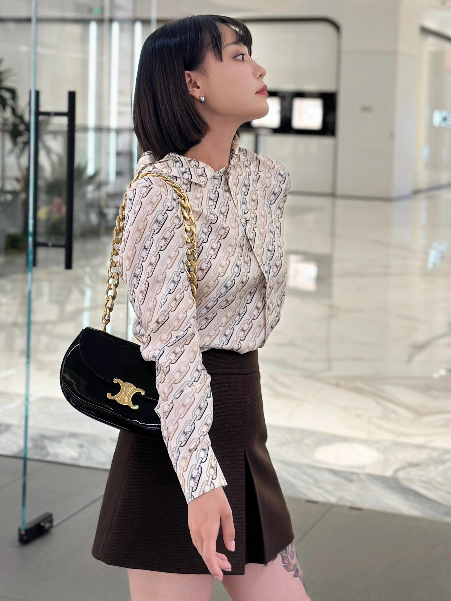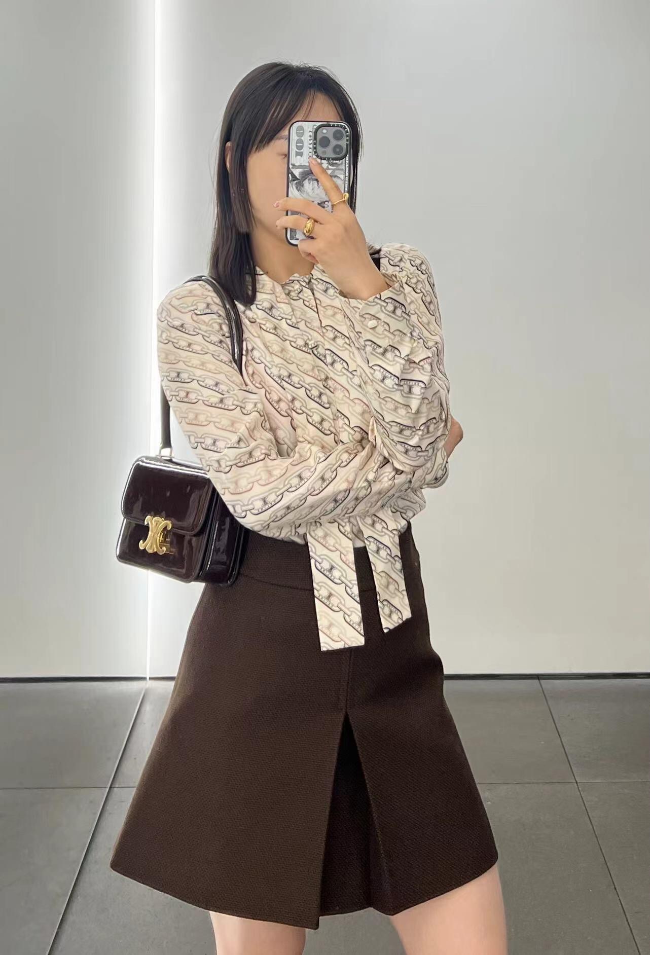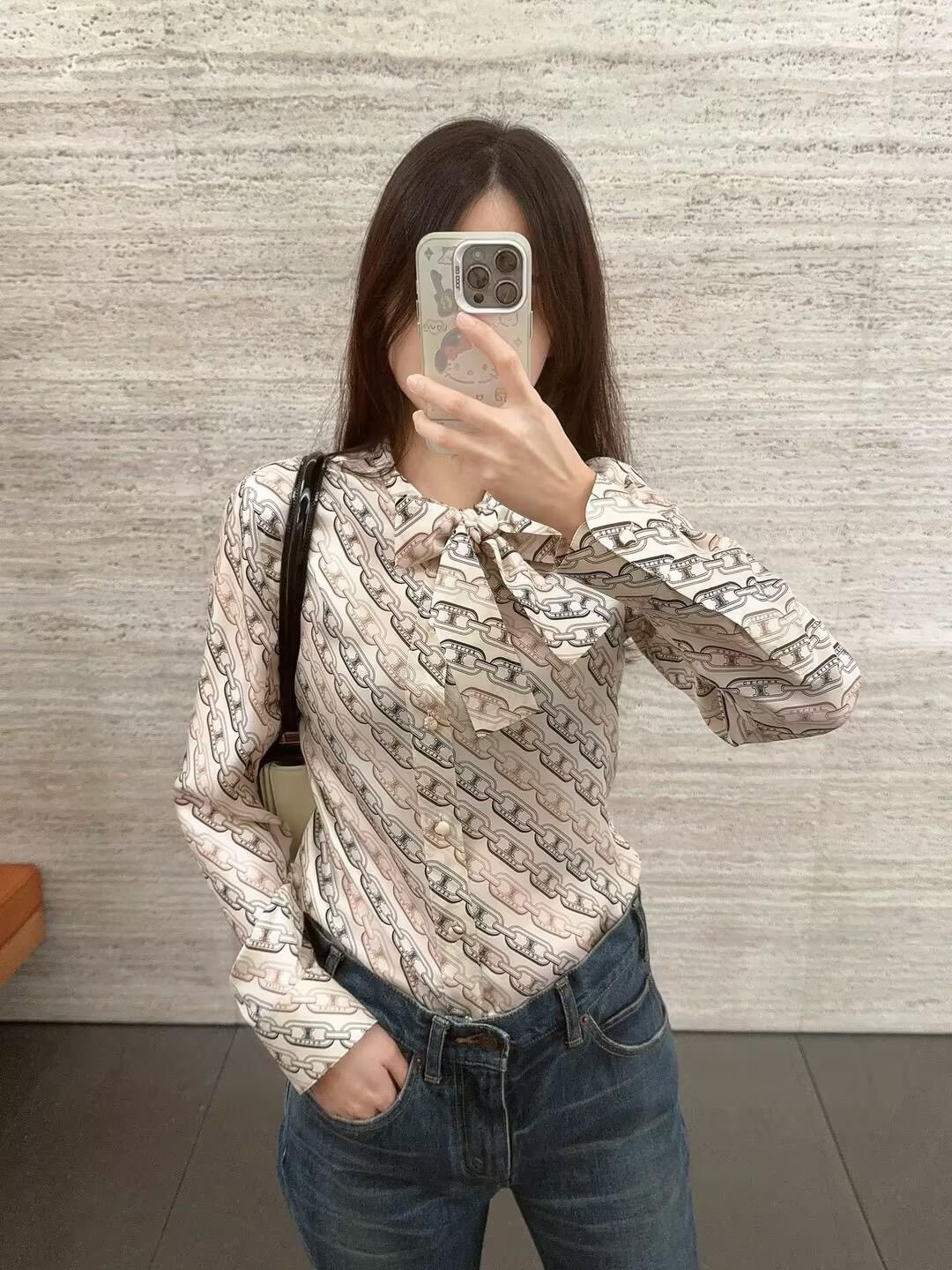 Celin* 24Fw秋冬新款 凯旋门链条印花长袖衬衫丨⚠独家高版出品!