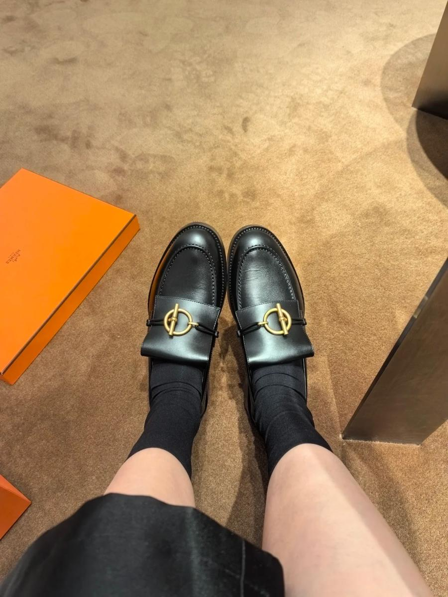 𝐇𝐄𝐑𝐌𝐄𝐒# 爱马仕今年秋冬新出的新款乐福鞋搭配经典复古金色Glenan鞋扣。