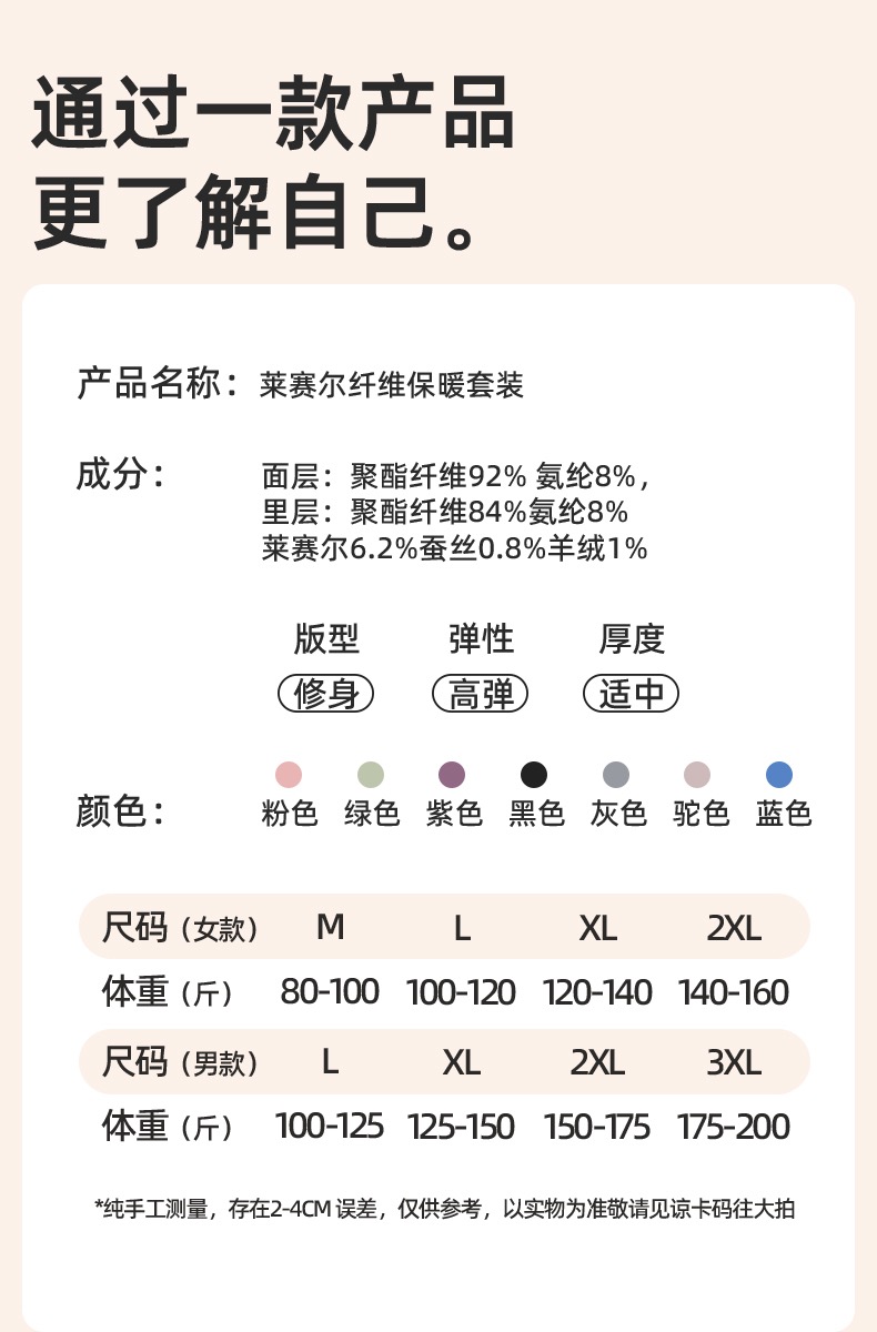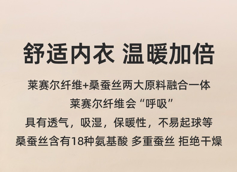 品牌:莱赛尔天丝保暖套装 发货地:浙江温州 发货时间:下单后一般48-72小时内发货(周末、节假日除外) 发货快递:申通快递、中通快递、圆通快递(以实际发货为准,暂不支持指定快递) 运费政策:该商品全国部分地区包邮(新疆、西藏需补差运费12元/件港澳台不发货,请知悉) 售后政策:本品包装配件完整、未水洗、不影响二次销售支持7天无理由退换货(无运费险),请知悉 |