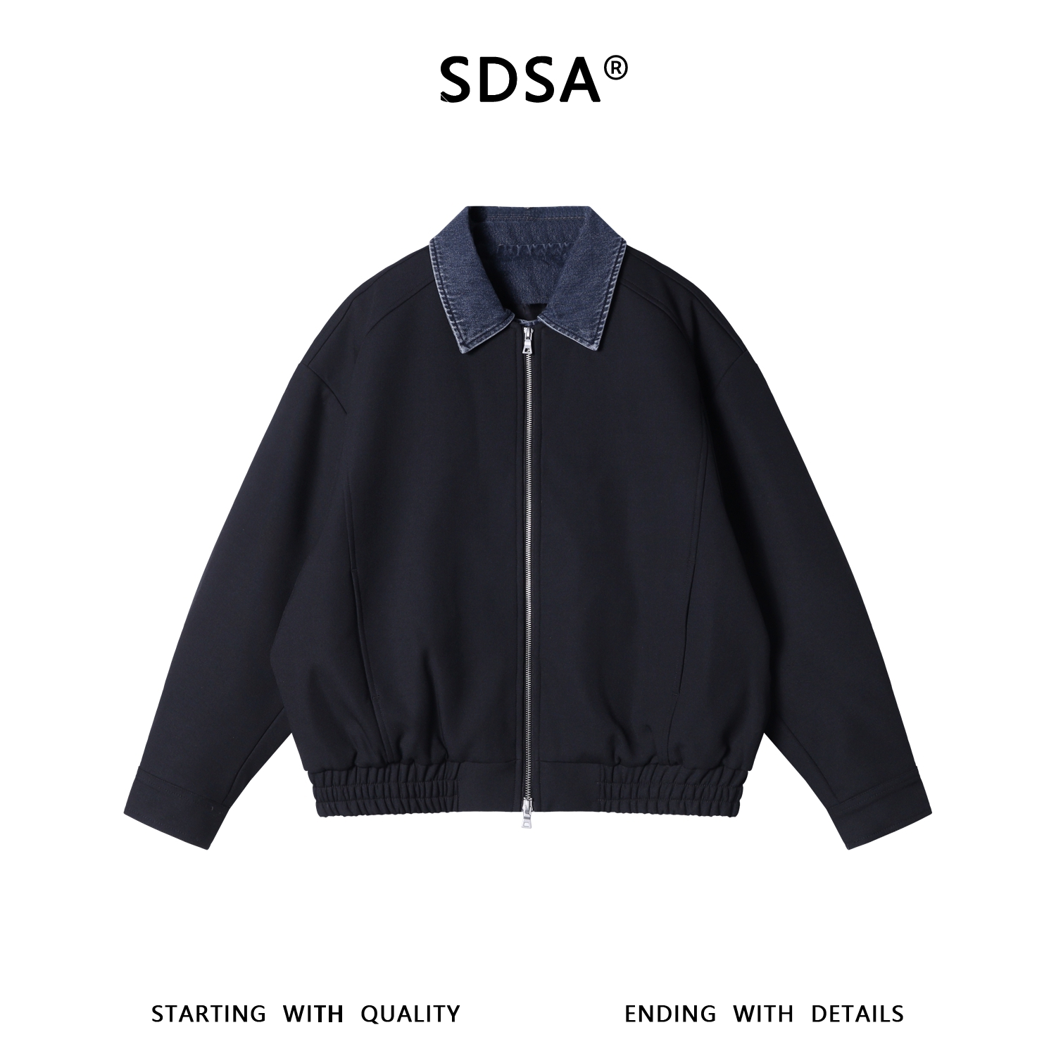 SDSA男士秋冬新款痞帅男装韩系牛仔翻领假两件棉服外套百搭时尚