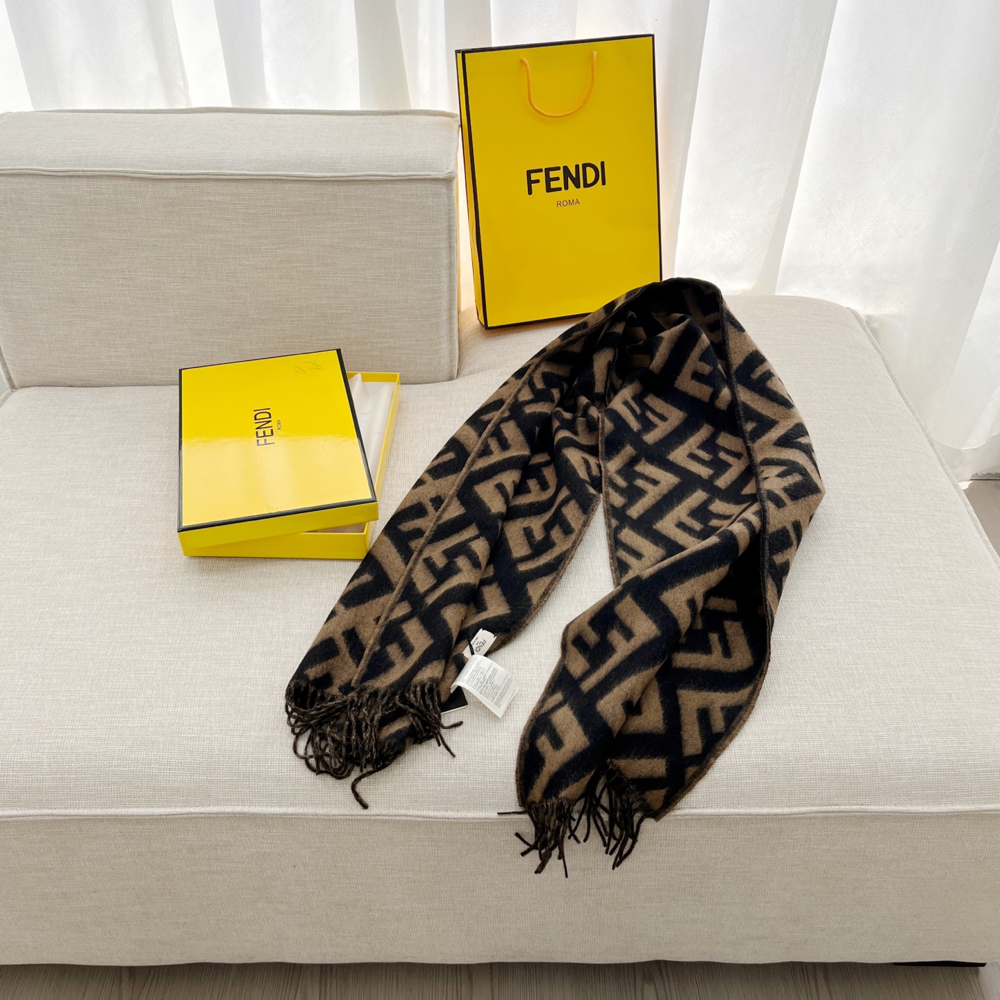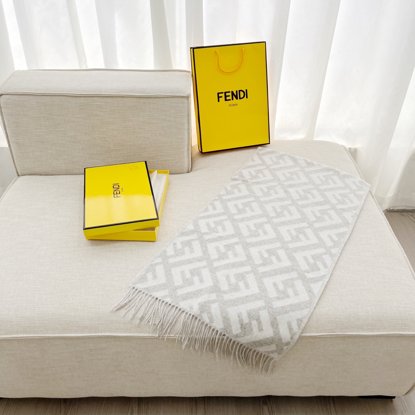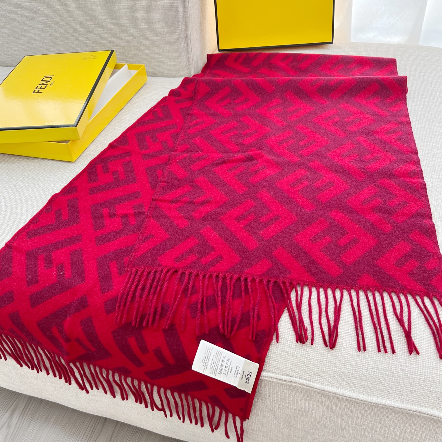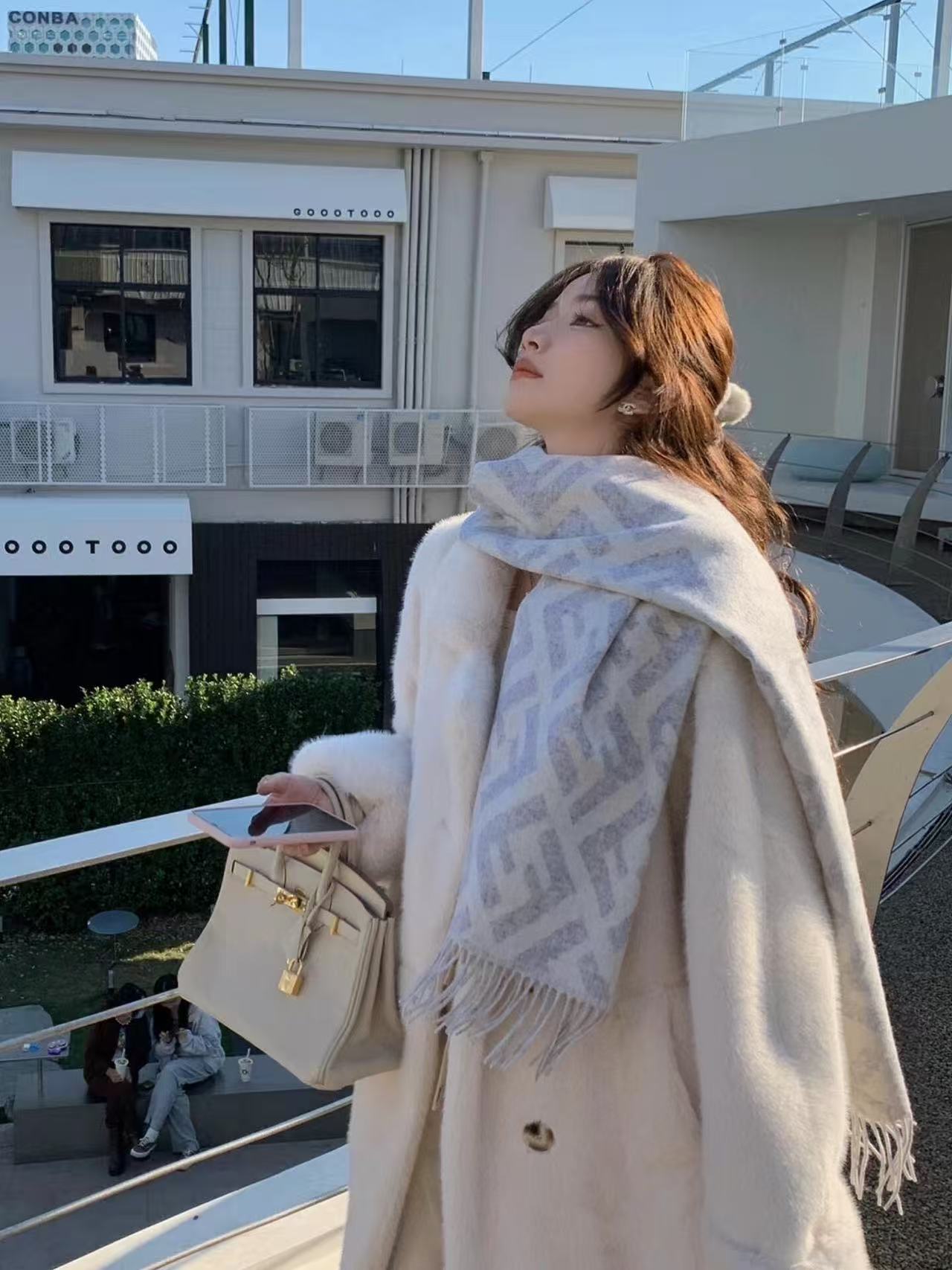 Fend*最火的围巾,全世界都在抢的老花FF字母款,上身效果气场非常强大!纯手工精梳处理。绝对是重磅!不同于希望的围巾组织构造,这款围巾的效果很特别,手感柔软成色有质感,纱线细致分明,版型更是非常有型,用手机拍出来都能惊艳,高密度精工细作❗️大牌的东西真的非常考究,匠心之作。羊绒