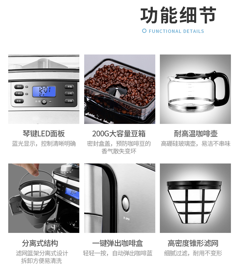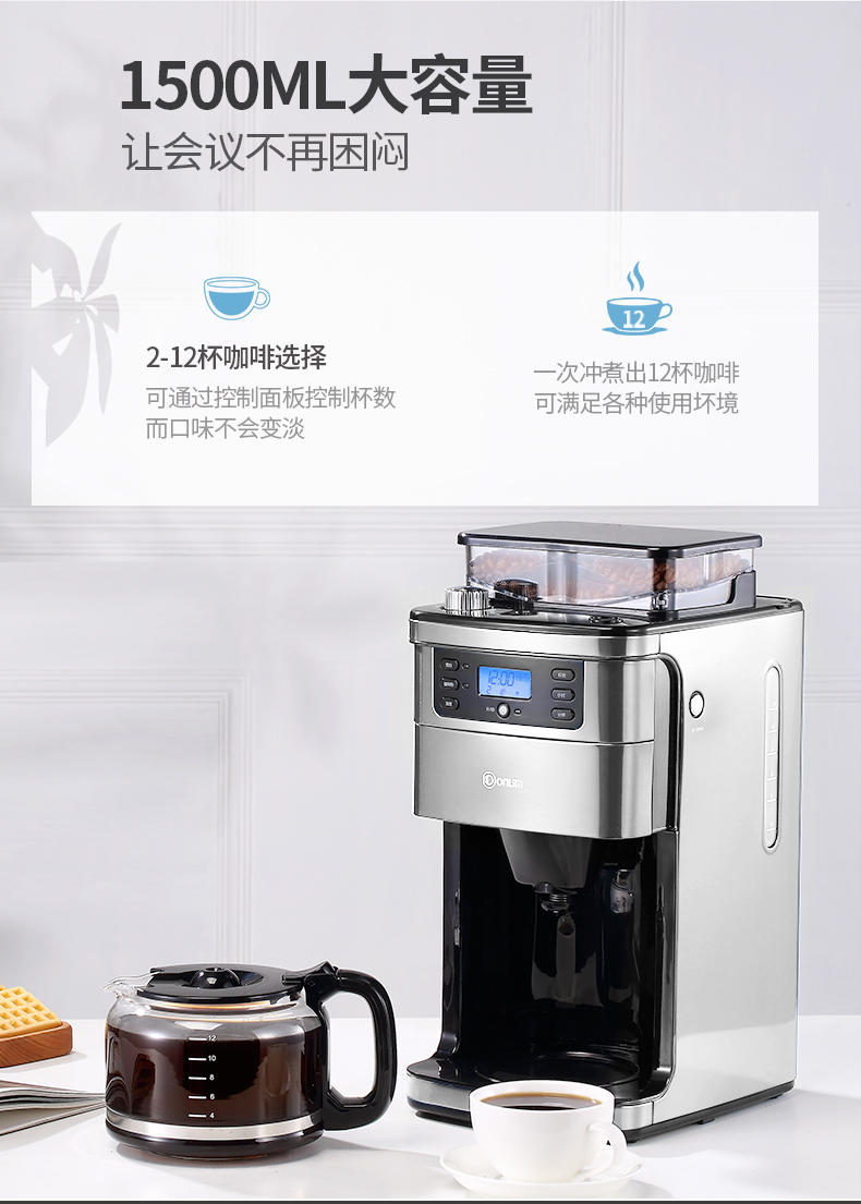 东菱(Donlim) 咖啡机 家用咖啡机 美式全自动 滴滤式咖啡壶 现磨多档可选 豆粉两用 浓度可选 DL-KF4266