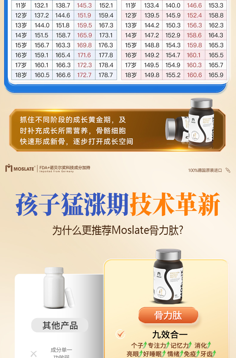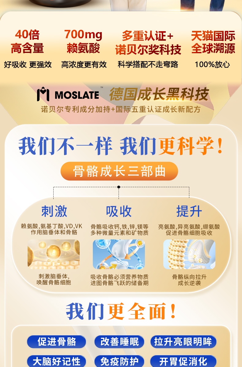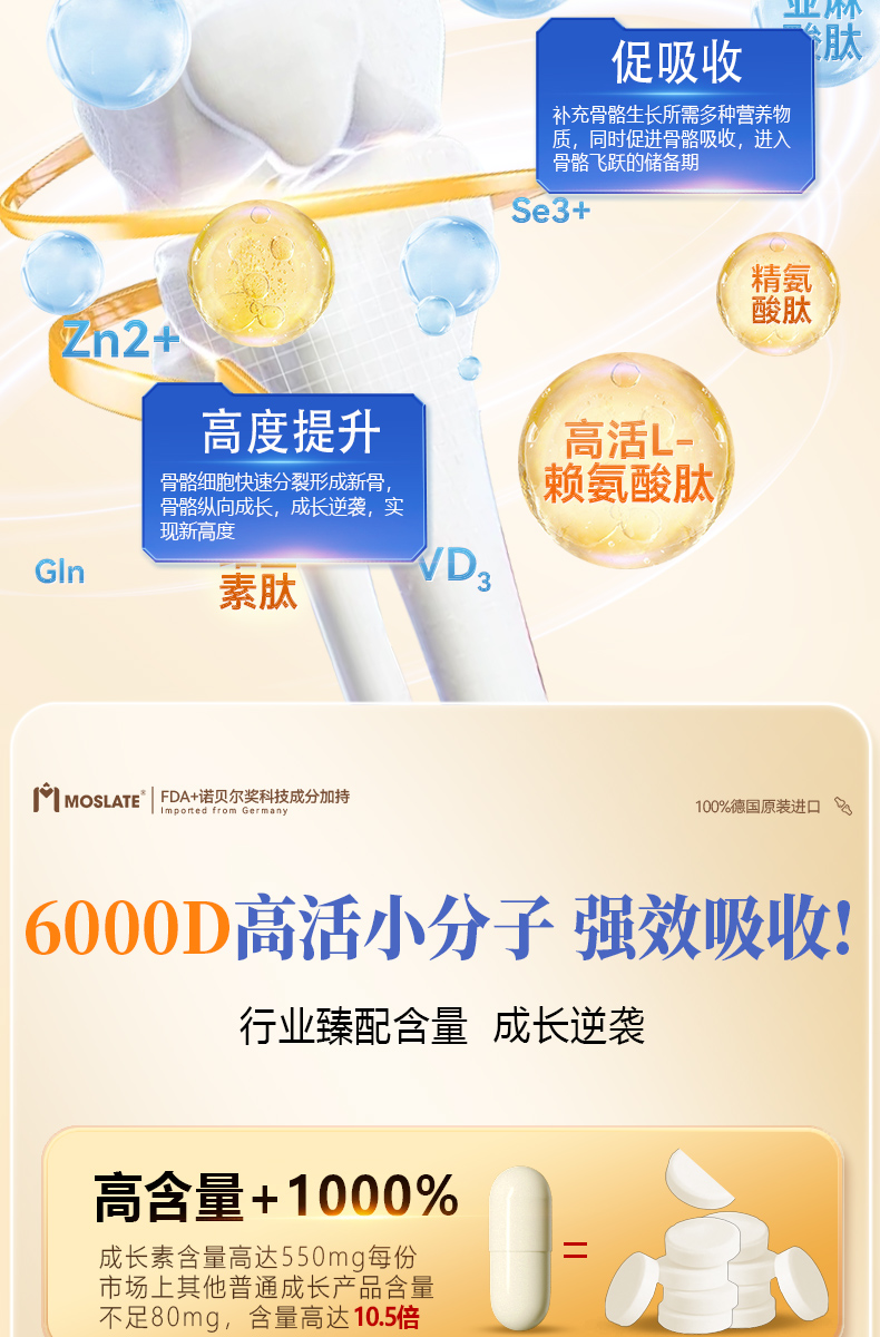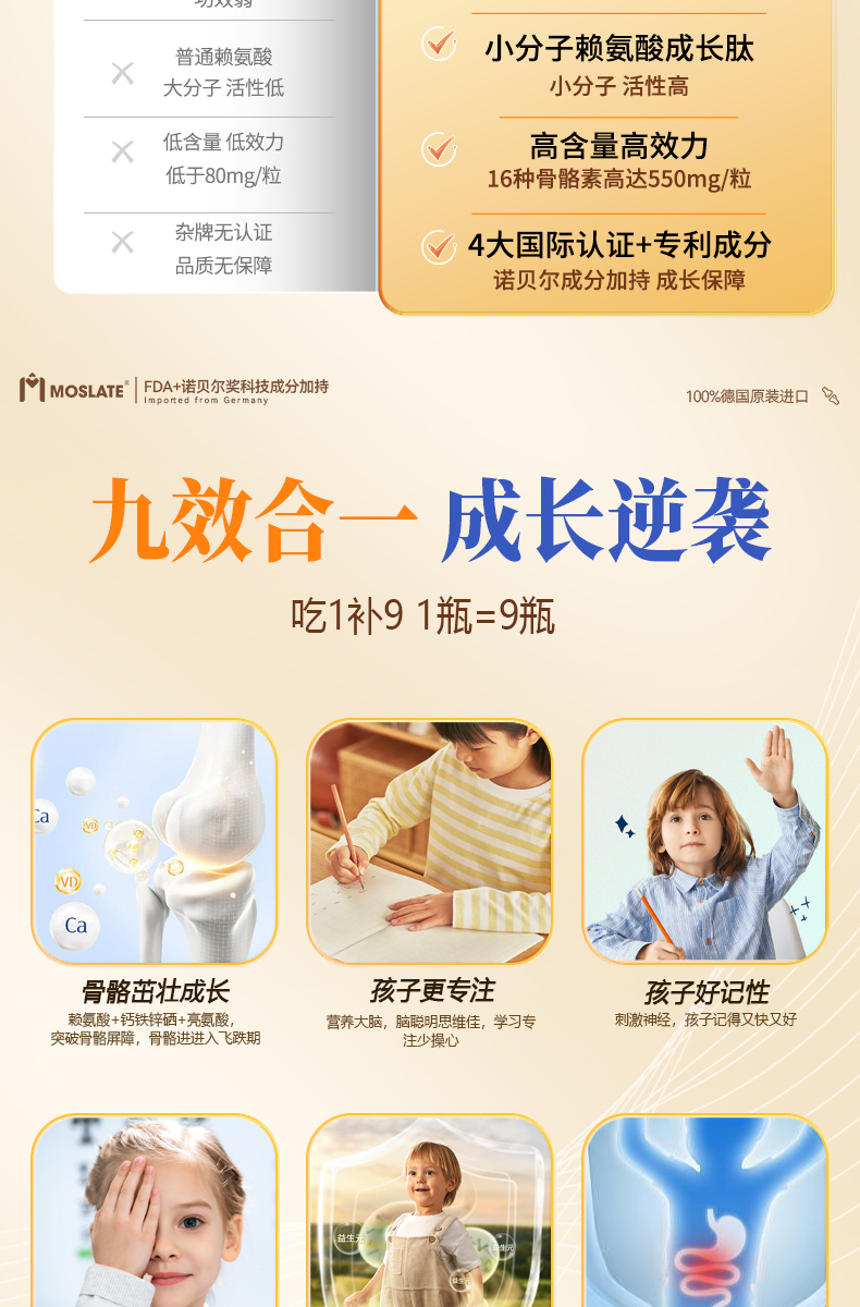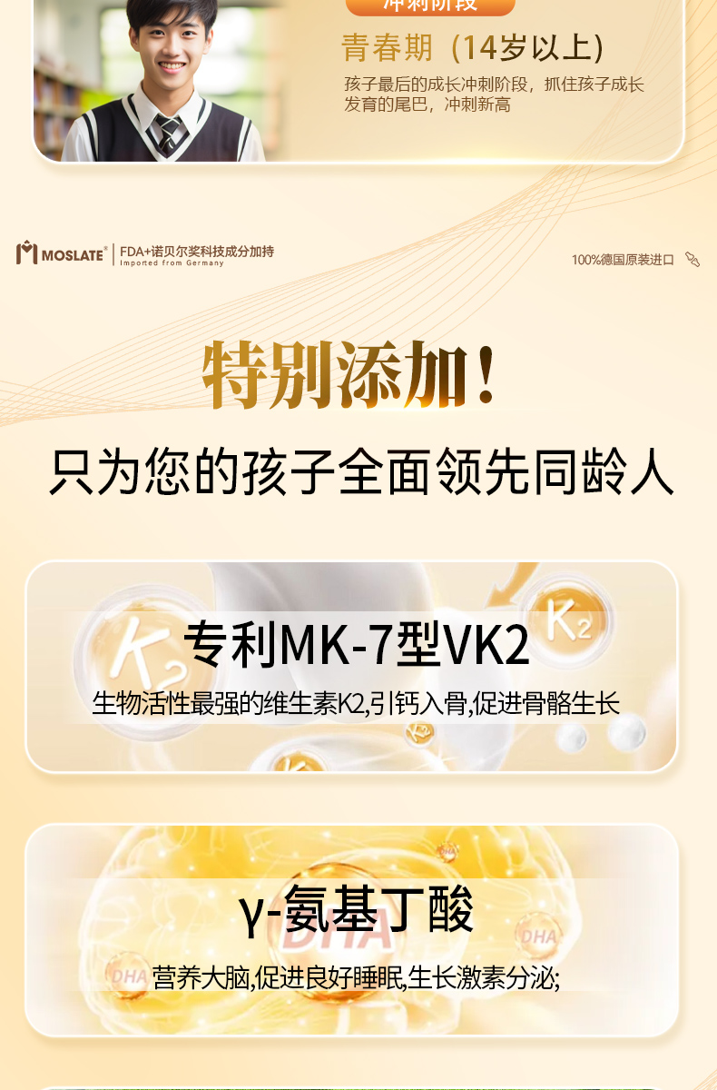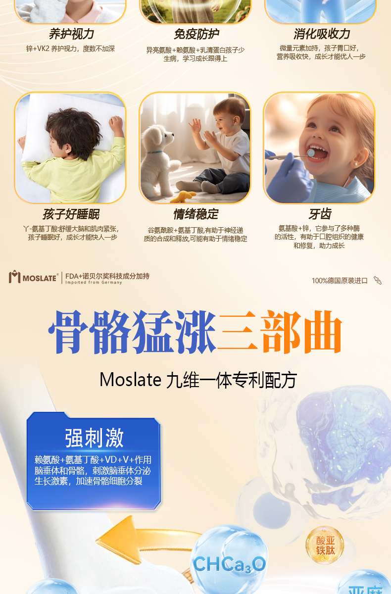 Moslate德国进口成长活性赖氨酸肽助力儿童青少年高阶版补钙片D