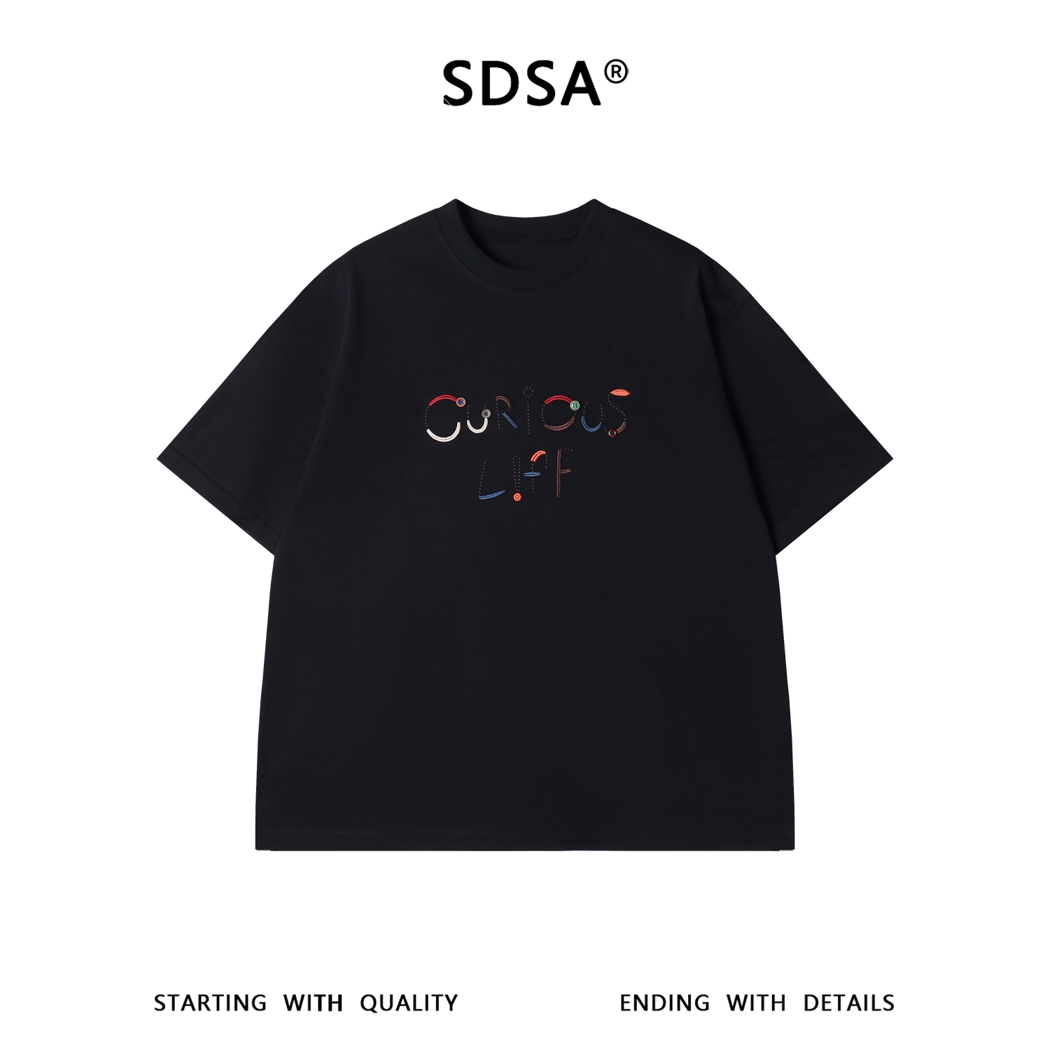 SDSA男装2026新款轻奢简约彩色刺绣字母圆领短袖T恤纽扣装饰百搭