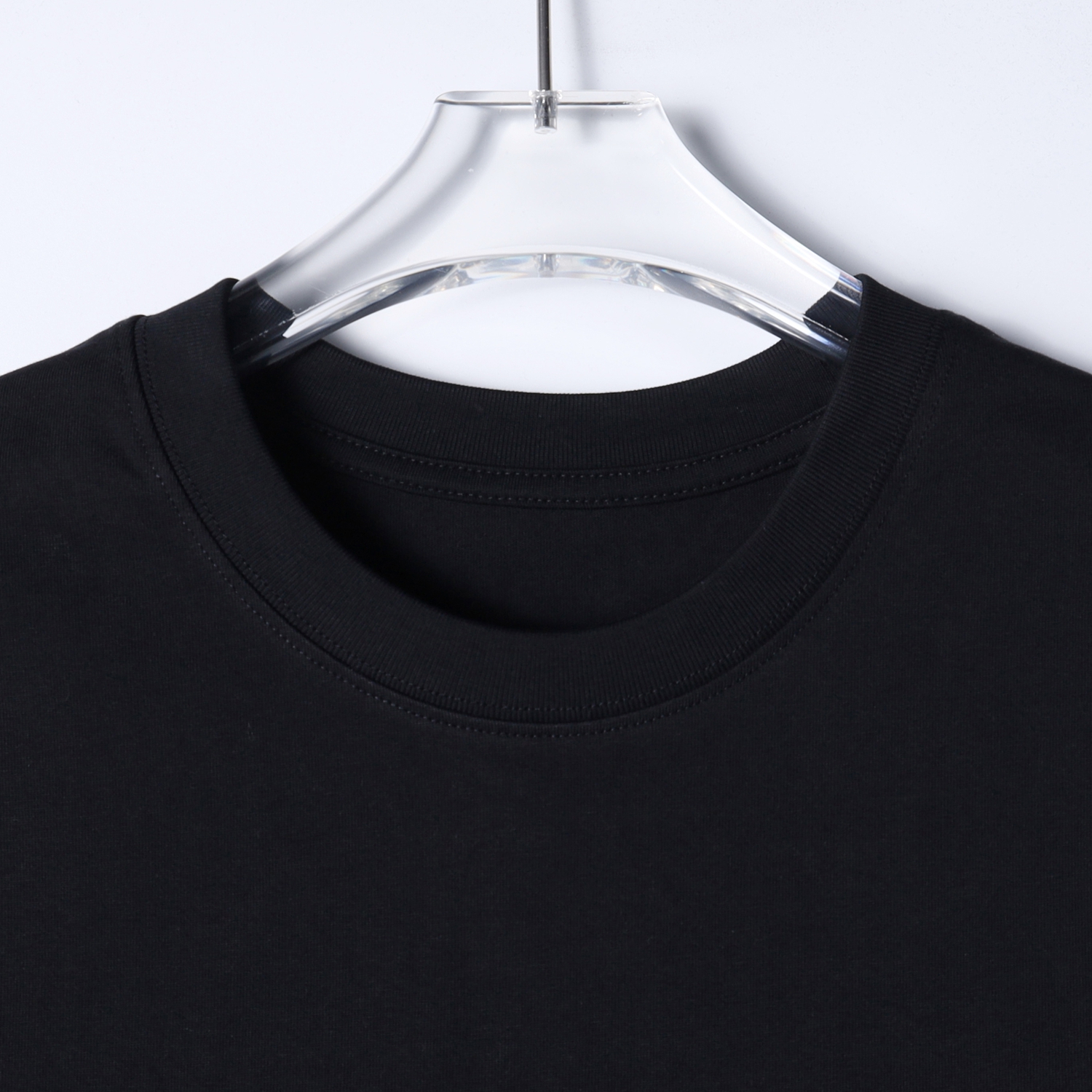 T3182夏季高级感新款美式撞色暗纹提花圆领短袖T恤经典百搭简约上衣