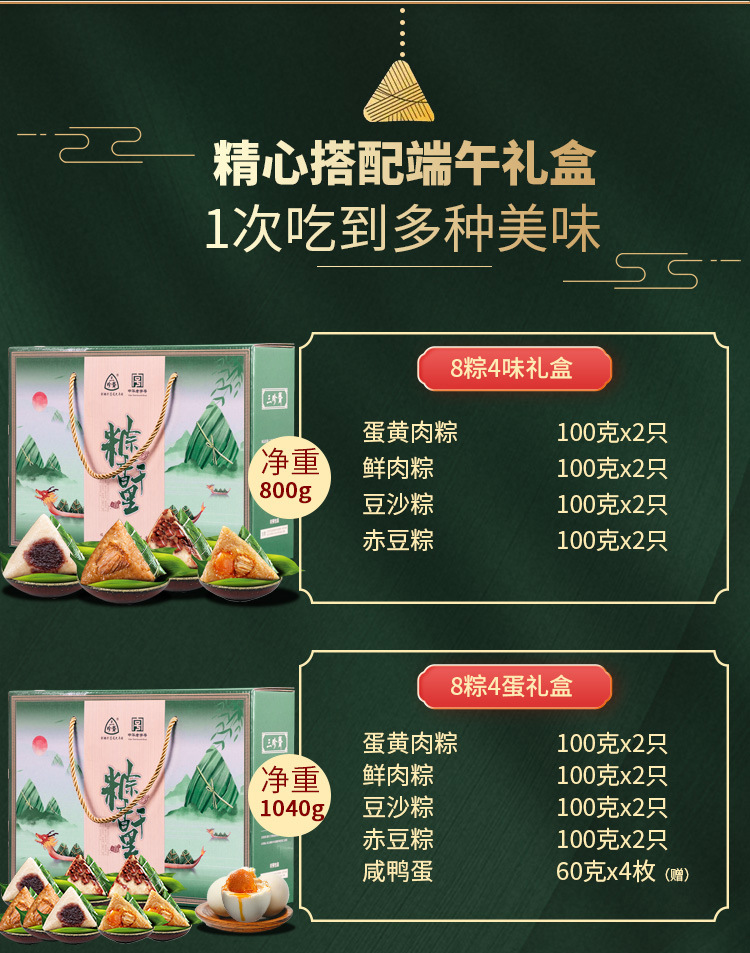 【送礼就要与“粽”不同】三珍斋粽子礼盒装嘉兴粽子纸盒款多口味团购送礼端午节送礼品。ry