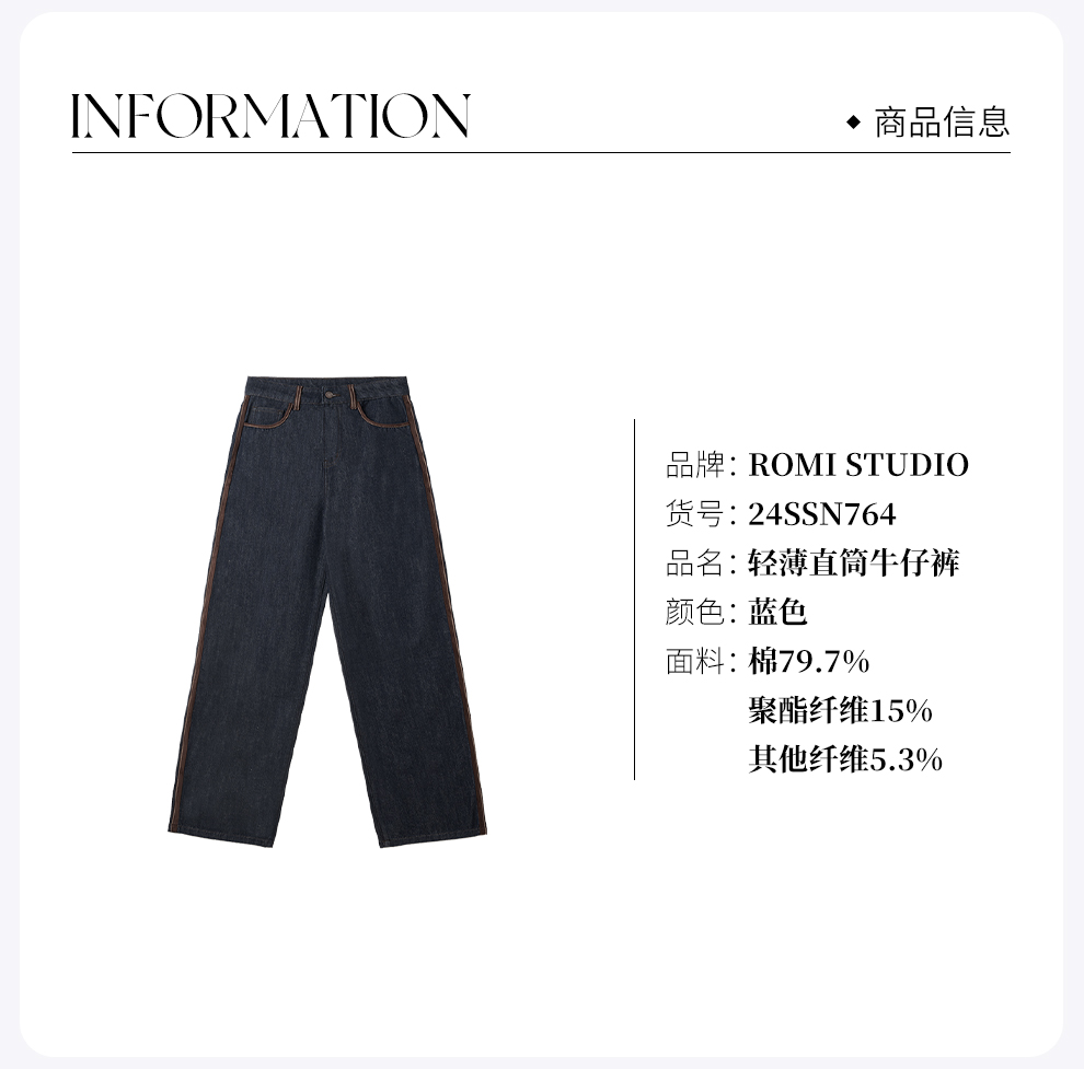 ROMI STUDIO “棕标甄选” 高支斜纹棉洗水拼色直筒牛仔裤 24SSN674