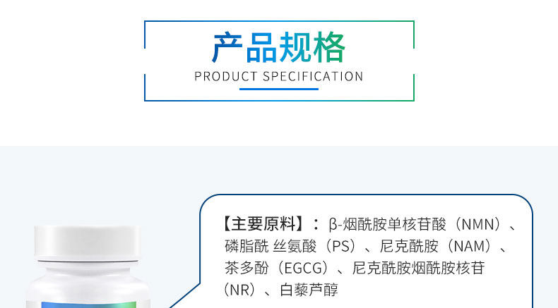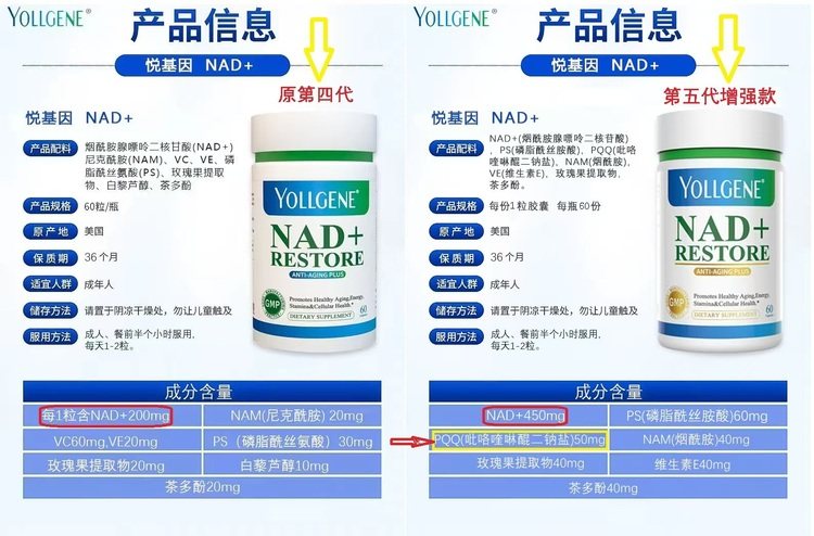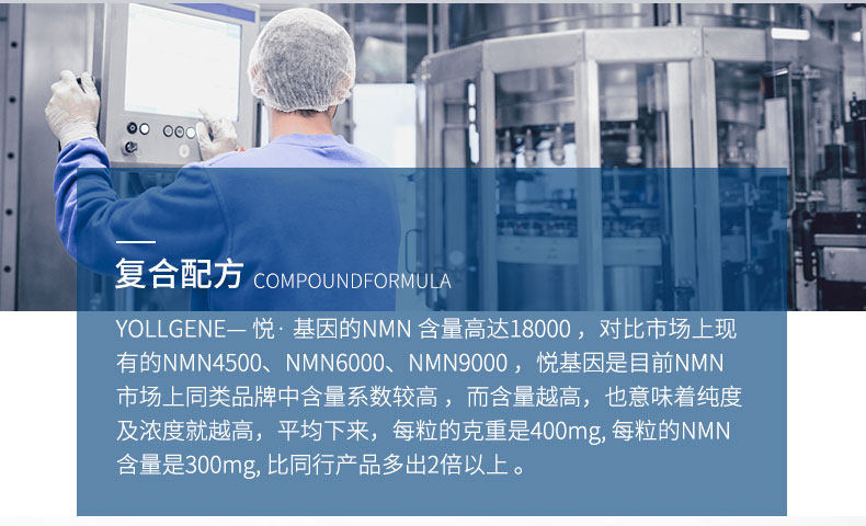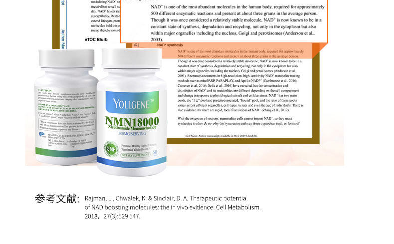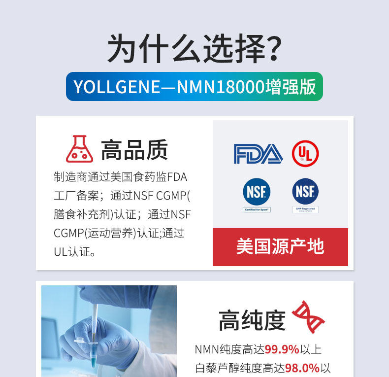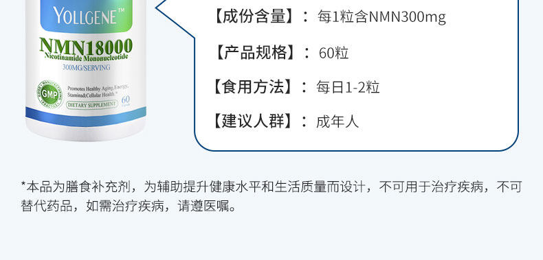 美国悦基因nadYOLLGENE NMN18000β烟酰胺单核苷酸NAD+补充剂60粒