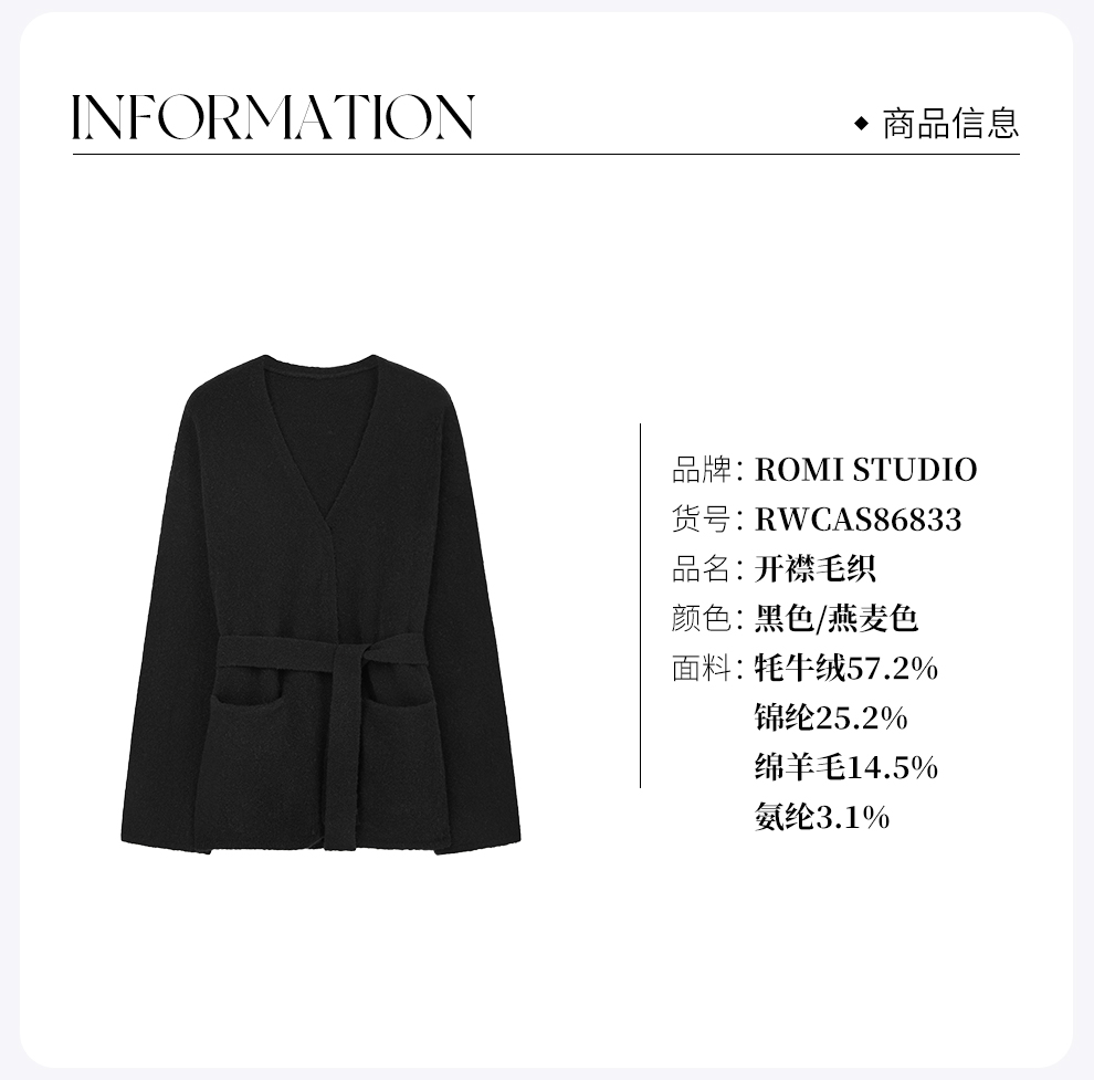 ROMI STUDIO“康宝莱牦牛绒”老钱奢柔宽松落肩针织开衫RWCAS86833