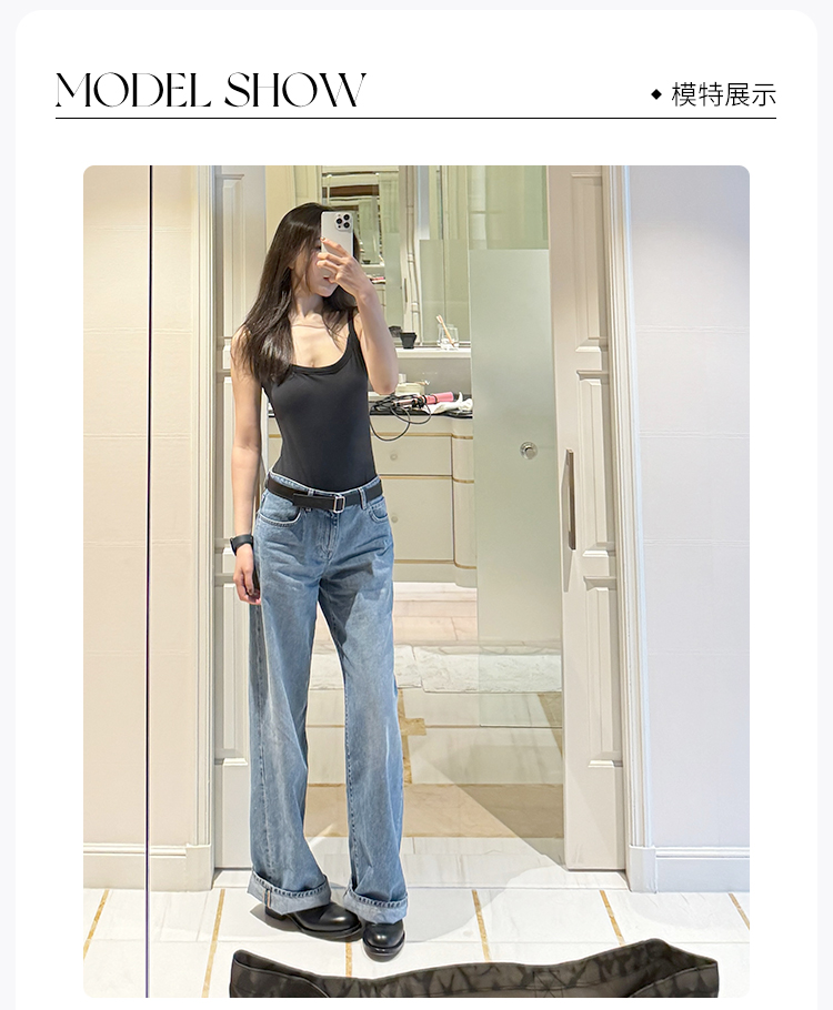 ROMI STUDIO“复古格调”棉质渐变洗水无弹中腰阔腿微喇牛仔裤RWCAX86965