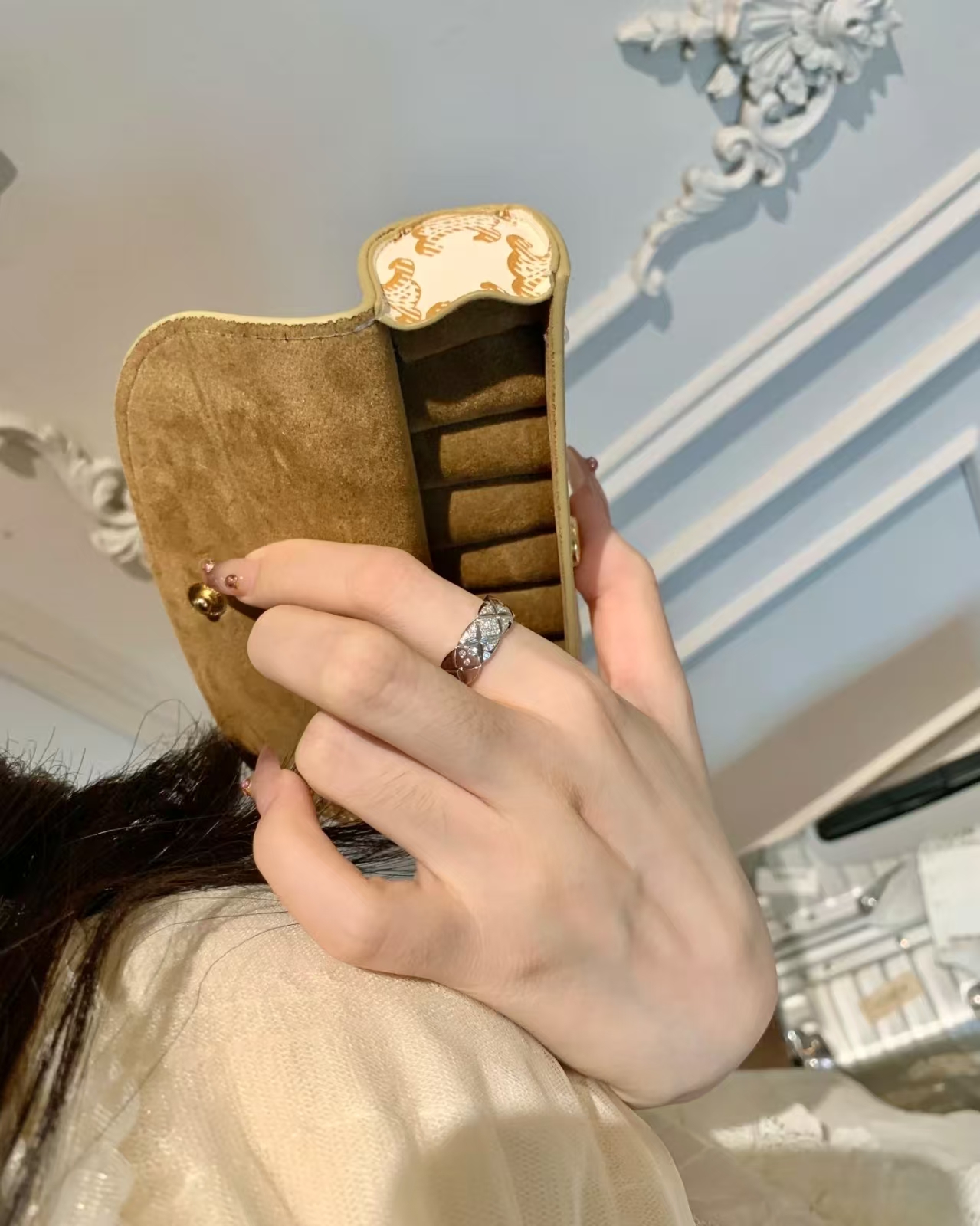 TB37-香奈儿菱格纹宽版水钻戒指(XK)