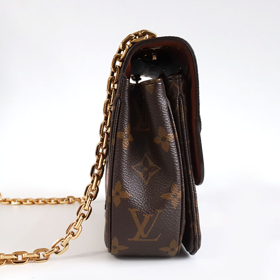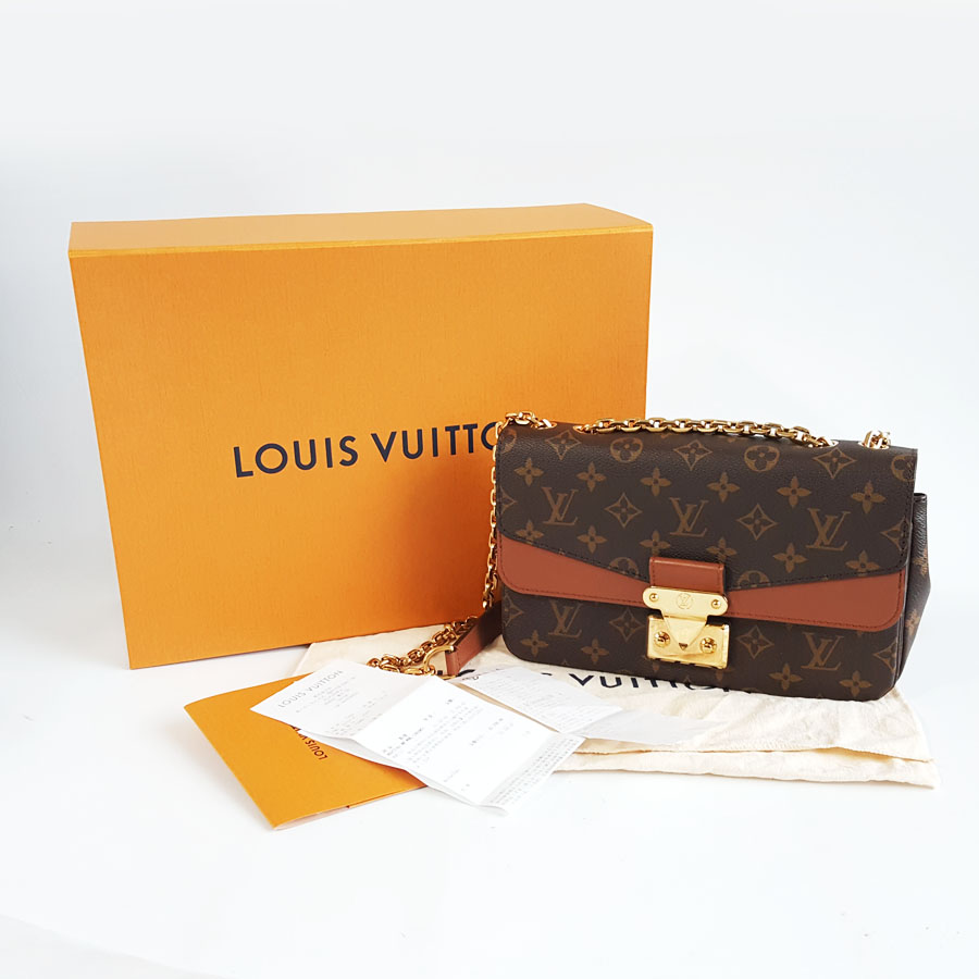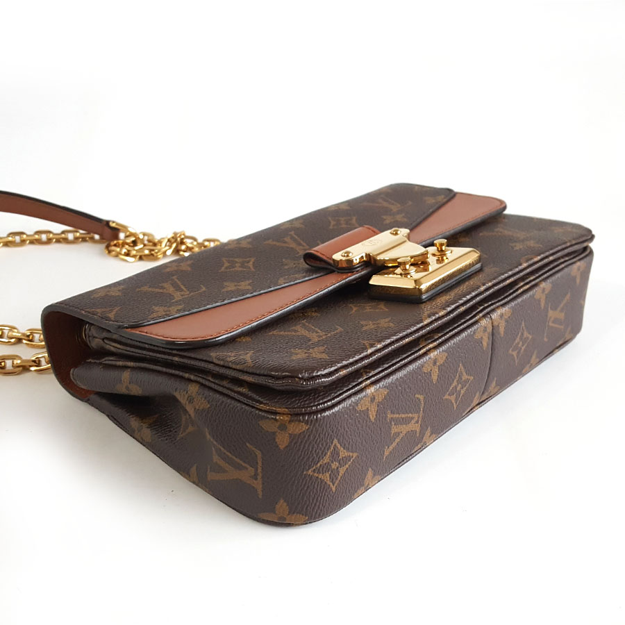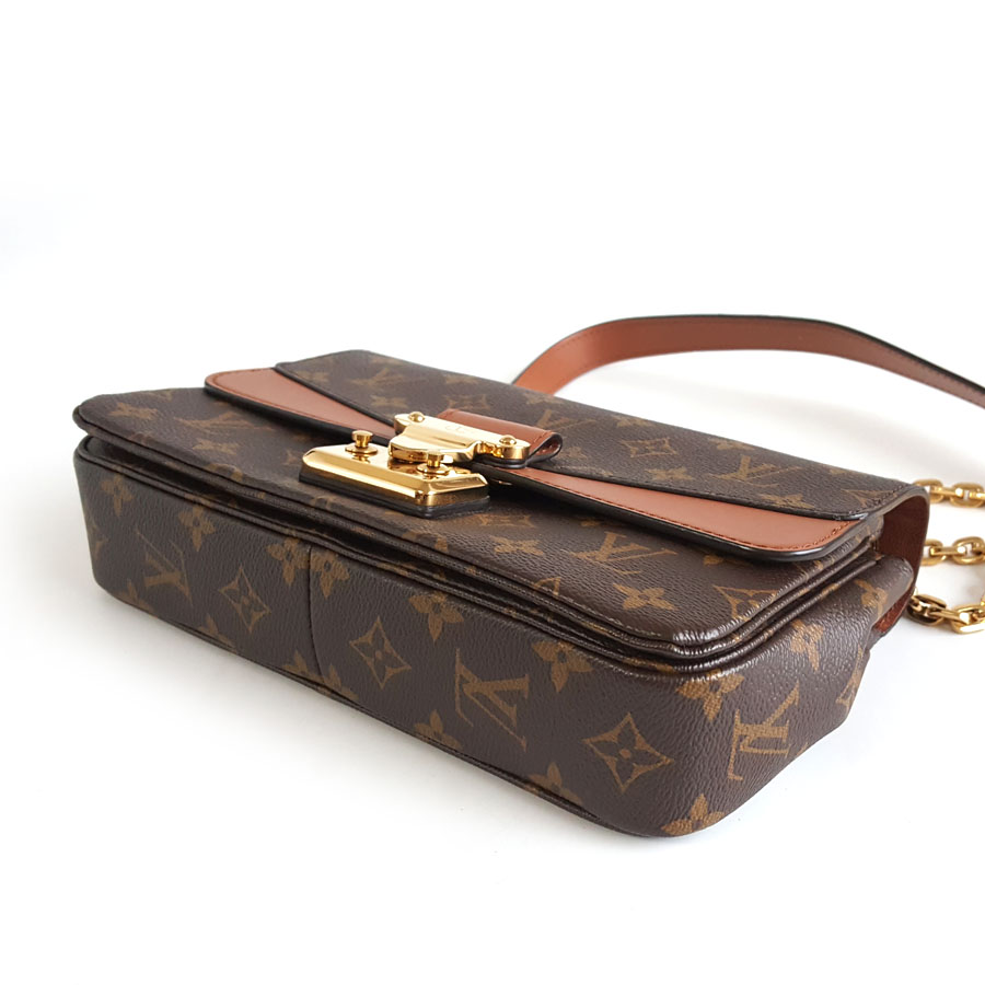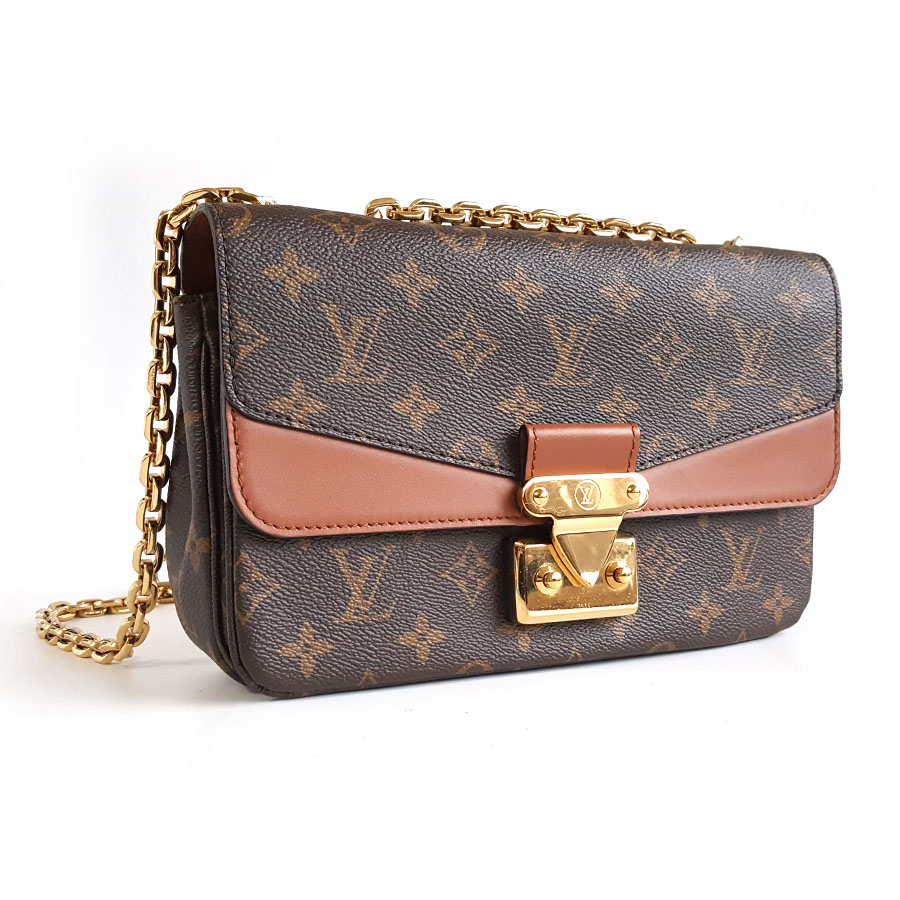 【95新】LV路易威登M46127老花拼焦糖棕色Marceau马尔索链条单肩包女士160326AK33