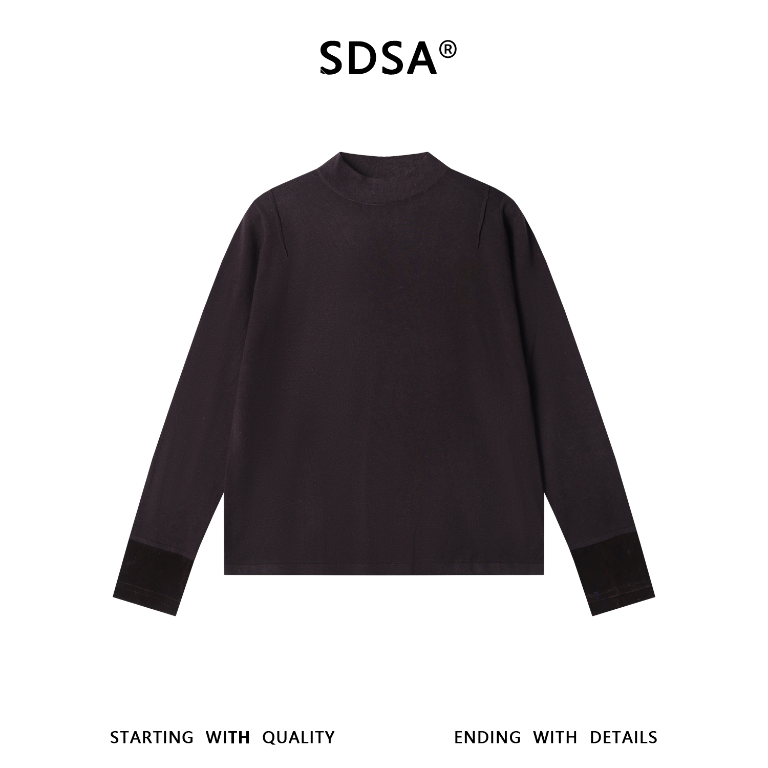 SDSA男装2026新款潮牌极简风长袖t恤男女同款撞色袖口宽松半高领
