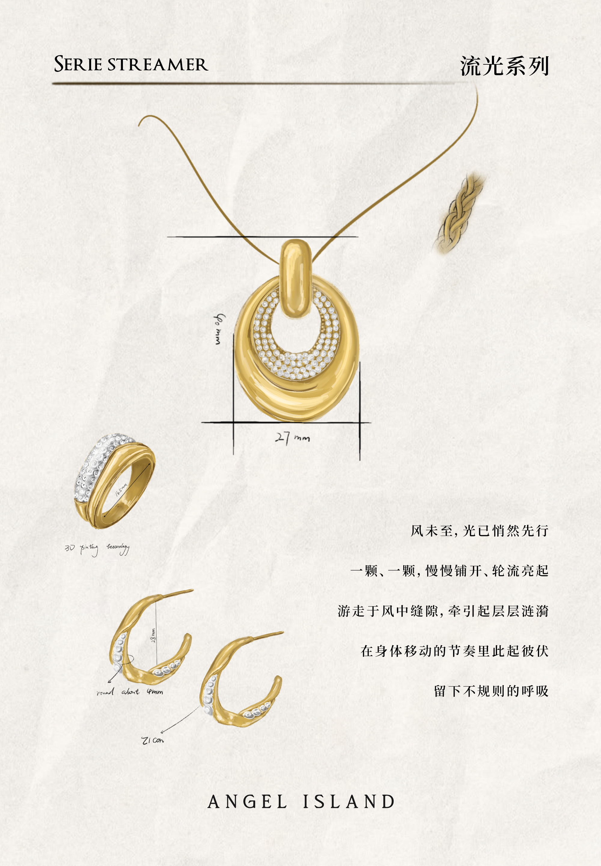 ANGEL ISLAND 「流光」锆石双色长款项链