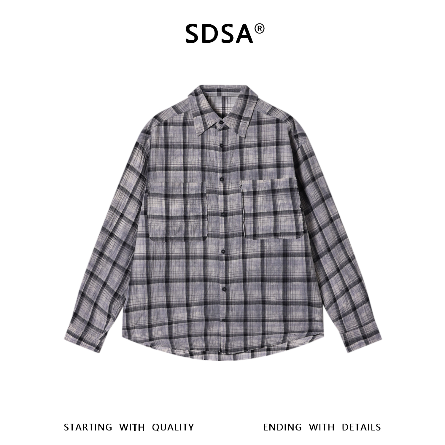SDSA男装2026新款高贵轻奢美式复古扎染格子长袖衬衫百搭时尚上衣