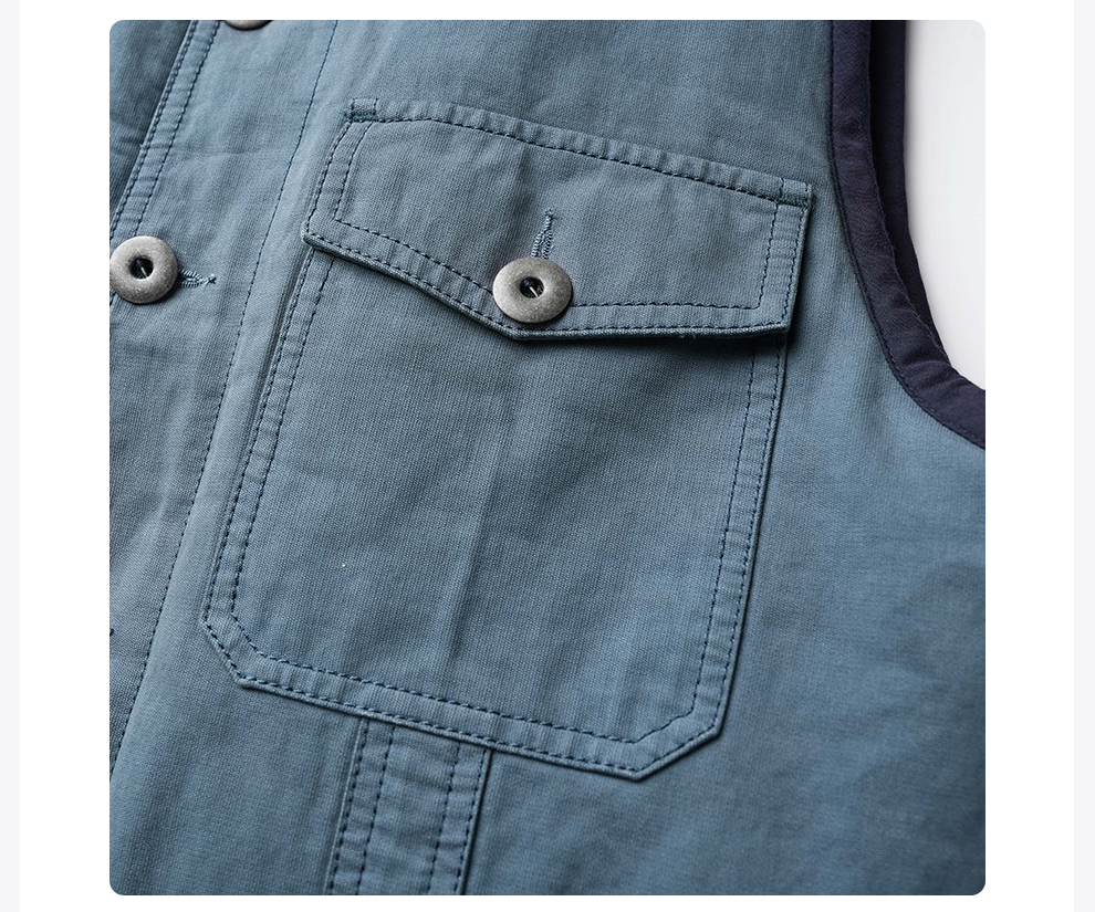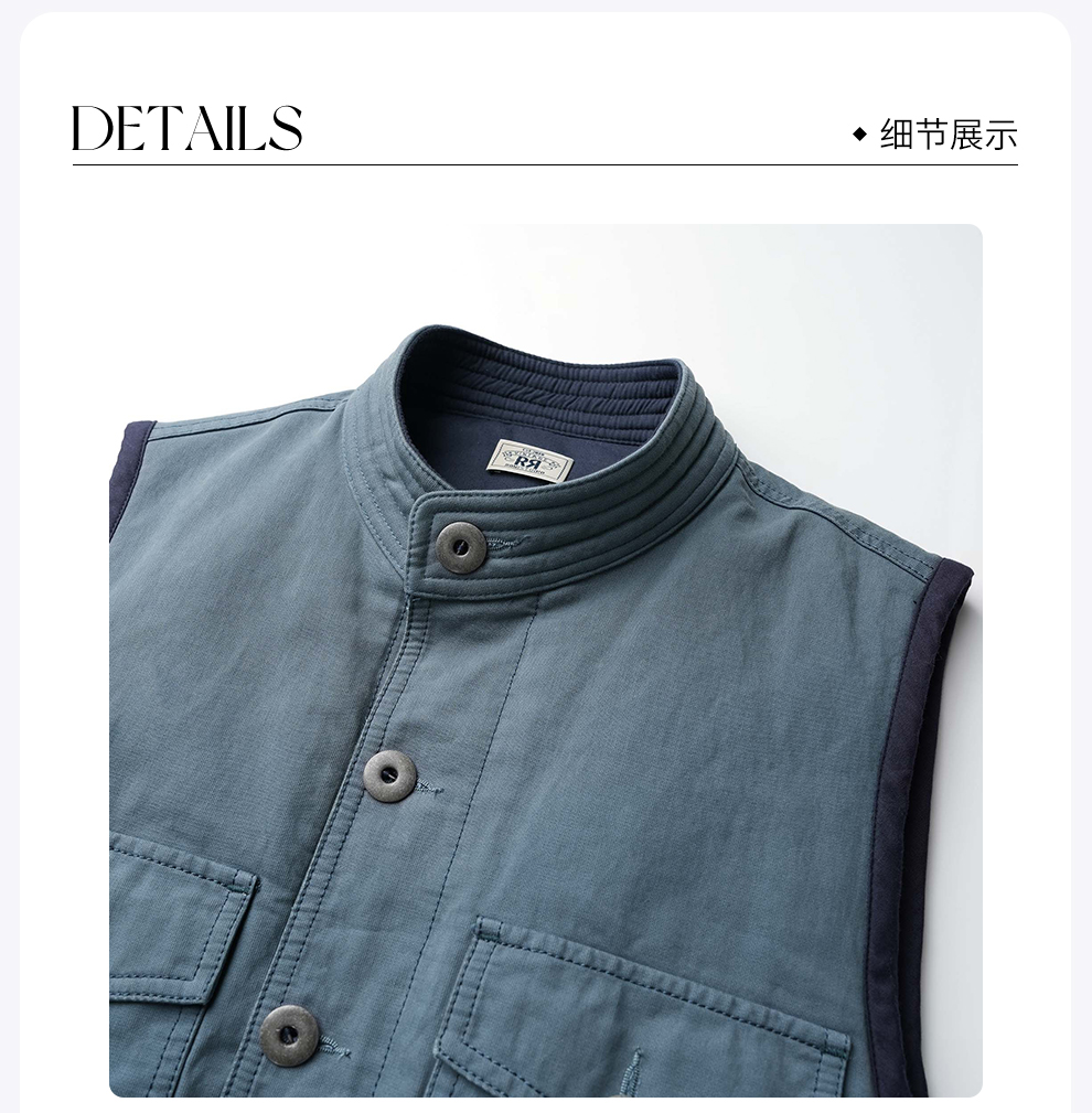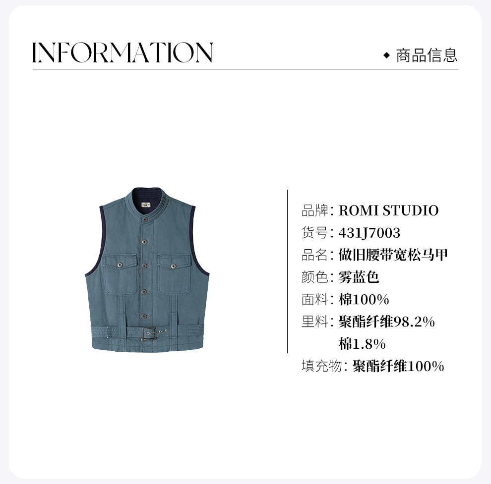 ROMI STUDIO“美式复古”100%棉砂洗洗水做旧腰带宽松马甲 431J7003