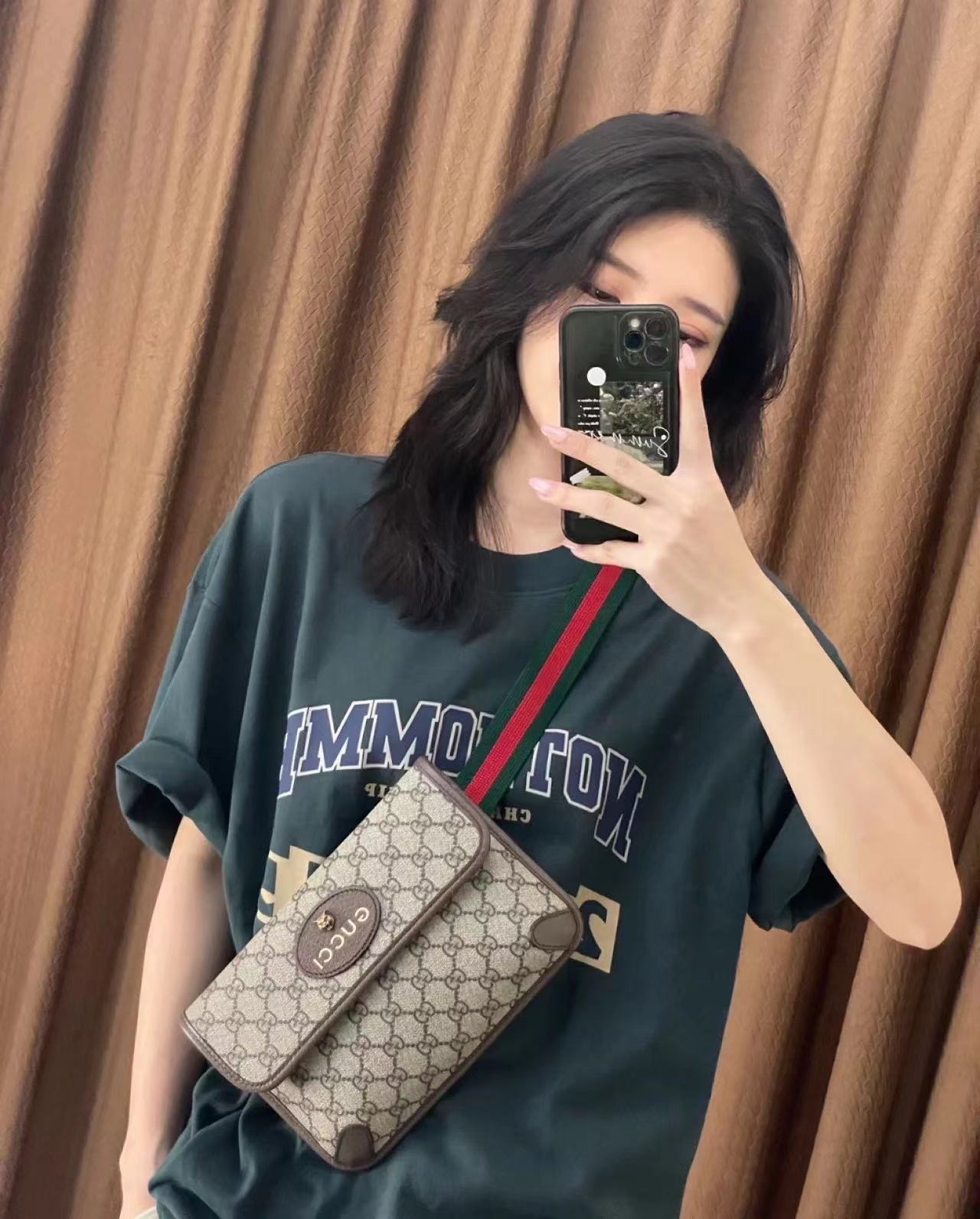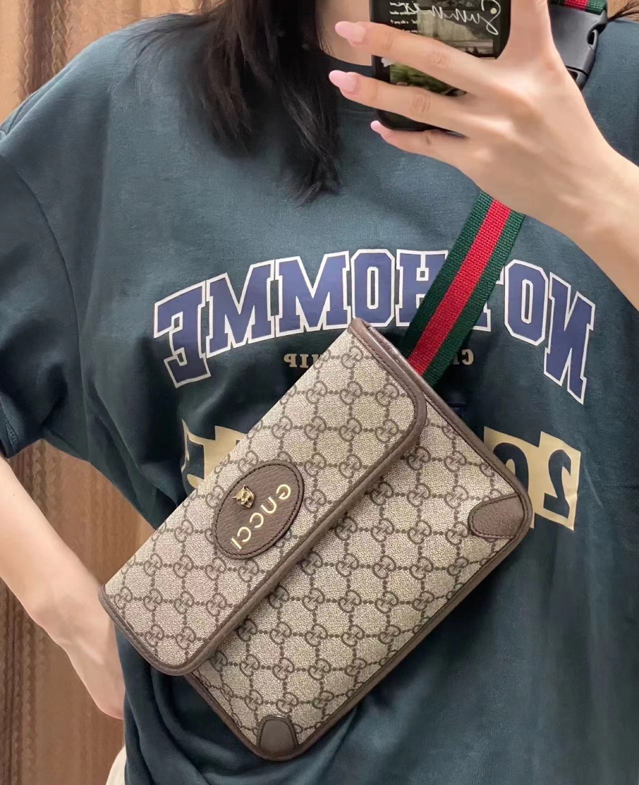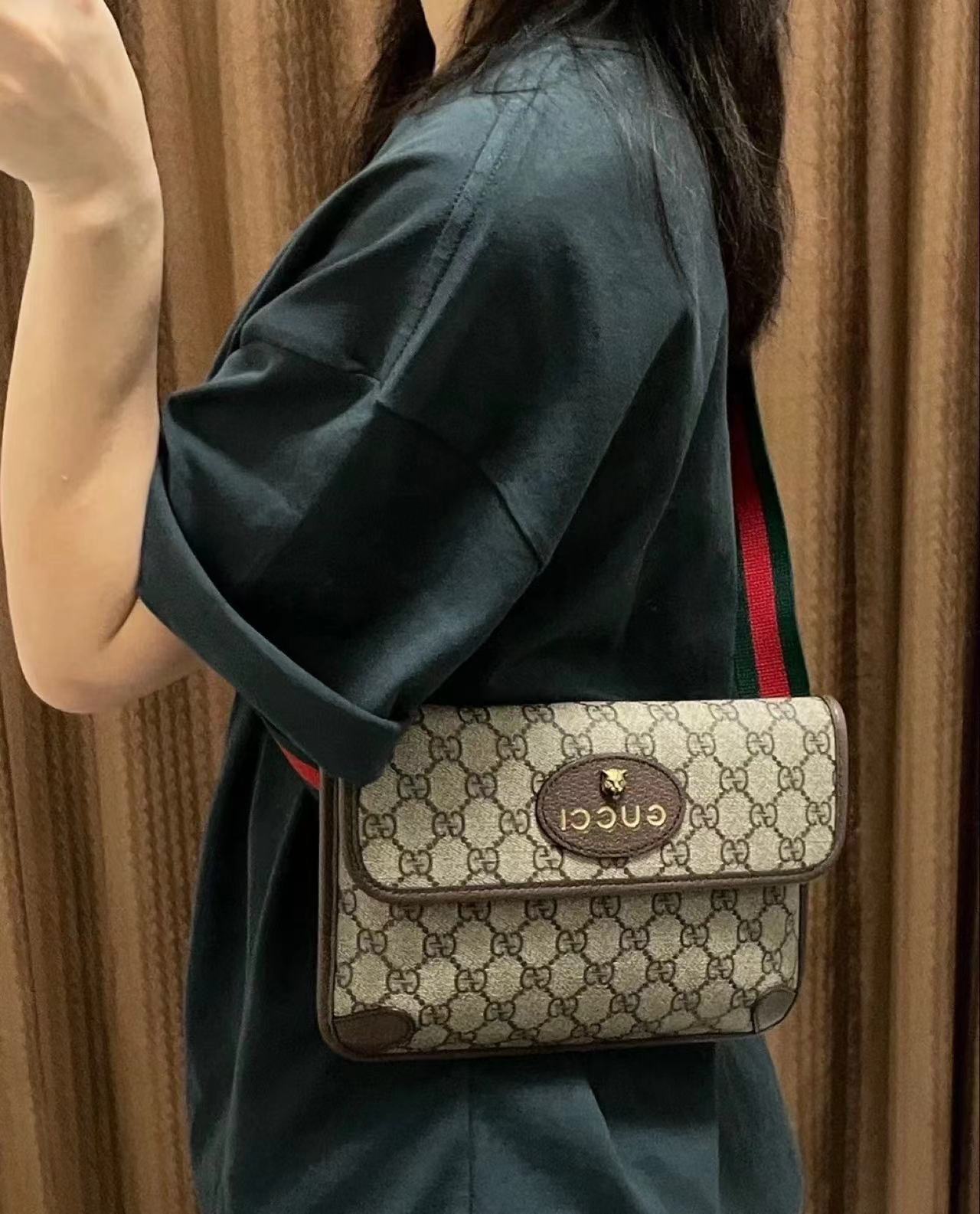 古驰-虎头胸包 经典的pvc料搭配棕色牛皮+复古风格GG邮差包(LZ)