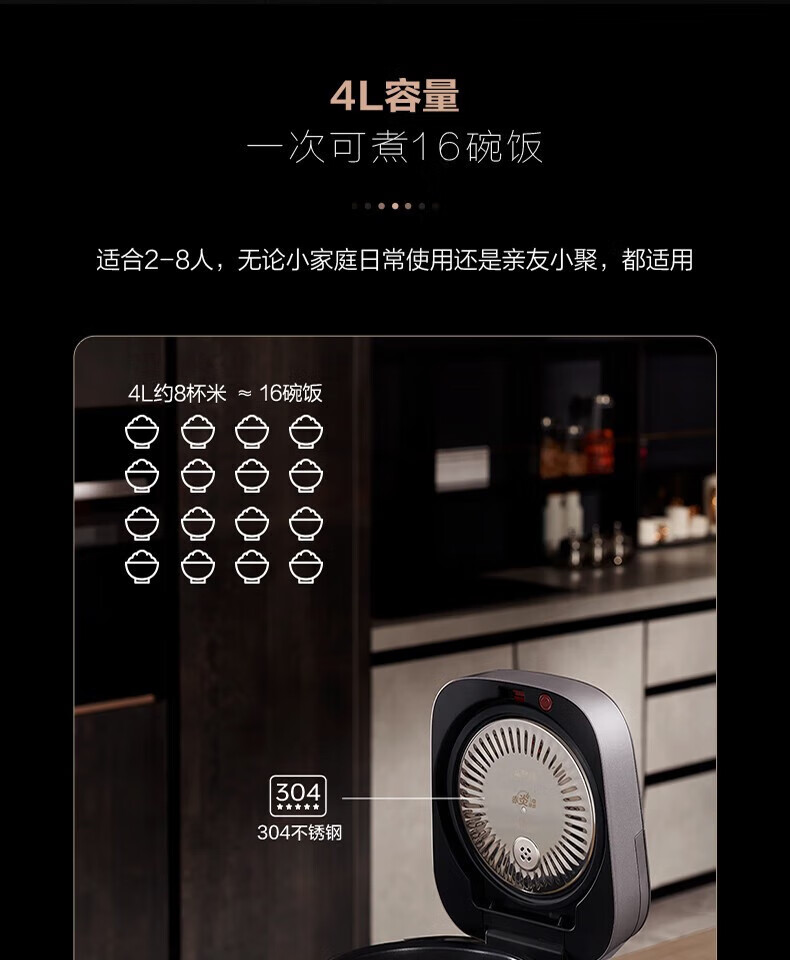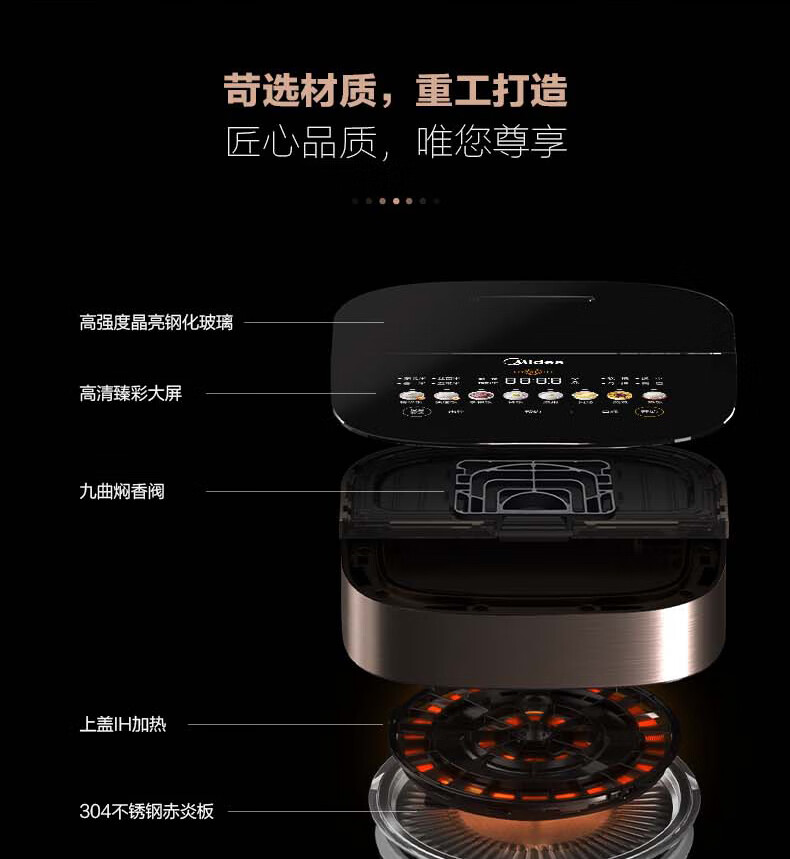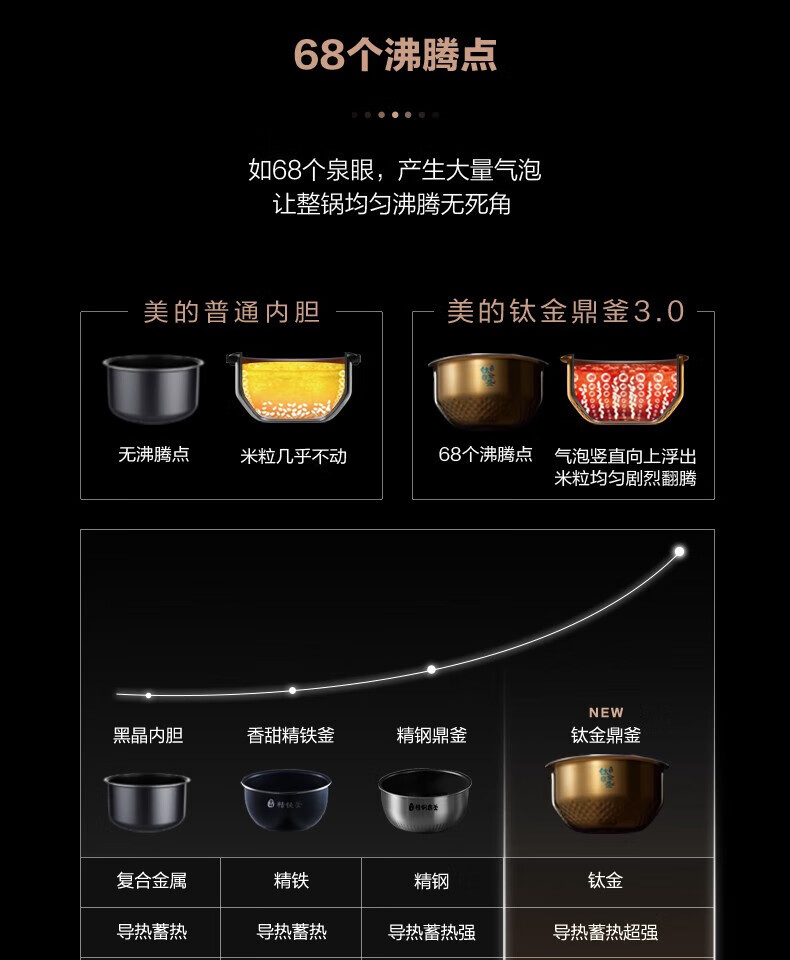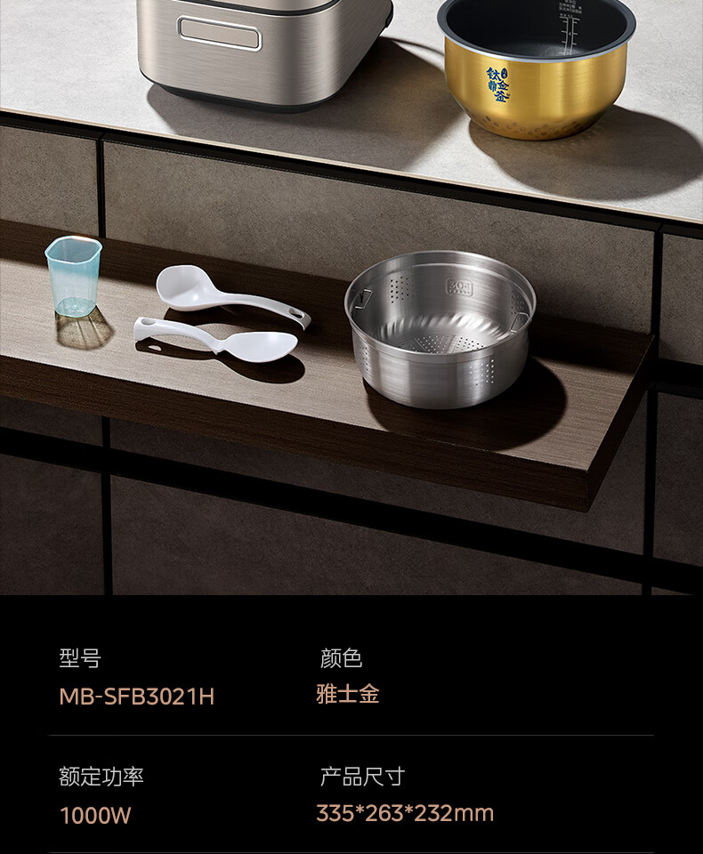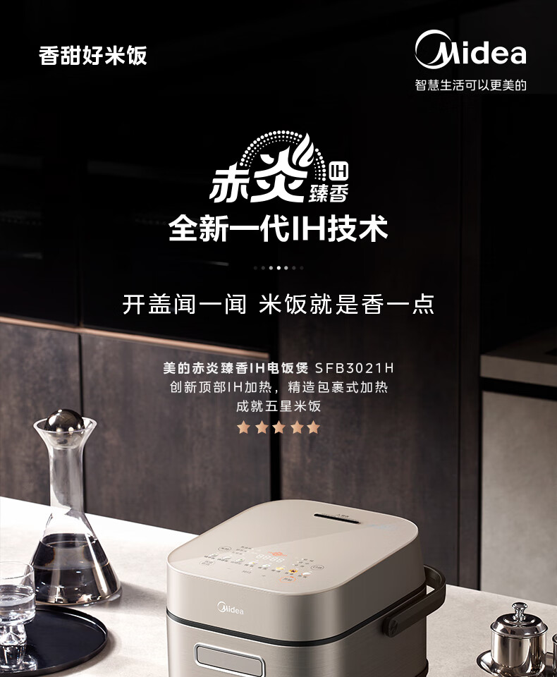 美的(Midea) 电饭煲 赤炎臻香 IH智能煮饭锅 多功能家用电到煲l钛金鼎釜电饭锅2人-6人 MB-SFB3021H(新·雅仕金·3L低糖煲)