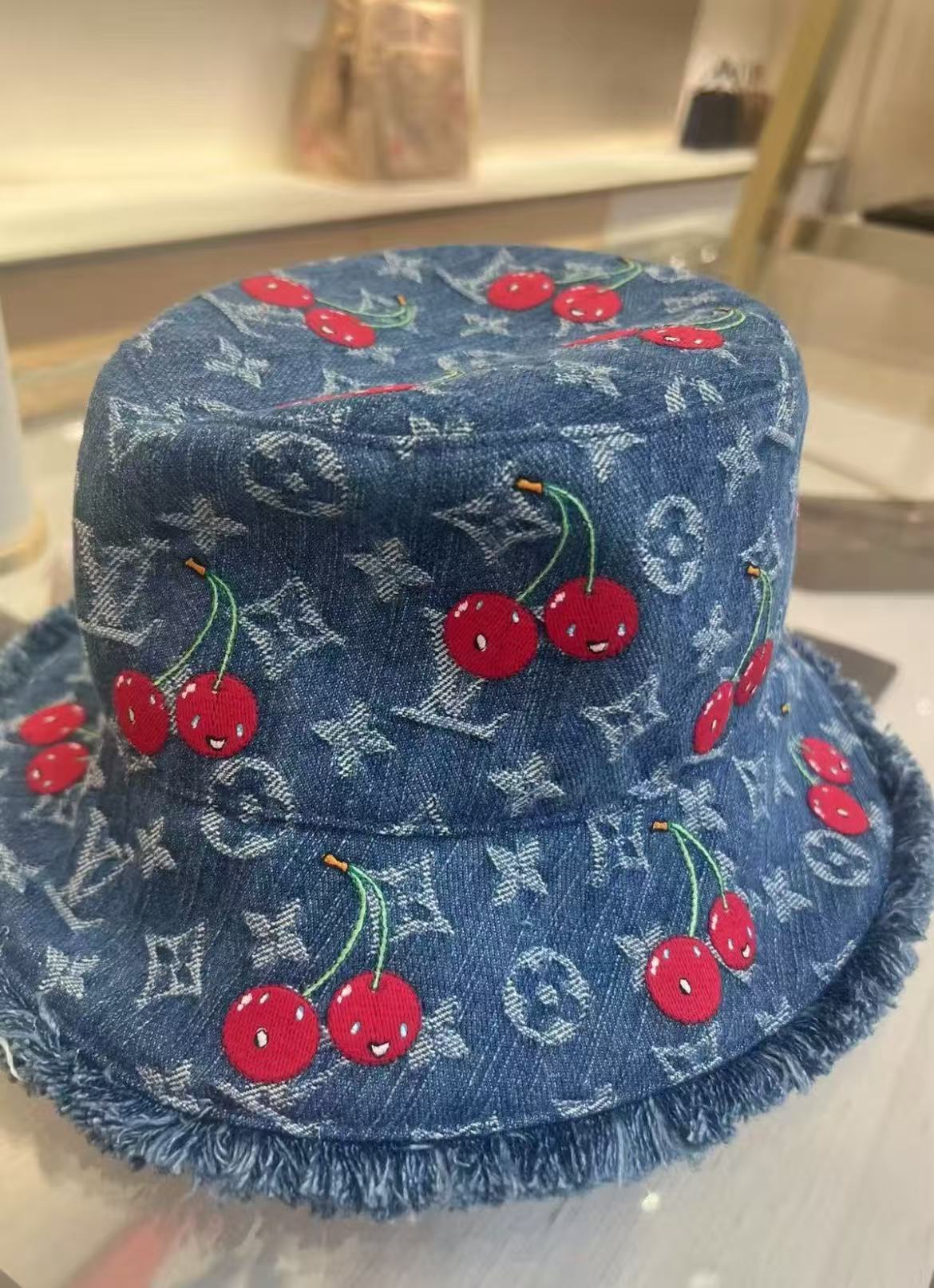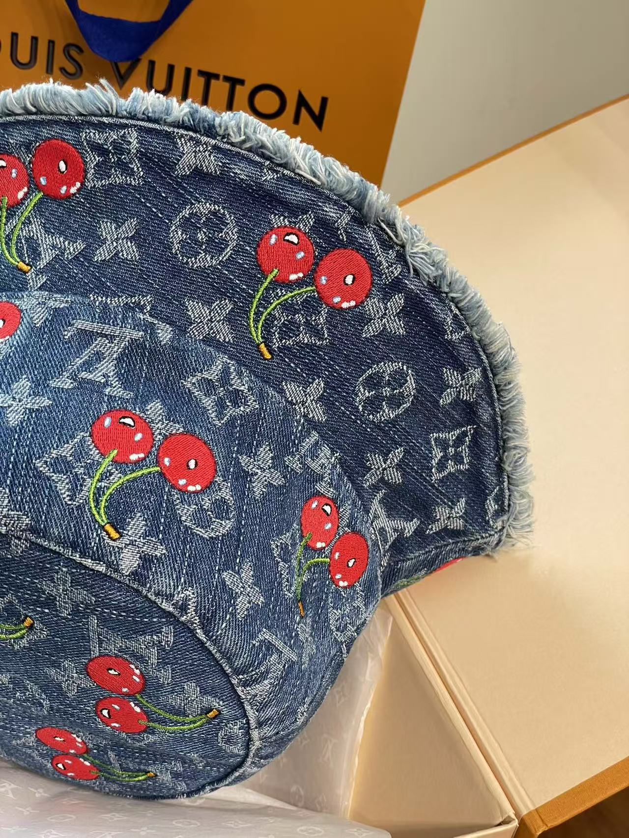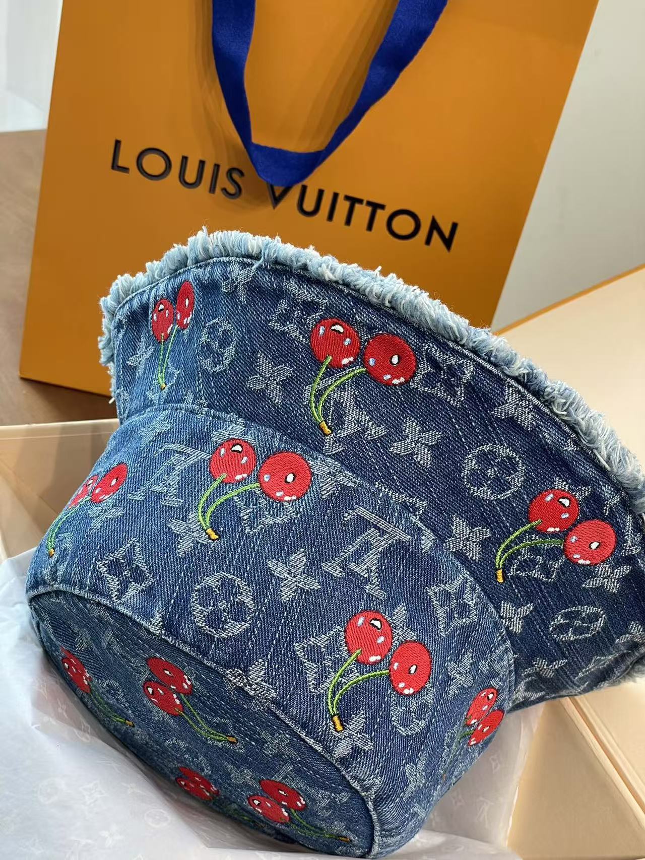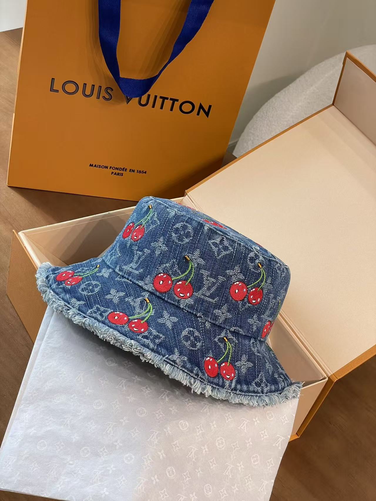 LV 这顶樱桃牛仔渔夫帽也太绝啦!经典老花牛仔面料,配上俏皮可爱的红樱桃刺绣图案, 每一枚🍒都颗粒饱满立体效果 ,灵动俏皮 ,细节之处尽显品牌匠心,毛边帽檐又增添了几分随性时髦感~摆在 LV 经典橙盒旁,氛围感直接拉满,戴上它出街,谁能不回头!时髦精必备单品,狠狠心动了💓