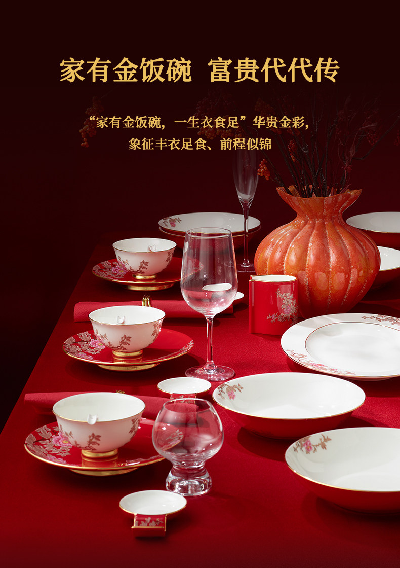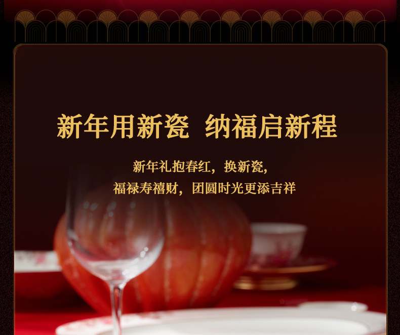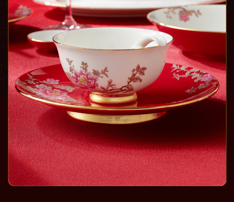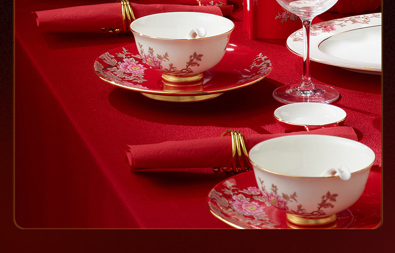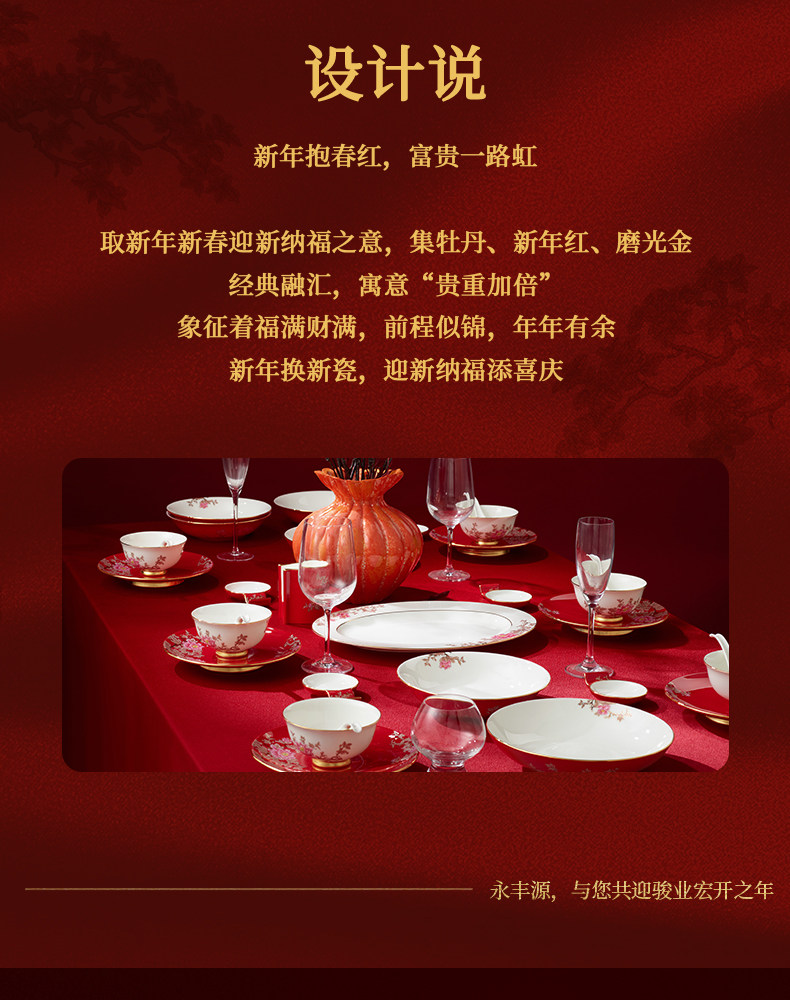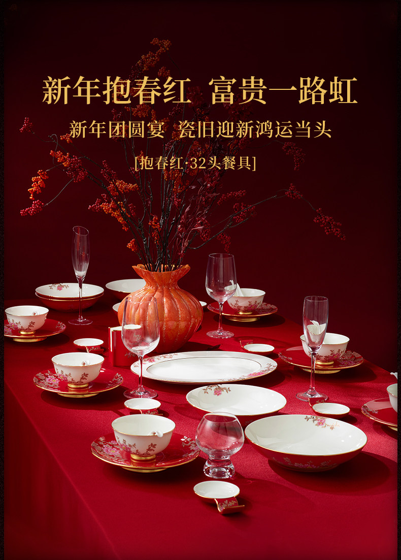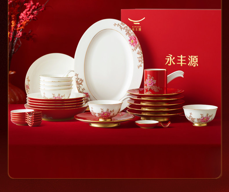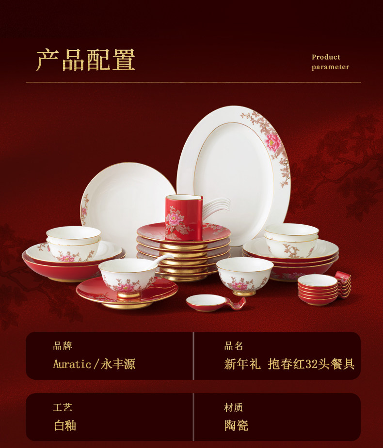【新年礼】永丰源抱春红32头餐具套装花开富贵结婚乔迁礼品 6人位 瓷器产品不支持七天无理由